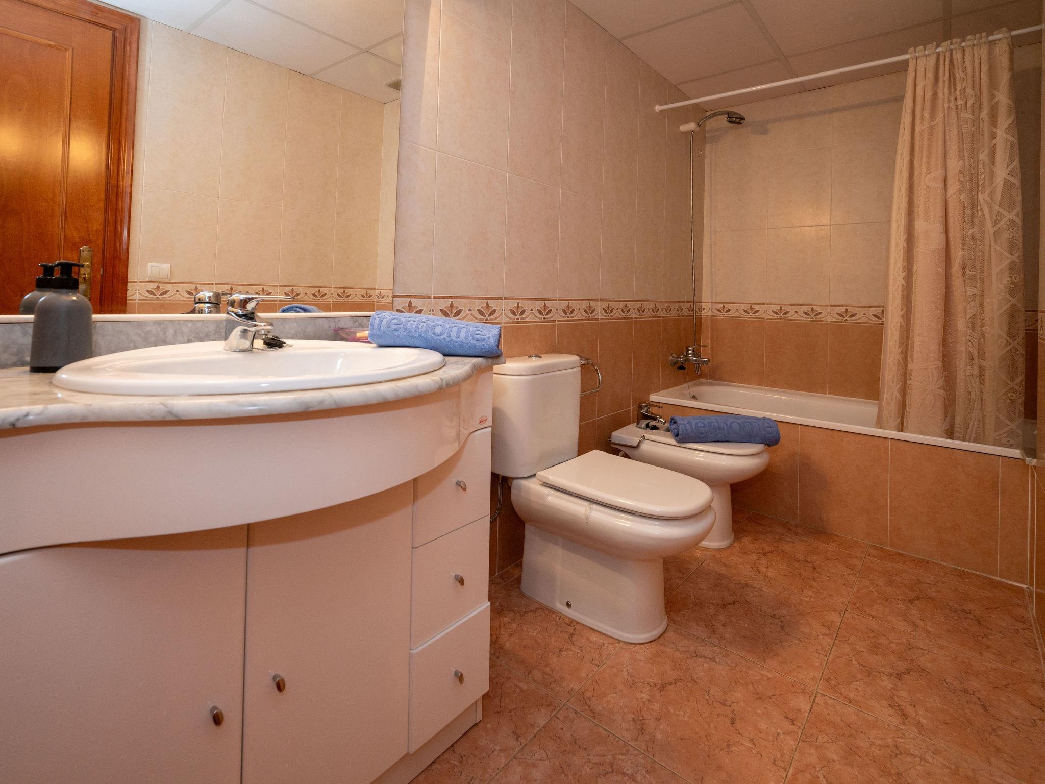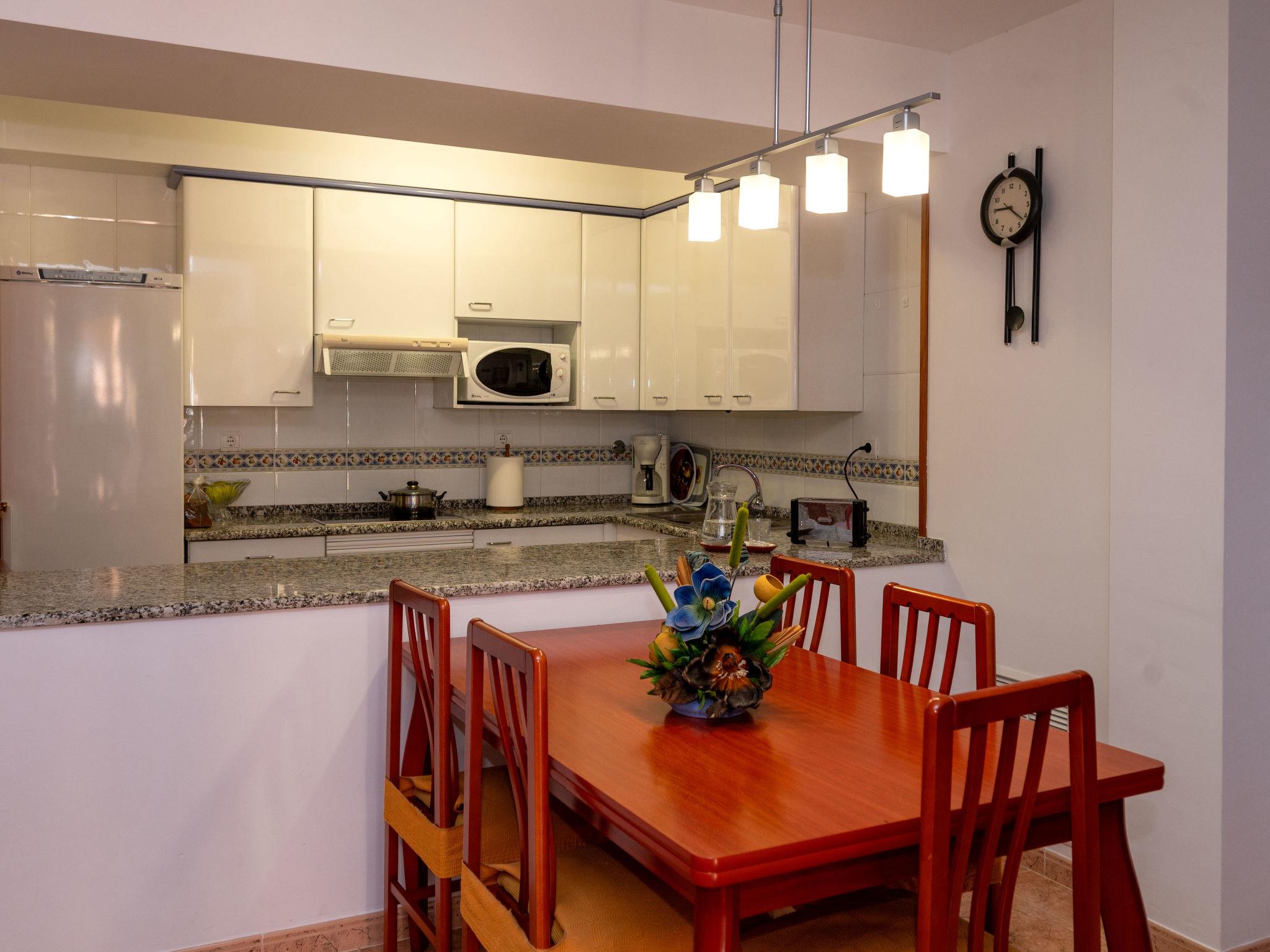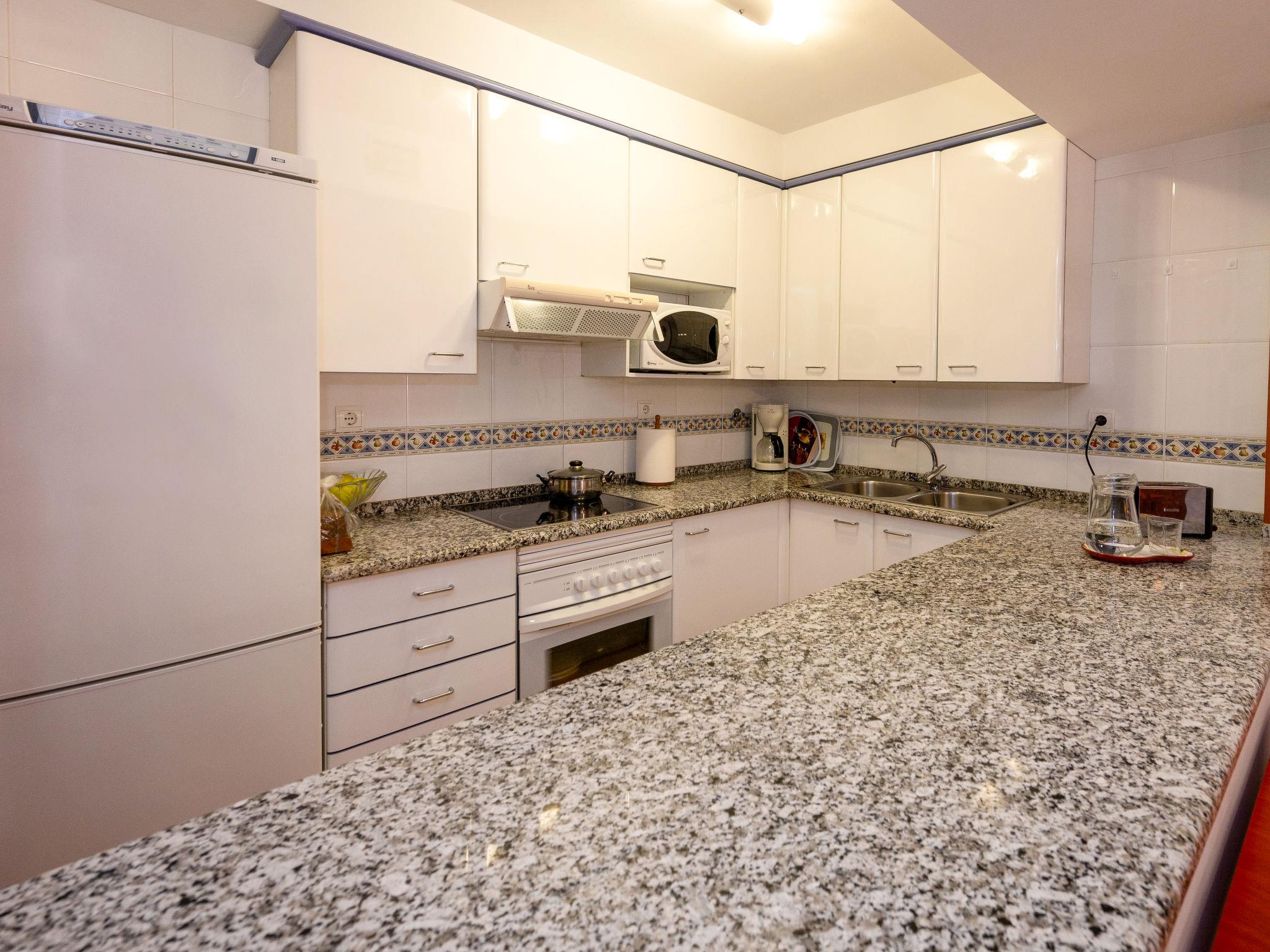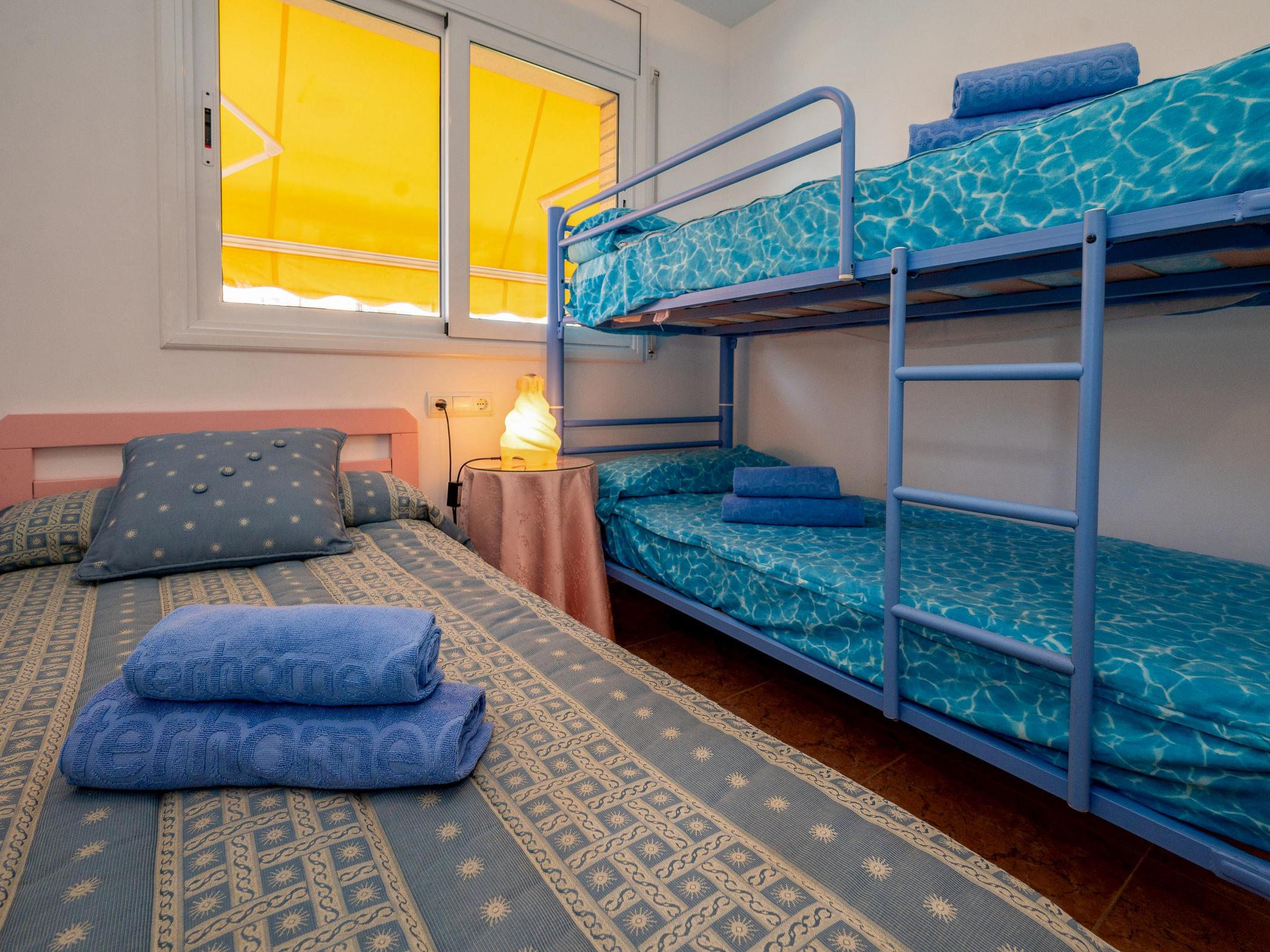 "Colom", 3-room apartment 51 m2. Object suitable for 2 adults + 2 children. Practical and comfortable furnishings: living/dining room with dining table, digital TV, electric heating and air conditioning. Exit to the balcony. 1 room with 1 french bed (135 cm, length 190 cm), electric heating and air conditioning. 1 room with 1 x 2 bunk beds (80 cm, length 190 cm), electric heating and air conditioning. Open kitchen (oven, dishwasher, 4 ceramic glass hob hotplates, toaster, kettle, microwave, electric coffee machine). Bath/bidet/WC. Balcony. Balcony furniture. View of the swimming pool and the garden. Facilities: washing machine, iron, hair dryer. Internet (WiFi, free). Garage (1 car). HUTB-073953-02 // Reg. Nr.: ESFCTU00000809800062536300000000000000HUTB-073953-026