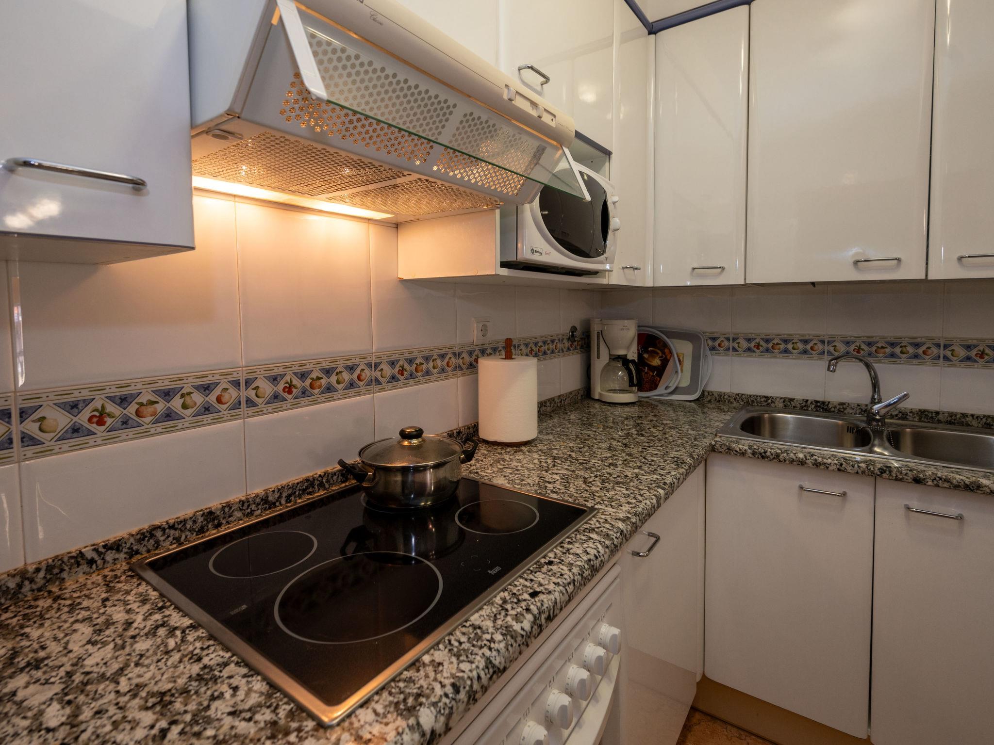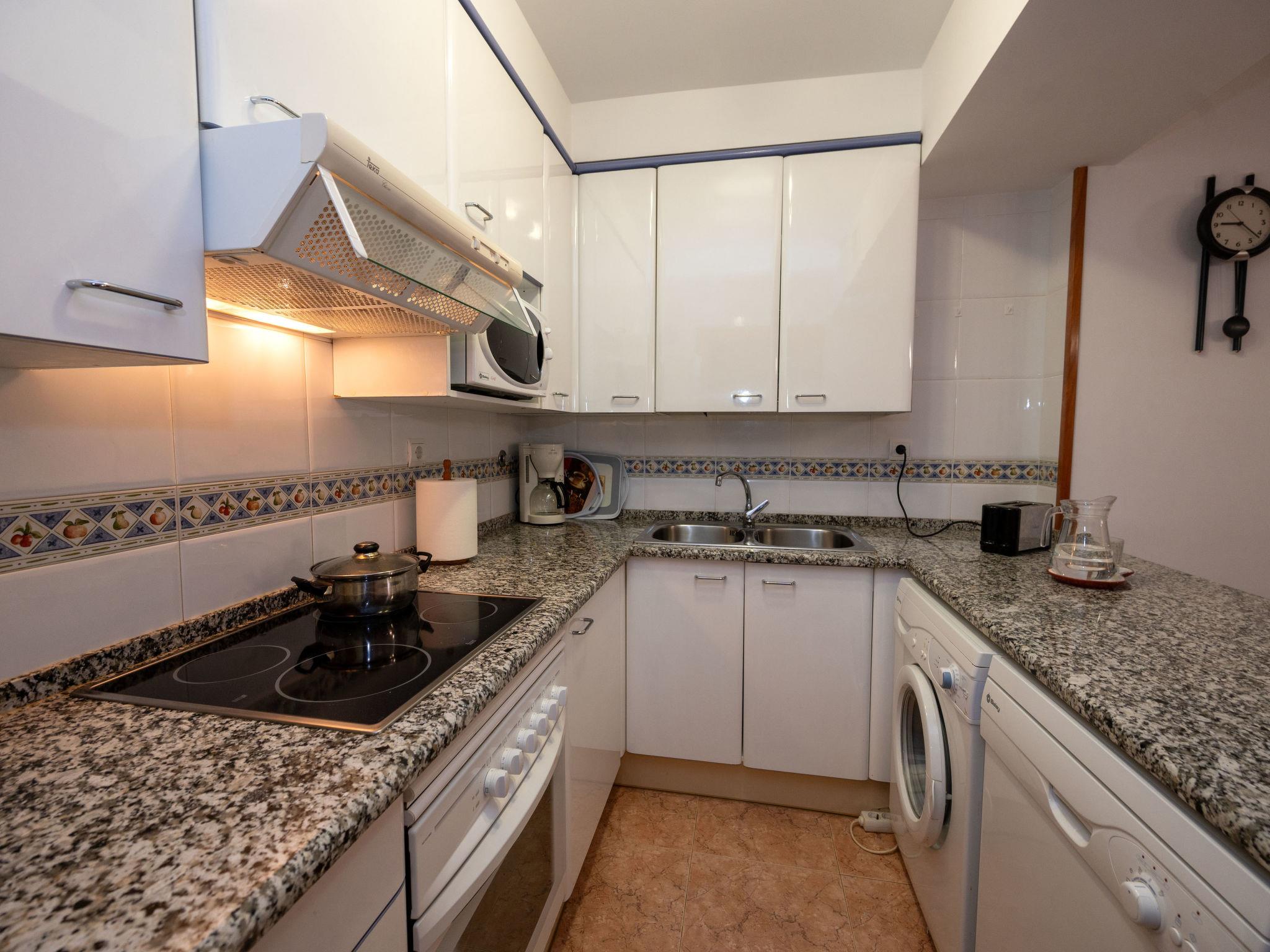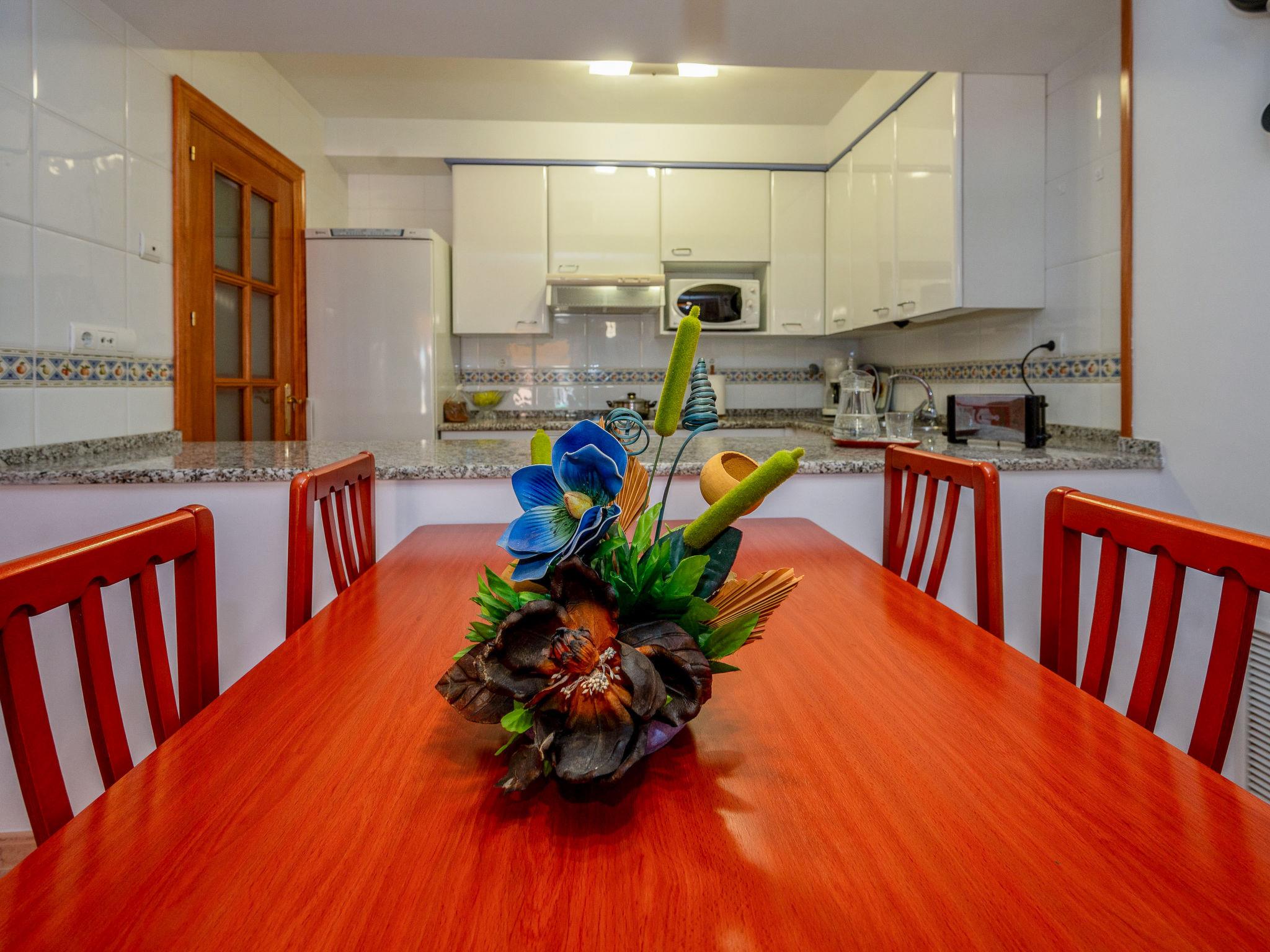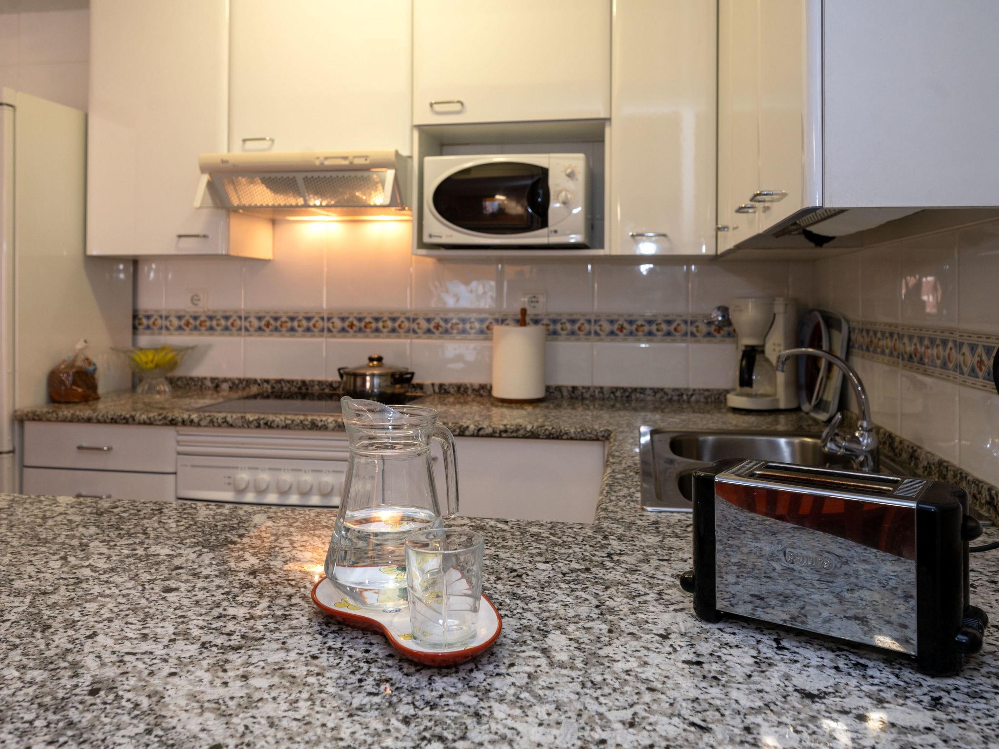 "Colom", 3-room apartment 51 m2. Object suitable for 2 adults + 2 children. Practical and comfortable furnishings: living/dining room with dining table, digital TV, electric heating and air conditioning. Exit to the balcony. 1 room with 1 french bed (135 cm, length 190 cm), electric heating and air conditioning. 1 room with 1 x 2 bunk beds (80 cm, length 190 cm), electric heating and air conditioning. Open kitchen (oven, dishwasher, 4 ceramic glass hob hotplates, toaster, kettle, microwave, electric coffee machine). Bath/bidet/WC. Balcony. Balcony furniture. View of the swimming pool and the garden. Facilities: washing machine, iron, hair dryer. Internet (WiFi, free). Garage (1 car). HUTB-073953-02 // Reg. Nr.: ESFCTU00000809800062536300000000000000HUTB-073953-026