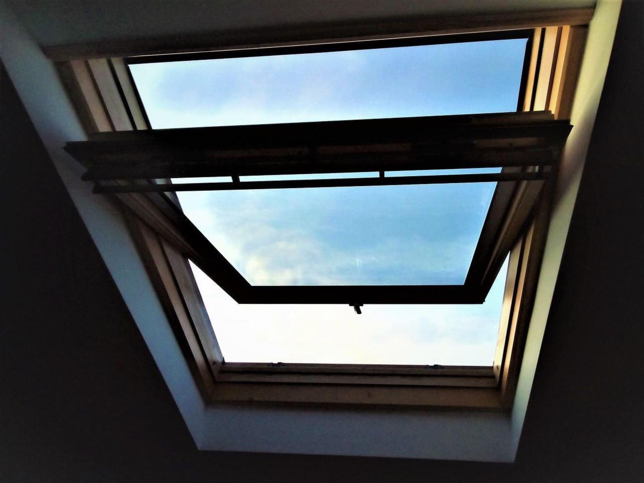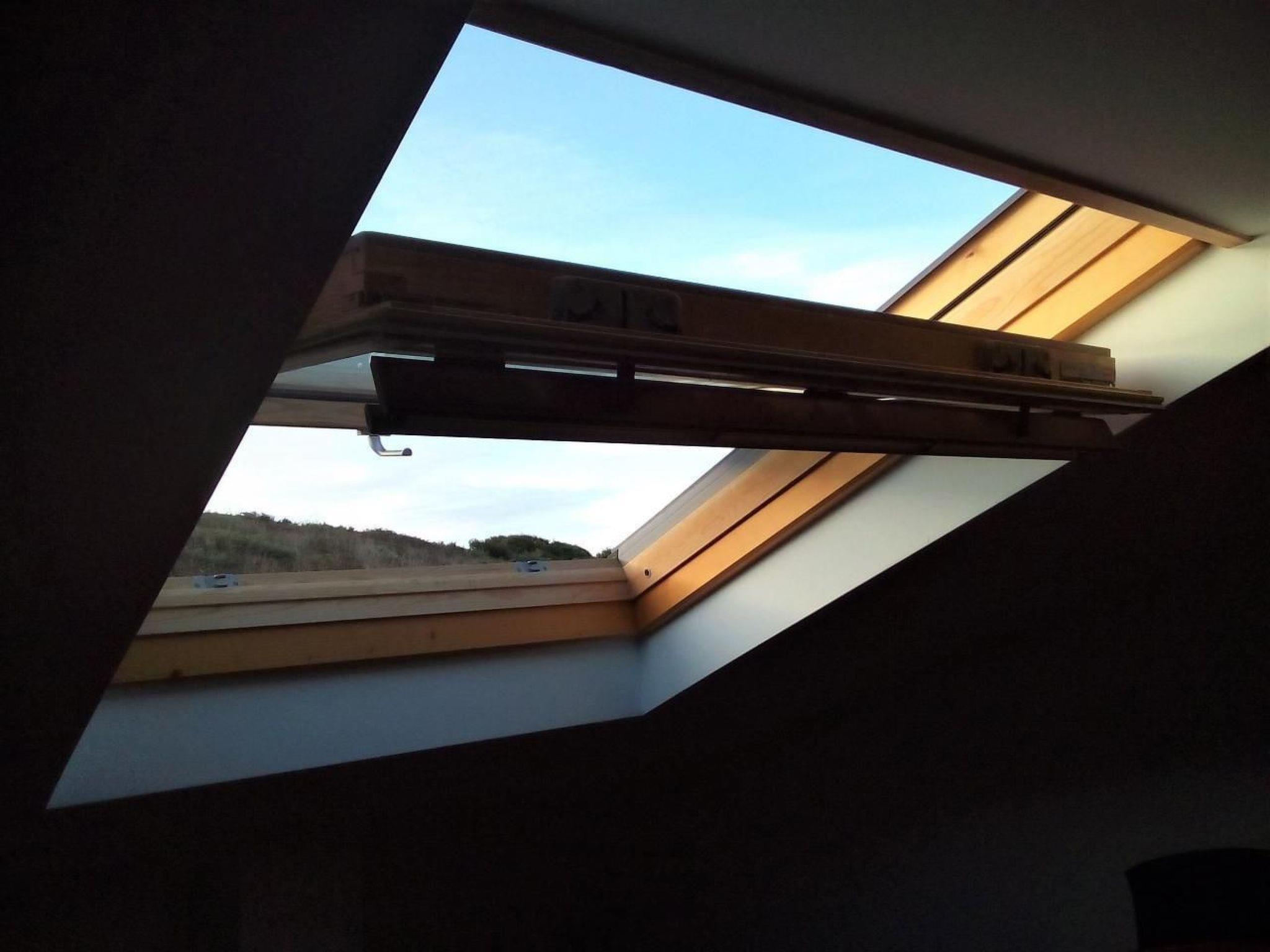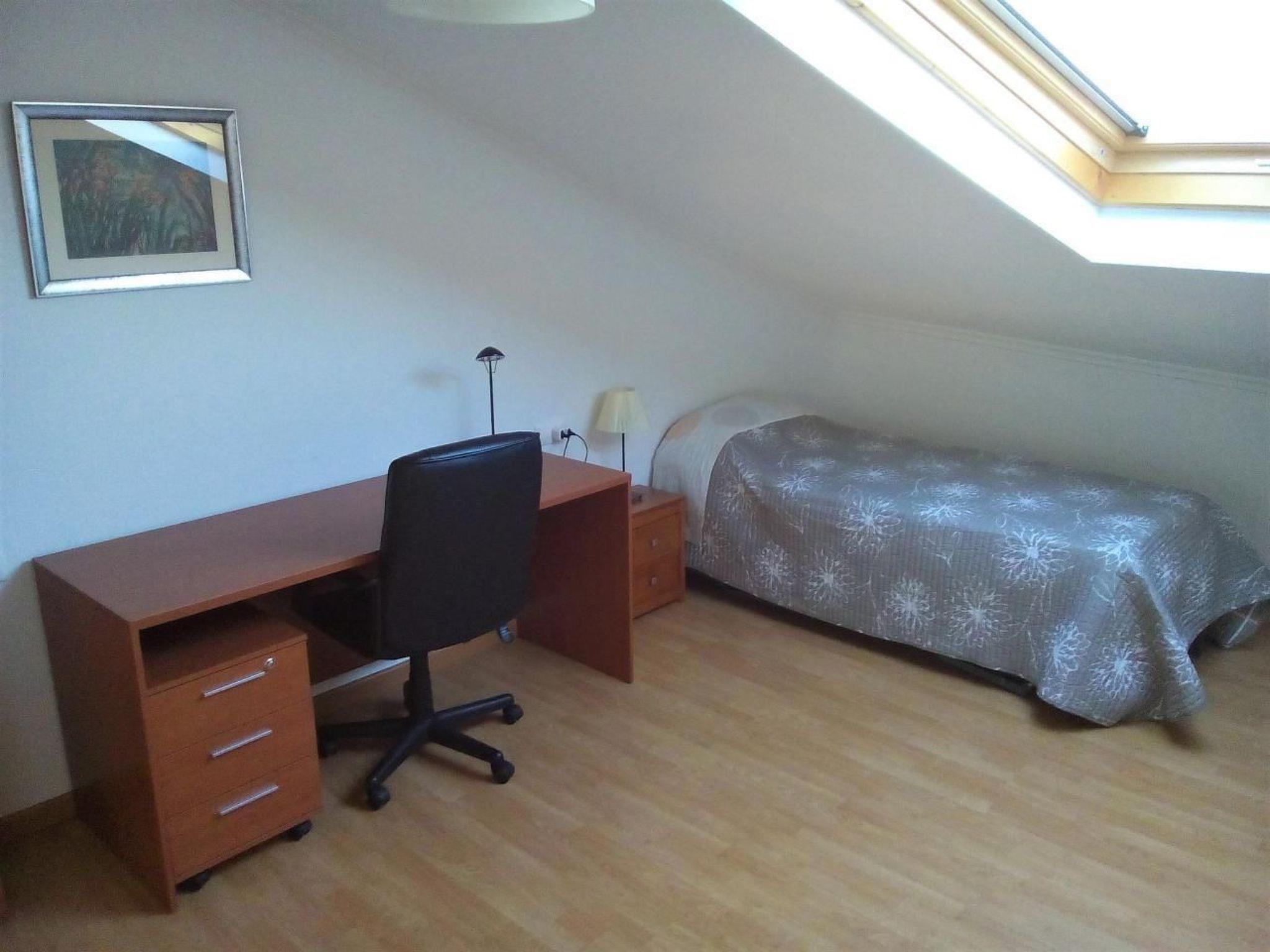 Holiday flat with one large bedroom (1 double bed) and one small bedroom (two single beds) with office table and shelf under the sloping roof with skylights. One wardrobe in each bedroom.