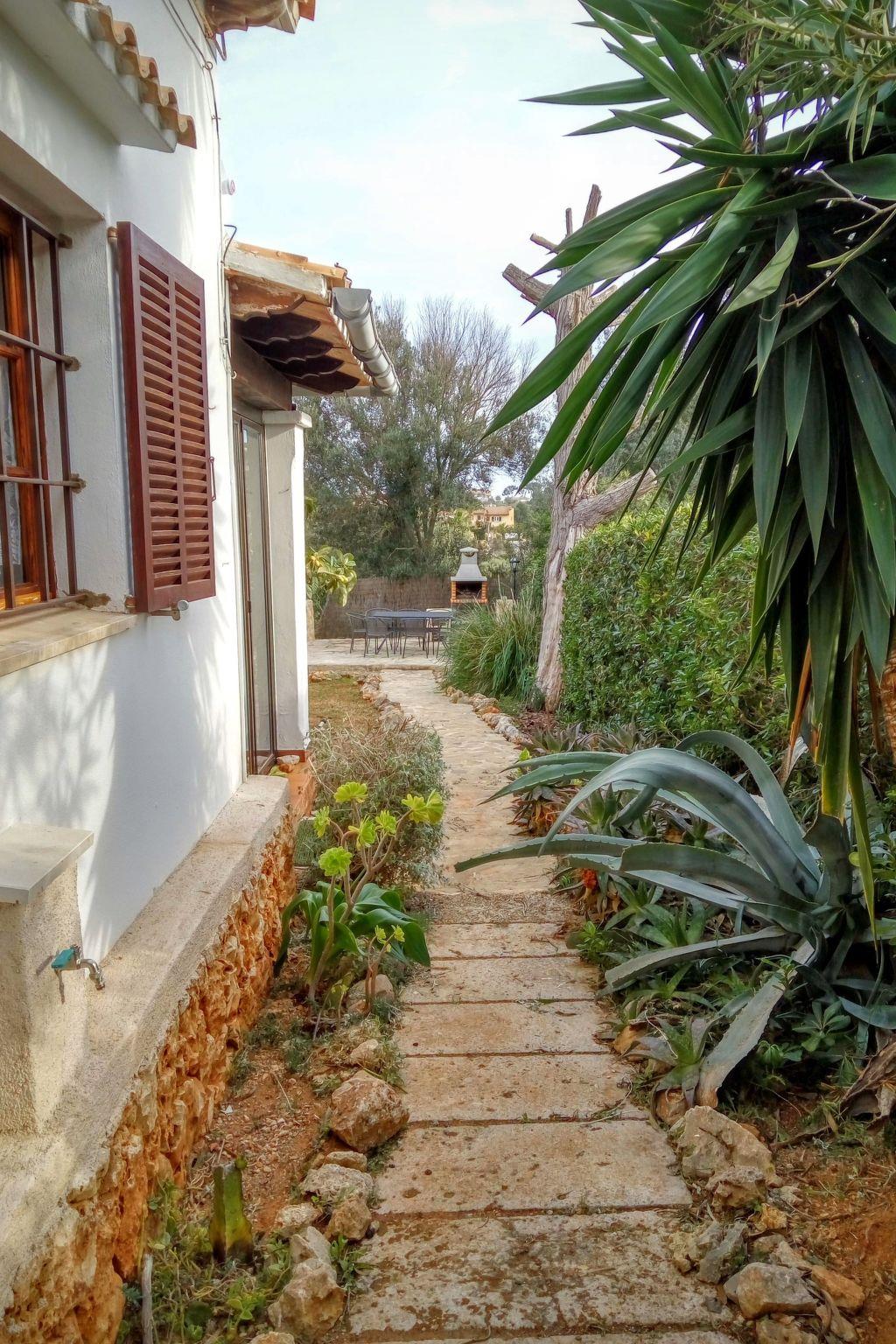Location: The holiday resort (urbanisation) Porto Cristo Novo is located on the east coast of Mallorca, 2.5 km south of the actual town of Porto Cristo. The holiday resort of Porto Cristo Novo was built in the 1970s on an extensive area along the coast, which is repeatedly interrupted by the small sandy bays of Cala Anguila, Cala Mendia and Cala Estany (Playa Romantica). There are many detached villas, some apartment buildings, two hotel complexes with large parks and pools as well as a medical centre, pharmacy, restaurants and grocery shops. Restaurants and grocery shops. Excursions are also catered for, as you can hire cars and bicycles in Porto Cristo Novo. From Porto Cristo Novo there is a bus to Porto Cristo from where you can explore the whole island by public transport and in Porto Cristo there are other shops, restaurants, bars, public facilities and boat trips along the east coast. House: The detached corner house with approx. 130 sqm of living space is located on a quiet street with no through traffic on a corner plot of approx. 620 sqm and is completely fenced in and partially covered with an evergreen hedge. This means that the covered terrace is largely protected from view. The holiday home Casa Cinderella is a simply furnished, reasonably priced, very quietly located and well-equipped holiday home with private charm for the whole family. The last renovation was in 2017 when new water pipes and boiler were installed. The bathrooms and kitchen were renovated in 1992 with the roof extension. The bathroom on the ground floor was completely renovated in 2023. Equipment: The holiday home has two bedrooms on the ground floor and one on the upper floor, each with double beds (approx. 140-160 x 190 cm). 2 bathrooms with WC, bidet, washbasin and bathtub. Our house also has a guest WC with washbasin. The washing machine is located in a separate room. The kitchen of your holiday home is fully equipped with microwave, gas hob, electric oven and dining area. The living/dining room of the house has a cosy sofa set and a dining area for 6 people as well as SAT/HD TV. The living room also has a fireplace. Further equipment includes a VHS video recorder and a stereo system. Bed linen/towels For the duration of the booking per person. 1 set of bed linen (already put on) 1 towel 1 shower towel. If you need more, please order and pay when handing over the keys Beach: The beach Calla Anguila with its fine, almost white sandy beach and the turquoise blue sea is only about 10 minutes walk away. This beach is very suitable for families with children (toddlers). The beach is constantly supervised by a lifeguard from 10:00 to 18:00. There is a restaurant, WC and shower on the beach. You can also drive right up to the beach by car. In summer, however, car parking is very limited. However, it is possible to drive right up to the beach steps, as there are plenty of parking spaces along the residential road.