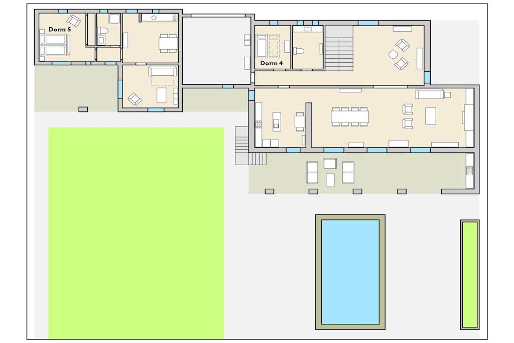 Stueetage: (Køkken(, , kakkelovn, elkedel, brødrister, kaffemaskine, ovn, mikrobølgeovn, opvaskemaskine , køleskab, fryser, varme, Foodprocessor), stue / spisestue(, Fjernsyn, spisebord, pejs, stereoanlæg, varme), soveværelse(, , enkeltseng, varme), soveværelse(, , dobbeltseng), badeværelse(, toilet, bruser, håndvask), guest toilet(, toilet, håndvask, varme)) På 1. etage: (gang(, , toilet, bruser, håndvask, varme, føntørrer), gang(, toilet, bruser, håndvask, varme), soveværelse(, , dobbeltseng, dobbeltseng, Fjernsyn, varme, klimaanlæg), soveværelse(, , dobbeltseng, varme, klimaanlæg), soveværelse(, , dobbeltseng, varme, klimaanlæg), badeværelse(, toilet, bruser, håndvask, varme)) , , , veranda(havemøbler), Internetadgang, Internetadgang, Førstehjælp, tørretumbler, vaskemaskine, varme, terrasse(havemøbler), have(Grill center, havemøbler, solstole, swimmingpool), parkering, strygebræt, strygejern, tørreskab