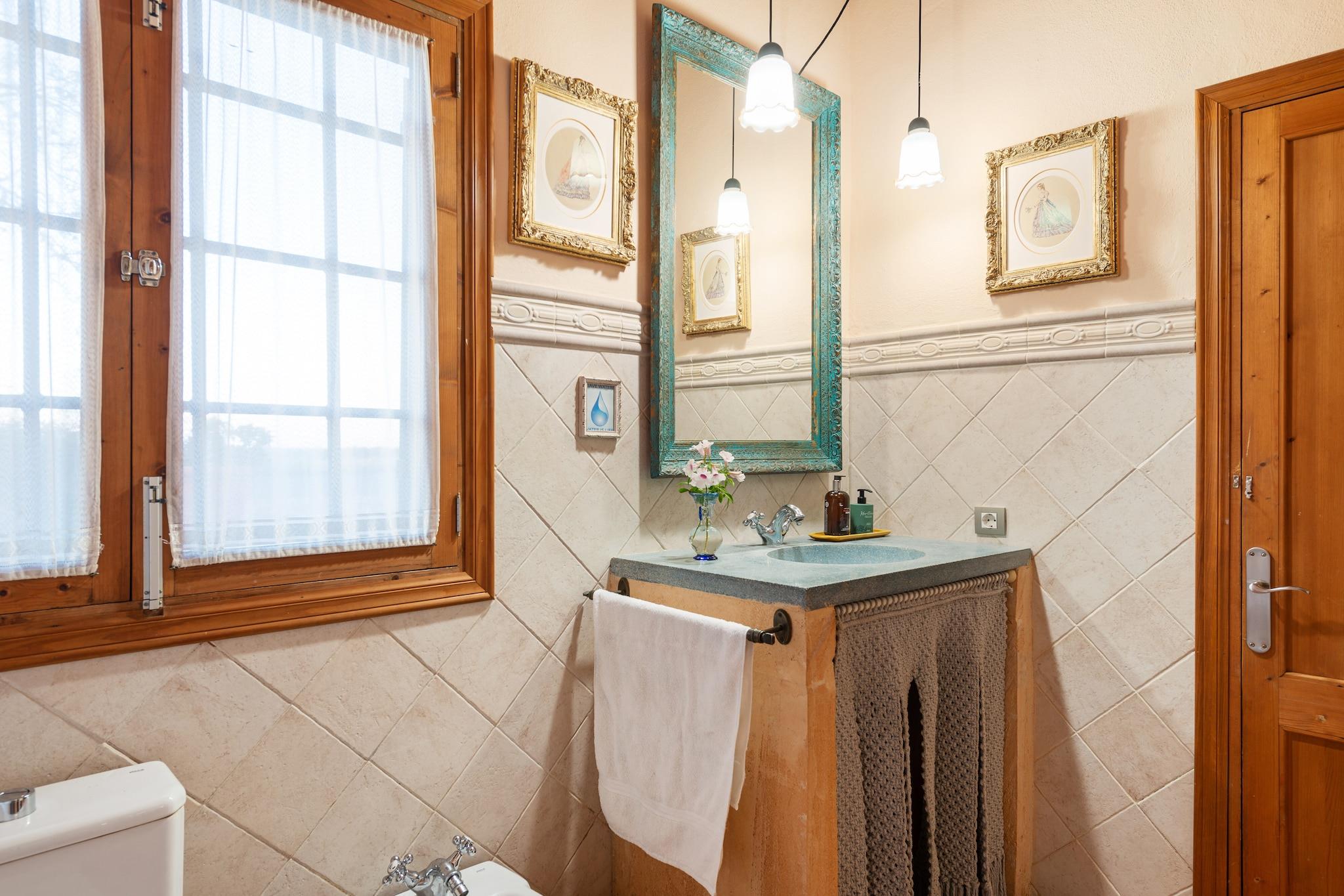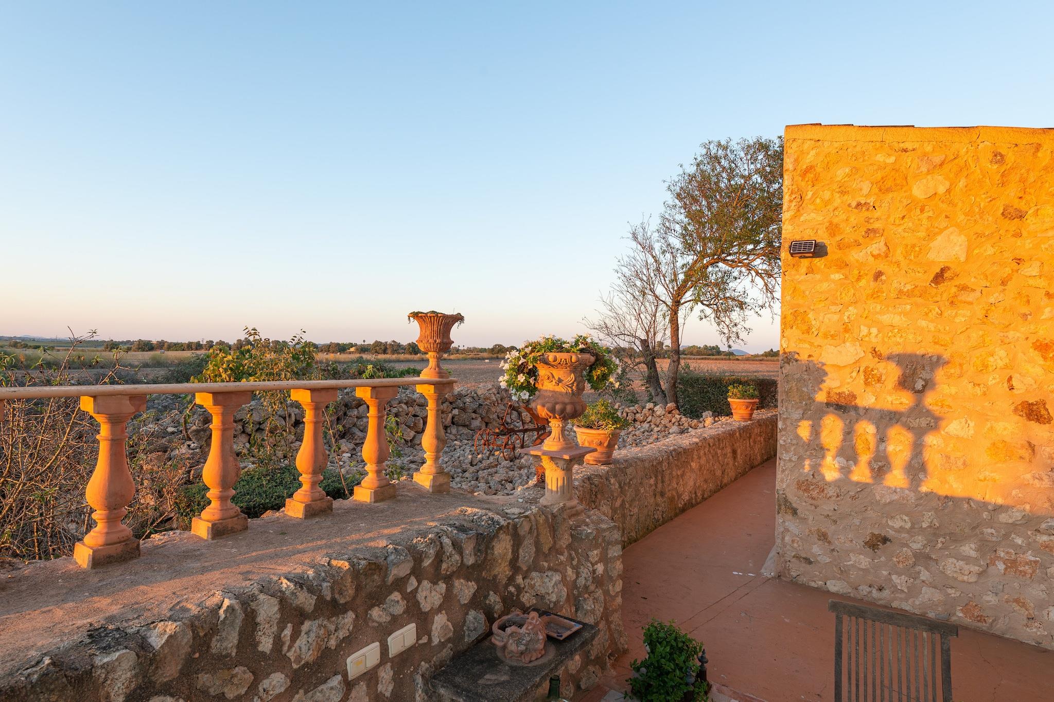 De buitenkant is fantastisch. Ze hebben een prachtig zoutbad met een afmeting van 5,5 x 3 m en een diepte variërend van 1,15 m tot 1,7 m. Rondom het zwembad is er een douche en een verhard gedeelte waar u kunt ontspannen en zonnebaden op een van de 6 ligstoelen. Rondom het huis is er een grindoppervlak met een pergola voor uw ontspannende momenten. En net rechts van de hoofdingang van het huis bevindt zich een gemeubileerd terras waar u met familie en vrienden kunt genieten van heerlijke buitenbarbecues. Het pand ligt op een afgelegen locatie, omgeven door 14.000 vierkante meter grond. Er zijn er 7.000 aangelegd waar u veel mediterrane planten zult vinden, zoals geurige rozemarijn, olijfbomen, cipressen, palmbomen, schaduwrijke dennen en de citroen- en sinaasappelboomgaard mag niet ontbreken. Vanaf de accommodatie kunt u het omliggende Mallorcaanse platteland bewonderen, met een prachtig uitzicht op het Tramuntana-gebergte, Puig de Cura, Mont Ferrutx en Puig de Sant Salvador aan de horizon. Geweldige zonsopgangen en prachtige zonsondergangen zijn gegarandeerd. Het interieur van het huis is ingericht met meubilair uit de 18e en vroege 19e eeuw en herbergt een grote kunstcollectie. Bij binnenkomst in dit huis met twee verdiepingen vindt u een elegante eetkamer die leidt naar de woonkamer, met een houtkachel, satelliettelevisie en cd-speler. Gescheiden door een boog vindt u de keuken, ingericht met alles wat nodig is om elk recept uit te voeren, inclusief een gasfornuis. Er is een aparte wasruimte met wasmachine, strijkijzer en strijkplank. Om uit te rusten zijn er in totaal drie slaapkamers. Twee ervan bevinden zich in het hoofdgebouw, voorzien van een kast en ventilator, waarvan één zich op de begane grond en de tweede op de bovenverdieping bevindt. Beneden hebben ze er één met twee tegen elkaar geschoven eenpersoonsbedden en een en-suite badkamer met apart bad en douche, en de bovenverdieping met twee aparte eenpersoonsbedden. De derde slaapkamer bevindt zich in een mooi bijgebouw en biedt twee tegen elkaar geschoven eenpersoonsbedden, een en-suite badkamer met douche en directe toegang tot de tuin. Er is beschikbaarheid voor een kinderbedje en een kinderstoel, evenals een vierde ventilator indien nodig. Als u zich inzet voor het milieu, zult u graag willen weten dat er sinds het herstel rekening is gehouden met de efficiëntie en het gebruik van natuurlijke hulpbronnen. Het gehele energiesysteem van de boerderij wordt op ecologische wijze opgewekt dankzij het zonnepaneelstation, het water is van het terrein en het afvalwater wordt gefilterd en behandeld voor later gebruik bij de irrigatie van de tuinen. Gelegen in een landelijke omgeving ligt dit huis tussen de stadjes Vilafranca de Bonany, Felanitx en Manacor, alhoewel het eigenlijk bij Manacor hoort. Vilafranca is een klein agrarisch stadje dat wordt gekenmerkt door de kwaliteit van de groenten en fruit die door de boeren zelf worden verkocht. Manacor is een van de belangrijkste steden van Mallorca vanwege de grote commerciële activiteit, met de parelfabriek en zijn prachtige meubelwinkels. Felanitx behoudt de charme van de industriële gebieden van Mallorca, waar u door de oude stad kunt wandelen met een geweldig commercieel leven. Als u van het strand wilt genieten, is Cala Domingos de dichtstbijzijnde, op ongeveer 23,8 km afstand. Voor eventuele extra kosten kunt u contact opnemen met de adverteerder. Wij accepteren geen huisdieren. Het vieren van evenementen is niet toegestaan. Er is buiten parkeergelegenheid voor 5 auto's. Afstanden Strand: 23,8 km - Cala Domingos Luchthaven: 47.300 km - Son Sant Joan Golfbaan: 18.400 km - Golf Reserva Rotana Stad: 6,5 km - Vilafranca de Bonany Treinstation: 8 km - Manacor Bushalte: 7.900 km - Vilafranca de Bonany Veerboot: 51.400 km - Haven van Palma Ziekenhuis: 13,4 km - Manacor-ziekenhuis Toeristenvergunning: ETV/5847 Op de Balearen geldt een toeristenbelasting, Ecotasa genaamd, die door de gast moet worden betaald. Het bedrag varieert tussen EURO 0,55 / per nacht per persoon in het laagseizoen en EURO 2,2 / per nacht per persoon in het hoogseizoen. Vanaf de negende dag wordt het met de helft verminderd. Personen onder de 16 jaar uitgesloten.