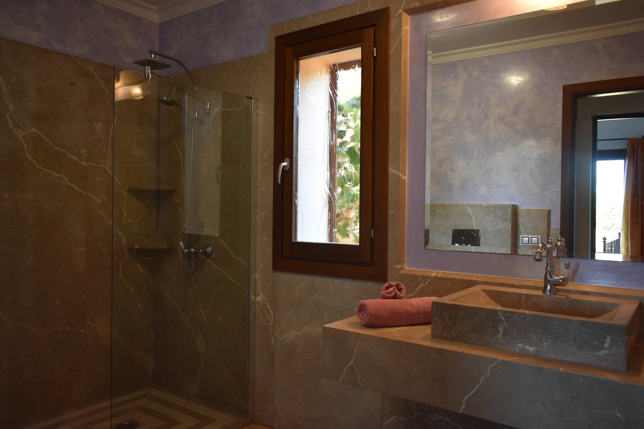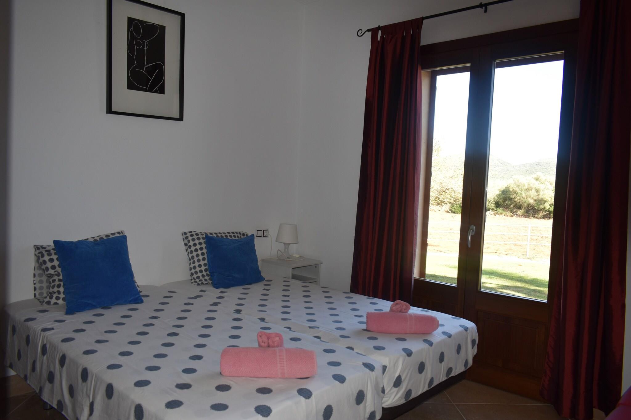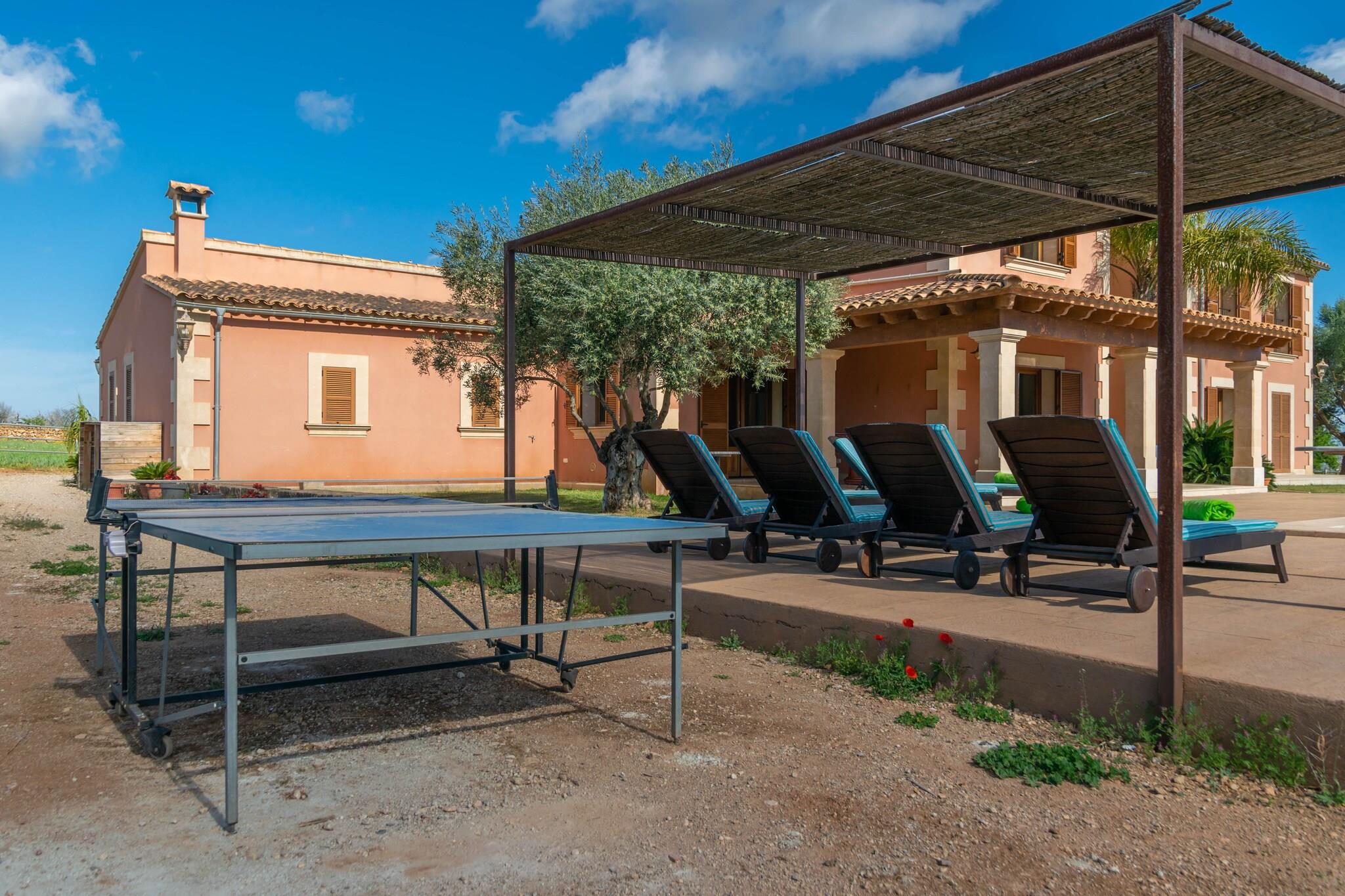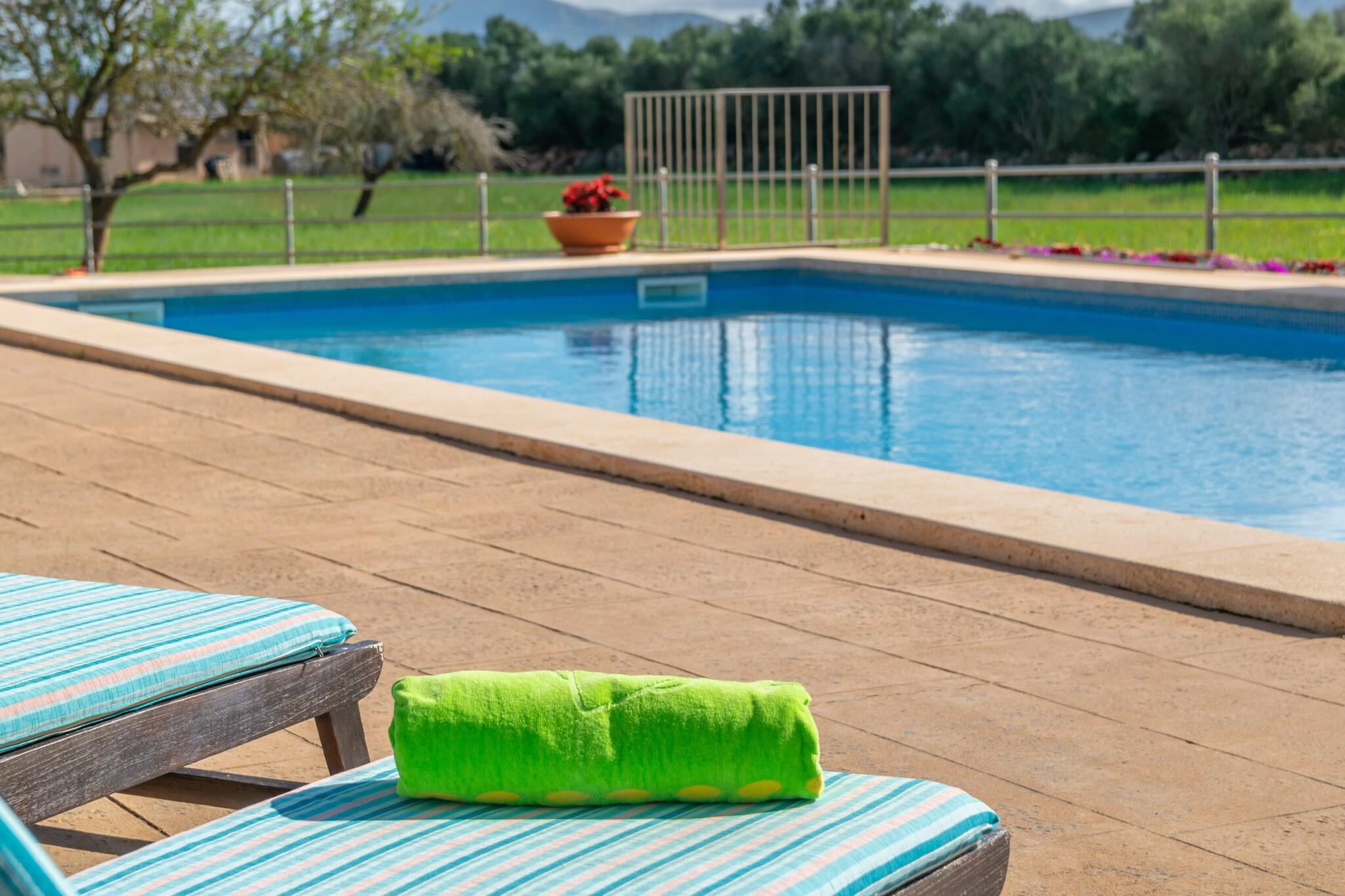 Denne rummelige villa tilbyder et fredfyldt tilflugtssted på landet med en stor privat klorpool (10m x 5m, 0,9m til 1,8m dybde). Gæsterne kan slappe af ved poolen på liggestole, nyde en grill på den møblerede veranda eller slappe af i haven, alt imens de nyder fuldstændig privatliv, da ejendommen er fuldt indhegnet. Villaen, fordelt på to etager, har plads til op til 12 gæster i 6 opvarmede soveværelser (5 dobbeltsenge, 1 værelse med 2 enkeltsenge). Det har en hyggelig opholds-/spisestue med oliecentralvarme og Smart TV samt et veludstyret gaskøkken. Layoutet omfatter to badeværelser - et med badekar, et med bruser - hvilket sikrer bekvemmelighed for alle gæster. Ejendommen bruger også solenergi, hvilket afspejler en forpligtelse til bæredygtighed. Villaen ligger i udkanten af Manacor og tilbyder nem adgang til strande som Cala Anguila (22,1 km væk) og nærliggende attraktioner såsom Rafael Nadal-museet. Området er også kendt for sine vinmarker, perfekt til vinsmagning og lokale madoplevelser. Som reaktion på Coronavirus (COVID-19) er yderligere sikkerheds- og sanitære foranstaltninger i kraft på denne ejendom. Turistlicens: ETV/10767 Ecotasa: Betales på stedet. Husdyr: Ikke tilladt. Arrangementer: Forbudt. Parkering: Udvendig parkering til 3 biler.