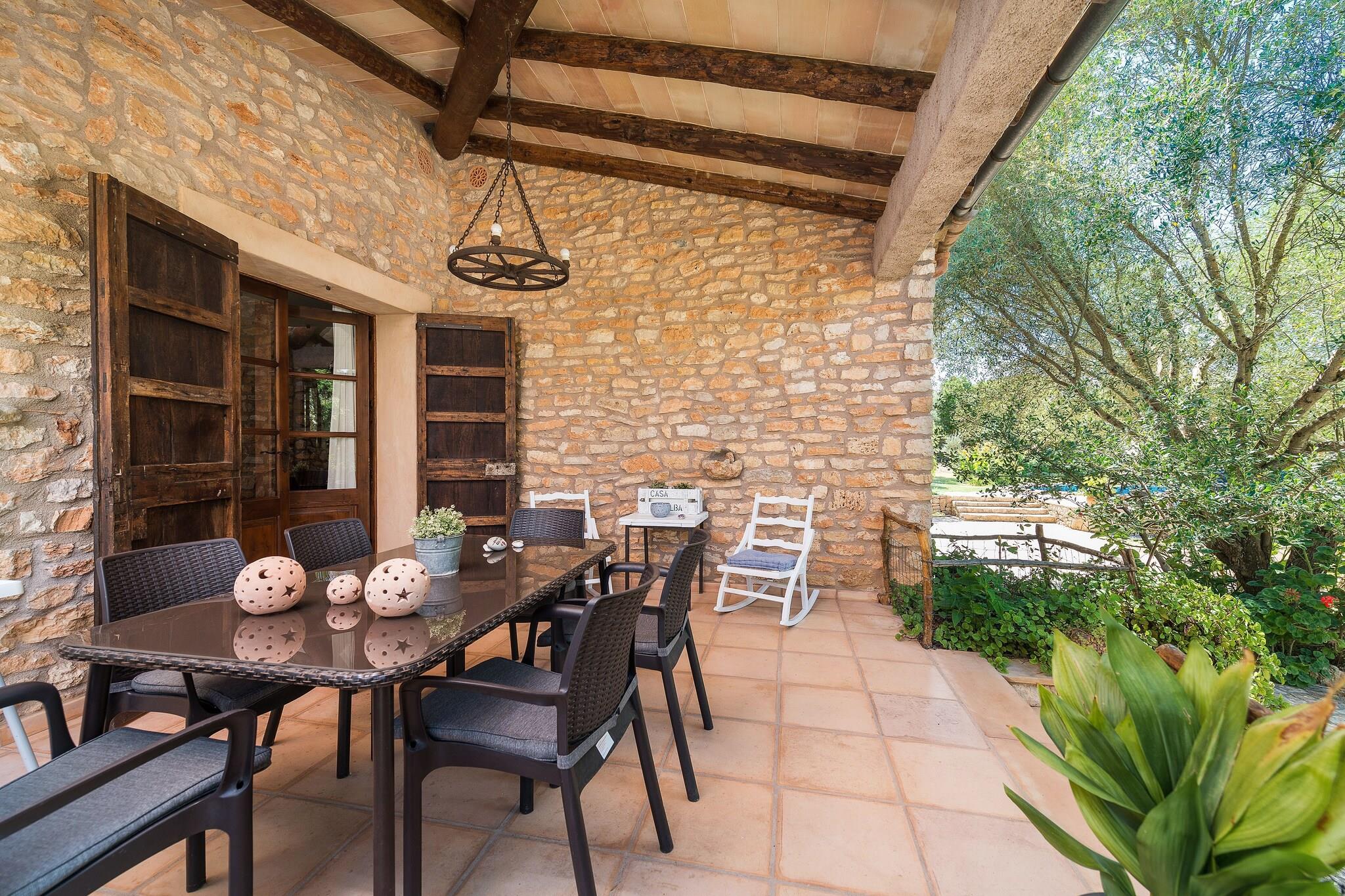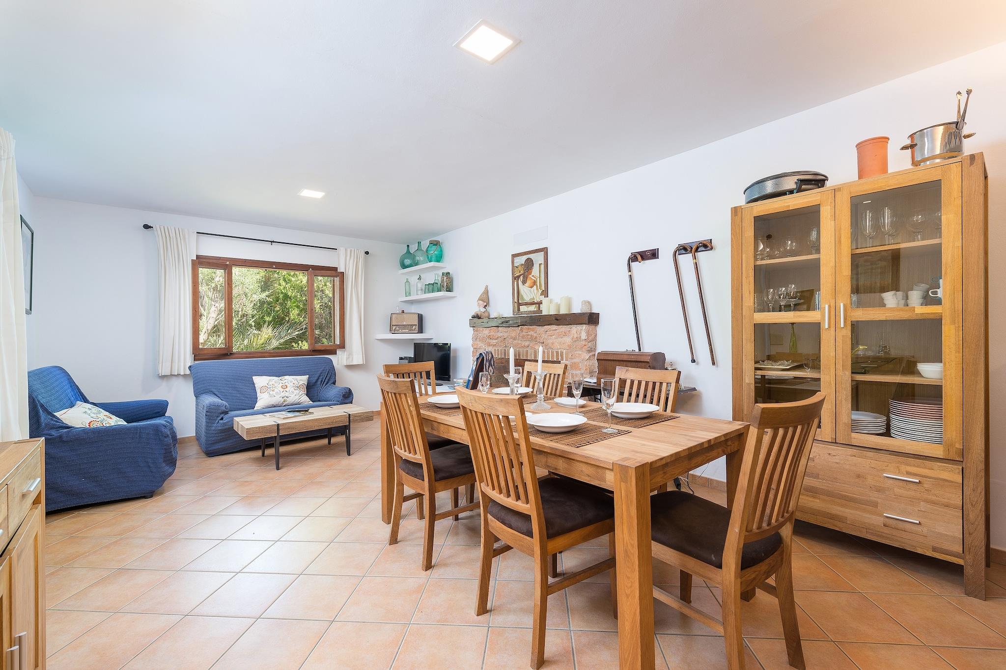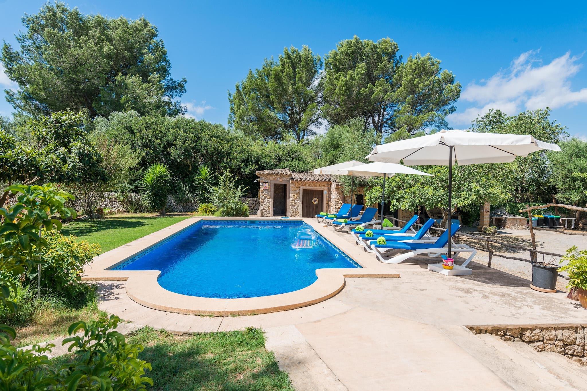 Oplev autentisk ø-landliv i denne storslåede finca omgivet af frodige marker og grønne områder. Det fredelige udendørsområde inviterer dig til at læse, lege med børn eller tage beroligende gåture i naturen. En stor 9x4,5 m klorpool med dybder fra 1 til 1,8 m er perfekt til svømning og afslapning. Seks liggestole, en udendørs bruser og en møbleret veranda med grill fuldender rammerne. Den indhegnede grund sikrer privatlivets fred, mens naboer er i nærheden. Indenfor tilbyder et rummeligt opholds-, spise- og køkkenområde i åbent plan komfort med satellit-tv og en keramisk kogeplade til madlavning. Der er tre soveværelser: to i stueetagen (en dobbeltseng, et med to tvillinger) og et tredje ovenpå med to tvillinger og en en-suite bruser, der er adgang til via en ekstern trappe. Alle soveværelser har garderobeskabe og fans. Yderligere faciliteter omfatter et selvstændigt vaskerum med vaskemaskine og strygefaciliteter. En barneseng og høj stol er til rådighed for babyer. Beliggende kun 3,4 km fra Manacor med fuld service og kun 19,5 km fra den smukke Portocristo strand og berømte Drach Caves. Golfelskere kan nyde en bane kun 1,1 km væk. Kæledyr og arrangementer er ikke tilladt. Parkering til 3 biler til rådighed.