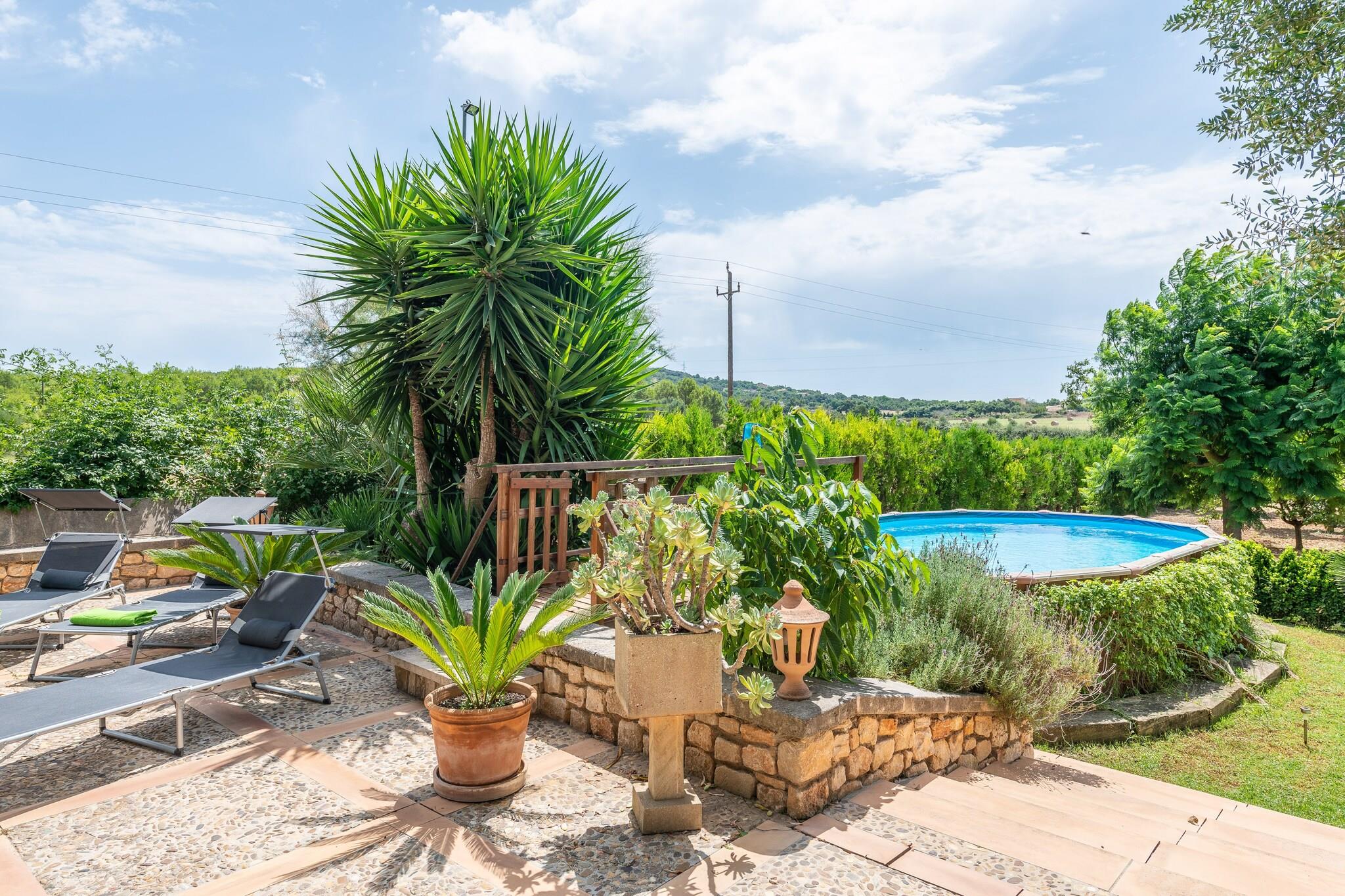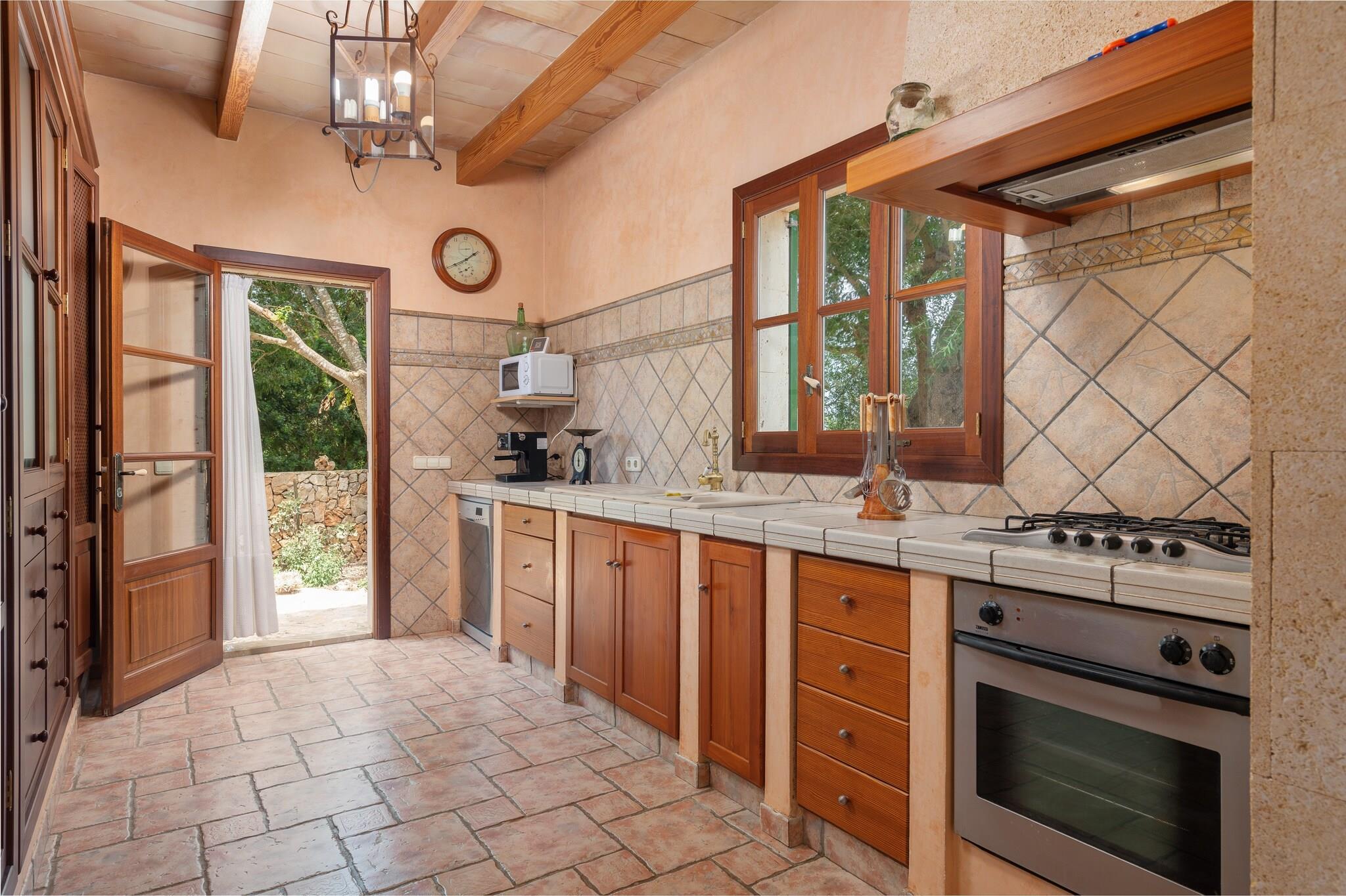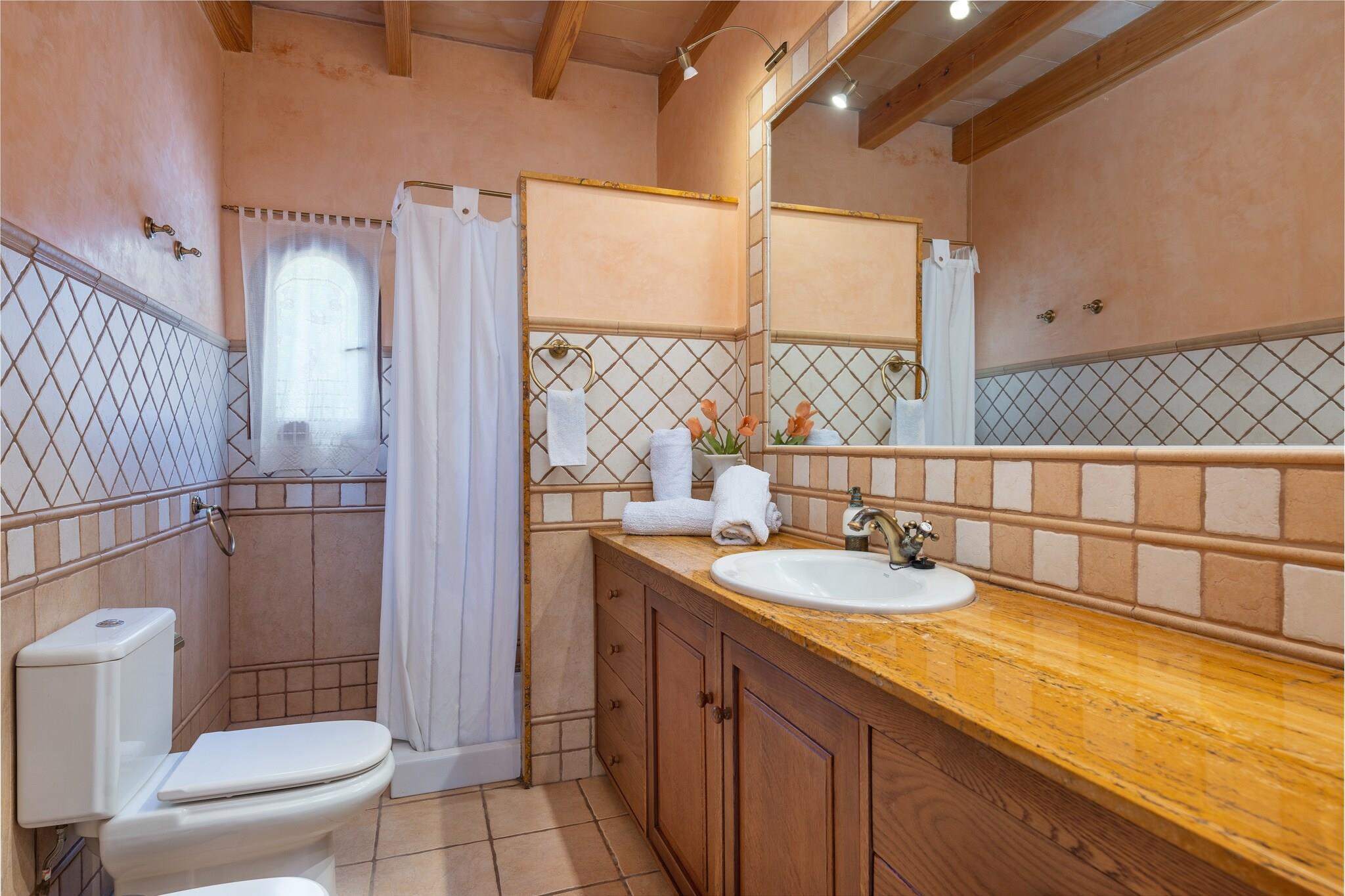 Denne fantastiske landlige villa kan prale af smukt vedligeholdt eksteriør. Den 7 x 4 m private overjordiske klorpool (1,3 m dyb) er perfekt til afkøling, mens 6 liggestole inviterer dig til at slappe af under solen. Børn vil elske legepladsområdet. Adskillige terrasser tilbyder ideelle steder til udendørs måltider, og en gasgrill er tilgængelig til din brug. Den rummelige grund på 7100 m² tilbyder privatliv, men er ikke indhegnet. Huset i to etager er hyggeligt og funktionelt. I stueetagen deler stuen med satellit-tv og pejs plads med spiseplads og køkken udstyret med gaskomfur. Der er også et badeværelse med bruser og et vaskerum med vaskemaskine, strygejern og strygebræt. Ovenpå har alle 3 soveværelser dobbeltsenge, AC og garderobeskabe. To soveværelser deler terrasse. Et andet badeværelse med bruser er også placeret på denne etage. Huset ligger 3 km fra Manacor og tilbyder ro og nem adgang til tjenester. Porto Cristo-stranden ligger 16,3 km derfra, og La Reserva Rotana Golf ligger kun 3,6 km derfra. Vedligeholdelse af have og pool finder sted tidligt om morgenen. Kæledyr er kun tilladt efter anmodning. Arrangementer er ikke tilladt. Udvendig parkering til 1 bil. Turistskat og depositum betales på stedet.