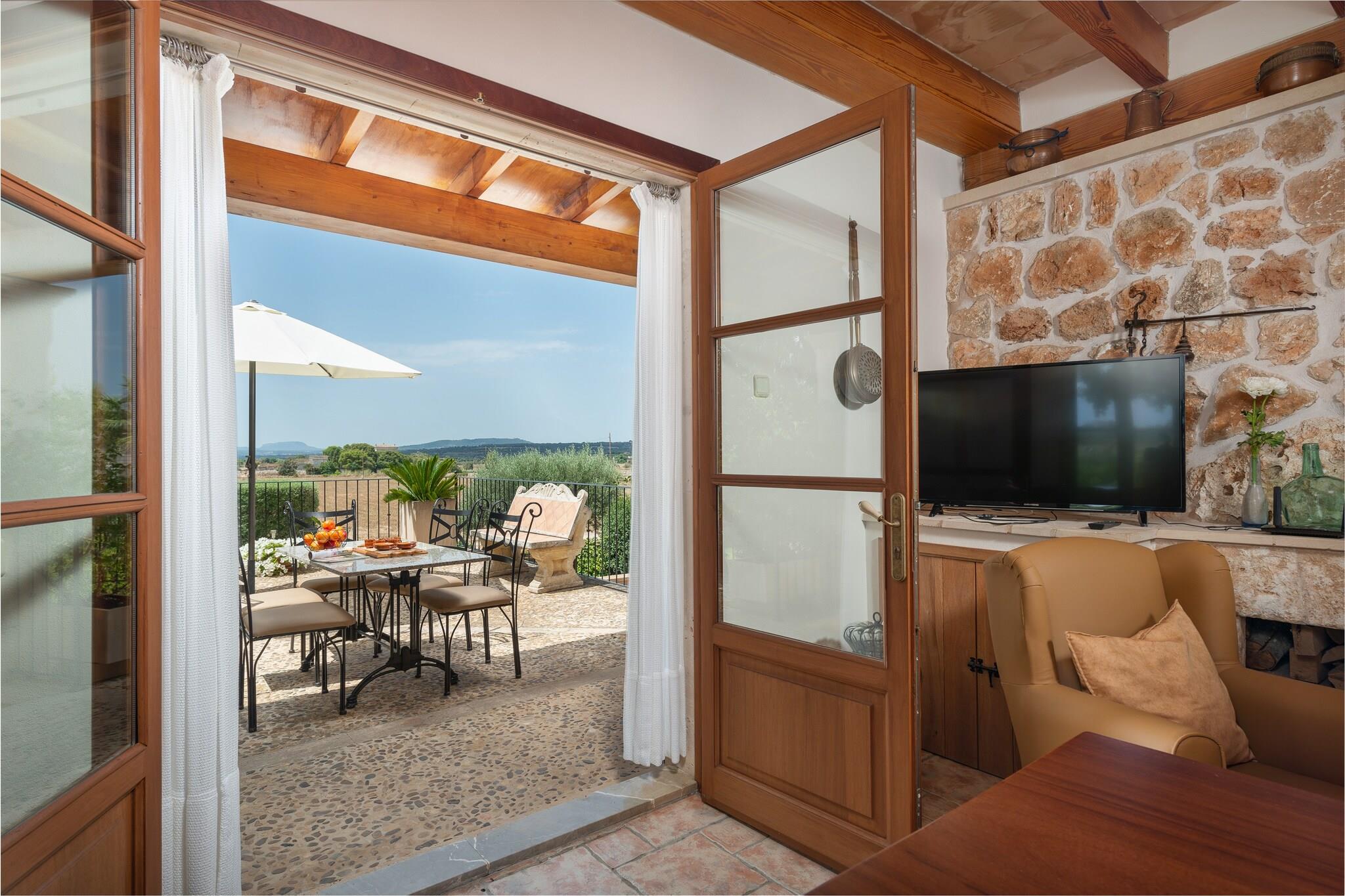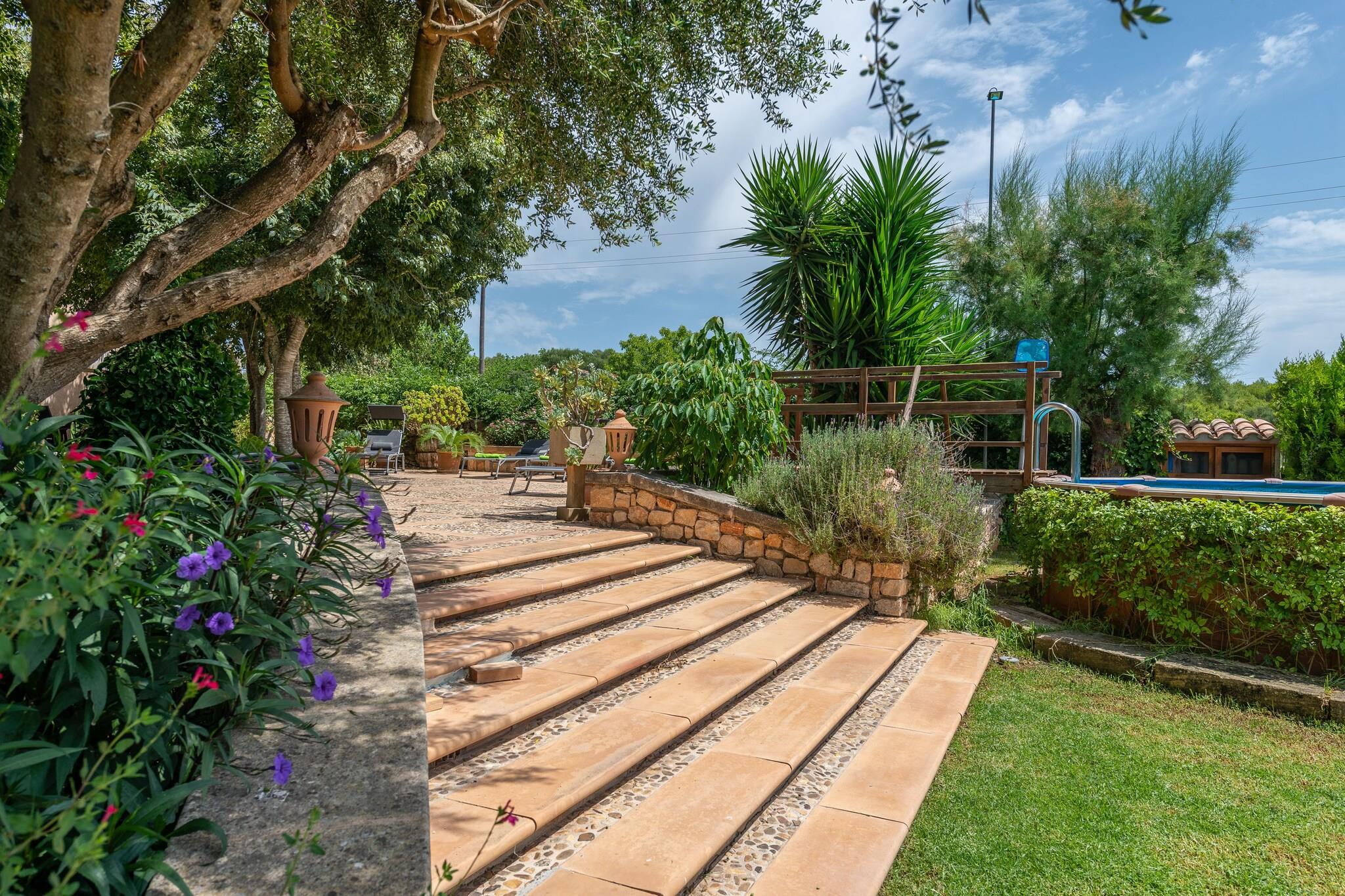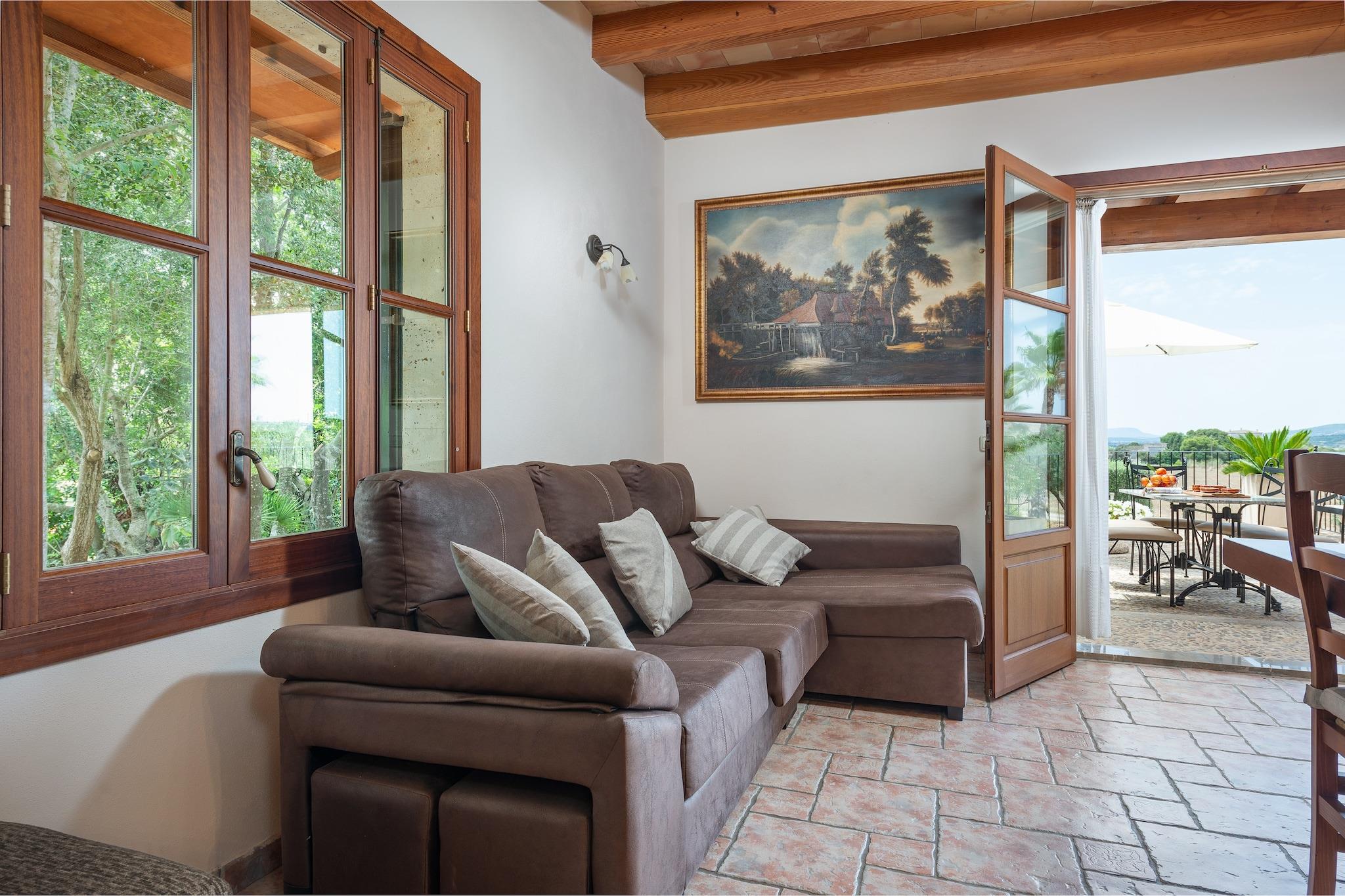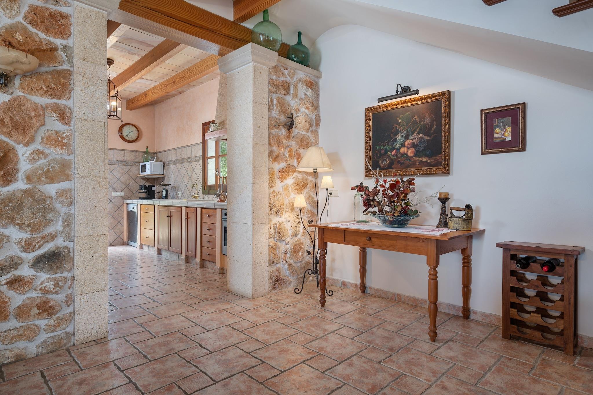 Denne fantastiske landlige villa kan prale af smukt vedligeholdt eksteriør. Den 7 x 4 m private overjordiske klorpool (1,3 m dyb) er perfekt til afkøling, mens 6 liggestole inviterer dig til at slappe af under solen. Børn vil elske legepladsområdet. Adskillige terrasser tilbyder ideelle steder til udendørs måltider, og en gasgrill er tilgængelig til din brug. Den rummelige grund på 7100 m² tilbyder privatliv, men er ikke indhegnet. Huset i to etager er hyggeligt og funktionelt. I stueetagen deler stuen med satellit-tv og pejs plads med spiseplads og køkken udstyret med gaskomfur. Der er også et badeværelse med bruser og et vaskerum med vaskemaskine, strygejern og strygebræt. Ovenpå har alle 3 soveværelser dobbeltsenge, AC og garderobeskabe. To soveværelser deler terrasse. Et andet badeværelse med bruser er også placeret på denne etage. Huset ligger 3 km fra Manacor og tilbyder ro og nem adgang til tjenester. Porto Cristo-stranden ligger 16,3 km derfra, og La Reserva Rotana Golf ligger kun 3,6 km derfra. Vedligeholdelse af have og pool finder sted tidligt om morgenen. Kæledyr er kun tilladt efter anmodning. Arrangementer er ikke tilladt. Udvendig parkering til 1 bil. Turistskat og depositum betales på stedet.