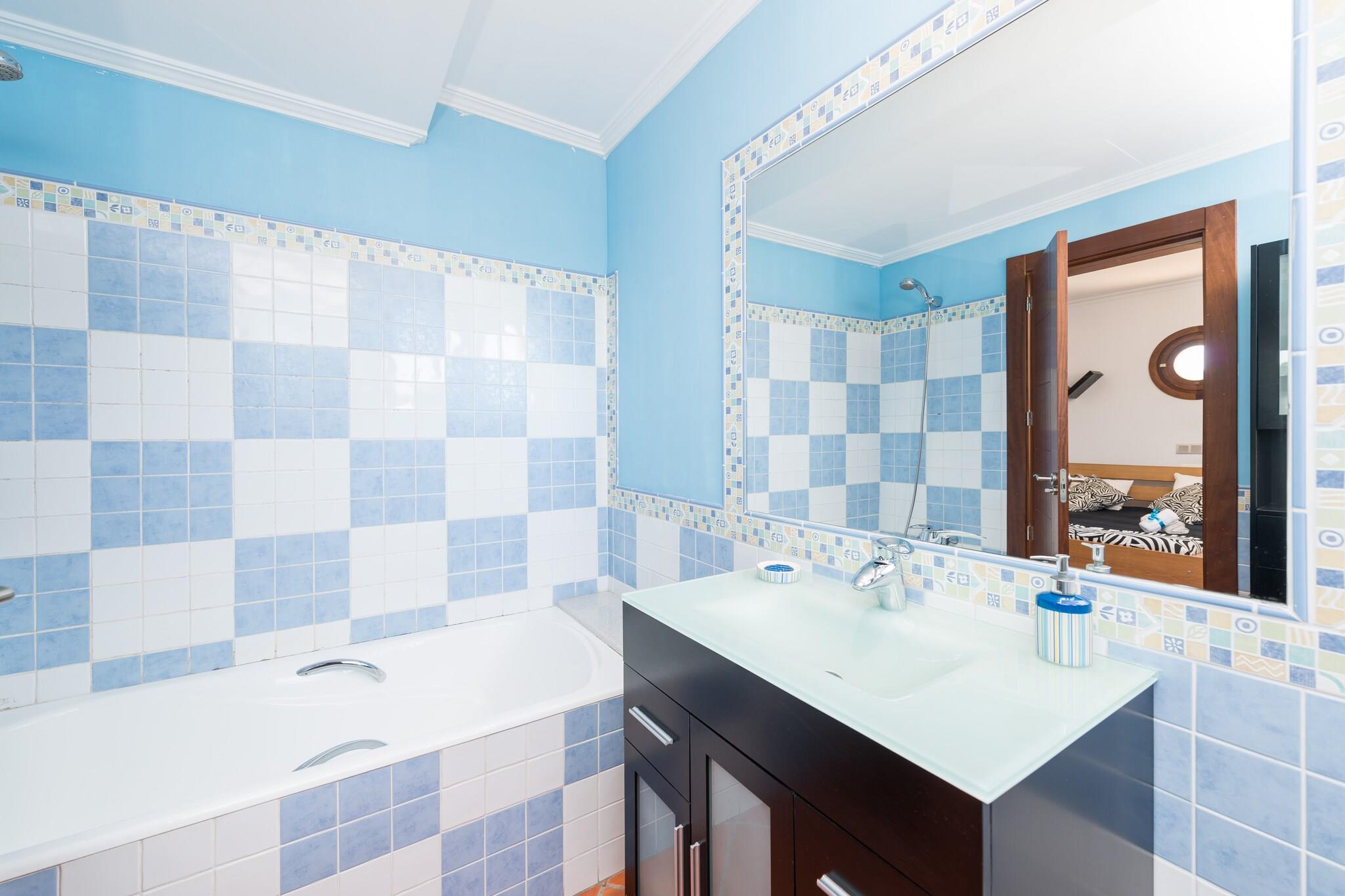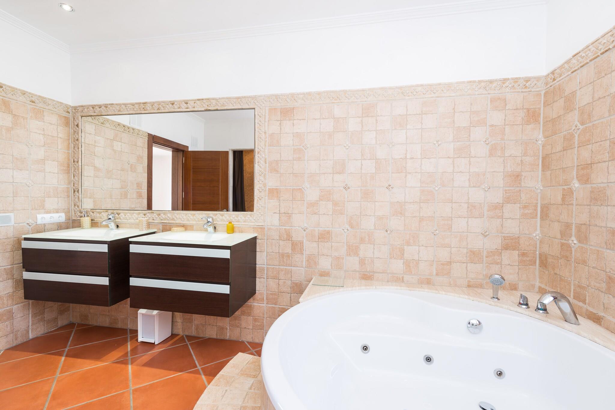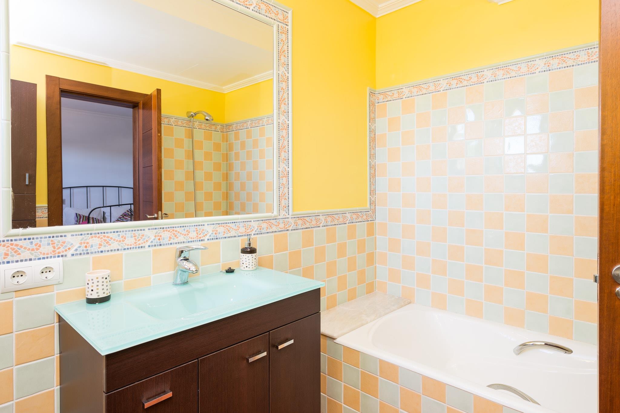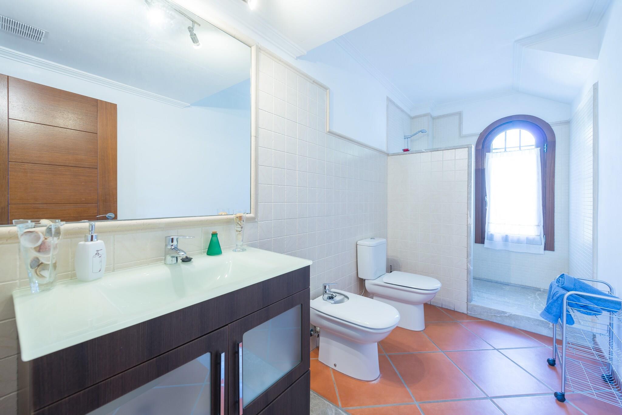 Nyd landsbylivet i eksklusive omgivelser og et utroligt hus, hvor du vil glemme hverdagen. Udenfor finder du et skønt 10 x 5 saltbassin med en dybde, der går fra 1,2 til 1,8 meter. Det er ideelt til sommerdukkert, og det er omgivet af en fantastisk have, hvor du kan ligge og solbade på en af liggestolene eller forberede en grill med dine venner. Derfra kommer vi ind i stueetagens veranda op ad nogle trapper. Verandaen er indrettet til at nyde måltider og middage udendørs. Grunden er indhegnet og har direkte naboer, så privatlivets fred er delvist. Boligen på 400 m2 er fordelt på to etager. I stueetagen finder vi en behagelig og velkendt stue, hvor du kan se tv eller slappe af. Den åbner til køkkenet gennem en bue. Køkkenet er fuldt udstyret, med en keramisk kogeplade, og med en behagelig ø med taburetter til at arbejde let, sammen med en spiseplads til 6 personer, hvor du vil tilbringe kvalitetstid med dine kære, mens du laver mad. Udover det finder du en utrolig spisestue til 10 personer. Det første af soveværelserne, med en dobbeltseng, er også i stueetagen, samt det andet soveværelse, men dette har 2 enkeltsenge. Der er et badeværelse med bruser i stueetagen. Ovenpå finder vi de tre andre soveværelser, de tre af dem med dobbeltseng og eget badeværelse. Der er AC i alle soveværelser og i køkken-alrummet. Rejser du med en baby en barneseng og en høj stol ara til din rådighed. Huset tæller også med vaskemaskine, tørretumbler, strygejern og strygebræt Der er parkeringsplads til 2 biler i garagen. Turistlicens: ETV/10838 Som reaktion på Coronavirus (COVID-19) er yderligere sikkerheds- og sanitære foranstaltninger i kraft på denne ejendom.