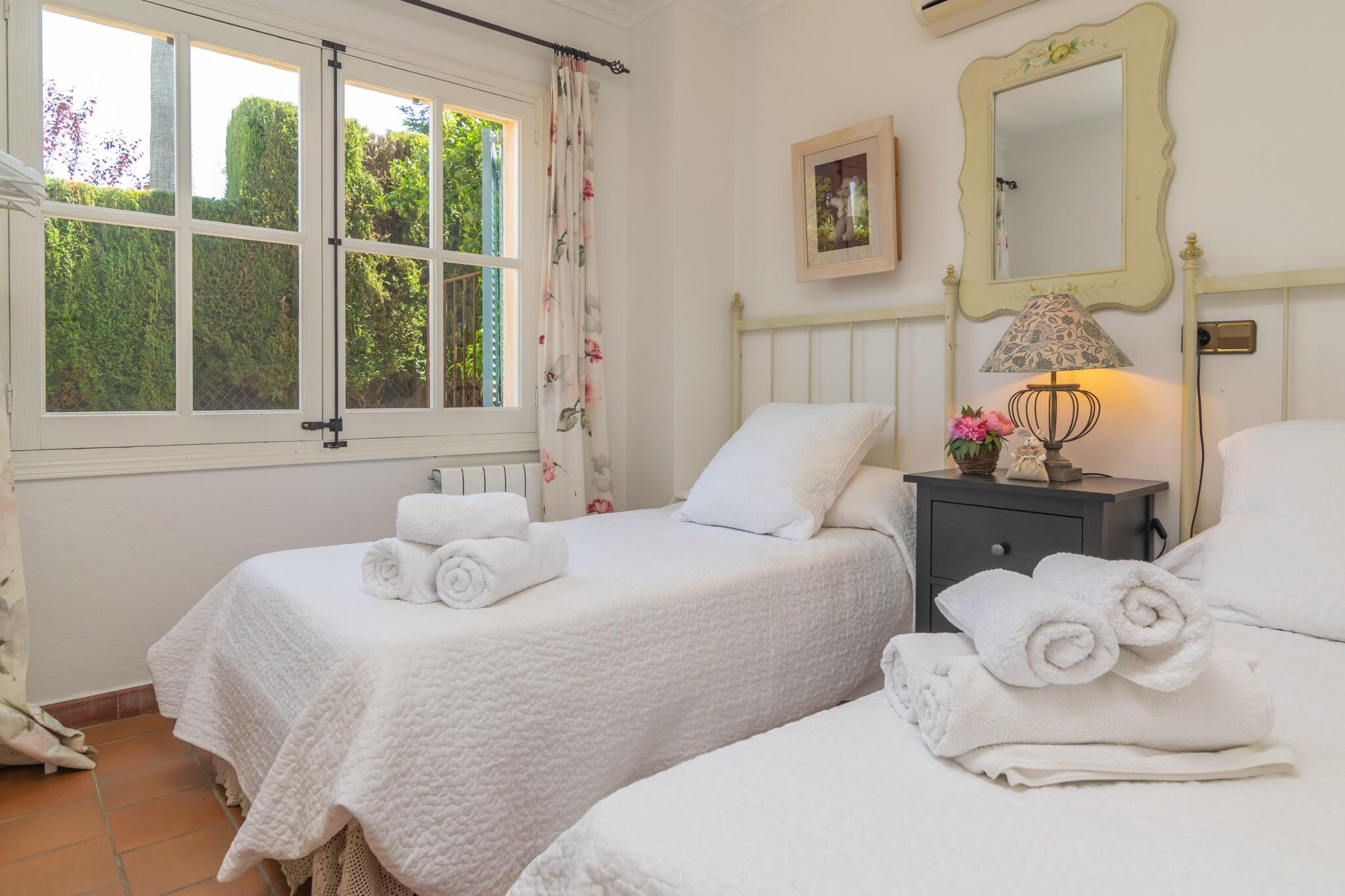 De buitenkant van het huis is erg mooi. Opvallend is de verzorgde tuin met privé chloorzwembad van 11 x 6 meter en een diepte variërend van 1 tot 2,1 meter. De comfortabele ligstoelen zijn ideaal om te ontspannen in de zon na een verfrissende duik. Op de veranda van het huis kunt u heerlijk in de schaduw zitten en nagenieten van een heerlijke barbecue uw maaltijd verlengen. Het terrein is omheind en er zijn buren in de buurt. Het huis met 2 verdiepingen heeft een charmante klassieke stijl. De grote eetkamer geeft via grote ramen toegang tot de veranda. De keuken heeft tevens een meer informele eethoek en is voorzien van inductie. Er is ook een wasmachine, strijkijzer en strijkplank. De begane grond wordt gecompleteerd door een badkamer met ligbad en twee slaapkamers, één met een tweepersoonsbed en de andere met twee eenpersoonsbedden. Op de eerste verdieping hebben we nog een mooie kamer met satelliet-tv, een badkamer met ligbad en nog 2 slaapkamers, beide met een tweepersoonsbed en één met een en-suite badkamer met douche. De 4 slaapkamers zijn voorzien van airconditioning en het huis heeft centrale verwarming op olie. Ten slotte kunnen wij u voorzien van een wieg en een kinderstoel als u met uw baby reist. Mancor de la Vall is een prachtig stadje aan de voet van de bergen dat de basisvoorzieningen voor uw verblijf biedt. In de stad Inca, op 5 km afstand, vindt u meer winkels en diensten, evenals een traditionele markt die elke donderdag plaatsvindt. Mancor is het perfecte startpunt voor excursies zowel te voet als per fiets, bijvoorbeeld naar Santa Lucía, Lluc, Ses Fonts Ufanes of de prachtige grotten van Campanet. En als u een strand wilt, ligt het dichtstbijzijnde op 30 km afstand, het paradijselijke strand van Puerto de Alcúdia. Voor eventuele extra kosten kunt u contact opnemen met de adverteerder. Wij accepteren geen huisdieren. Het vieren van evenementen is niet toegestaan. Er is buiten parkeergelegenheid voor 2 auto's. Afstanden Strand: 30,1 km - Port d'Alcúdia Luchthaven: 41,2 km - Palma de Mallorca Golfbaan: 26 km - Pollença Stad: 0.350 km - Mancor de la Vall Treinstation: 5,3 km - Inca Bushalte: 0,240 km - Mancor de la Vall Veerboot: 38 km - Palma de Mallorca Ziekenhuis: 6,7 km - Comarcal d'Inca-ziekenhuis Toeristenvergunning: ETV/3254Bij de ingang moet u de Ecotasa (toeristenbelasting van de Balearen) contant betalen. Het bedrag varieert tussen EURO 0,55 / per nacht per persoon in het laagseizoen en EURO 2,2 / per nacht per persoon in het hoogseizoen. Vanaf de negende dag wordt het met de helft verminderd. Personen onder de 16 jaar uitgesloten. Verwarming (januari - december): 1,30 EUR/liter (optioneel)