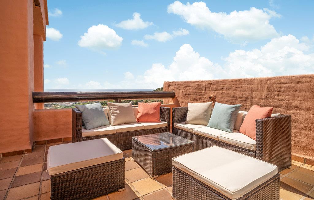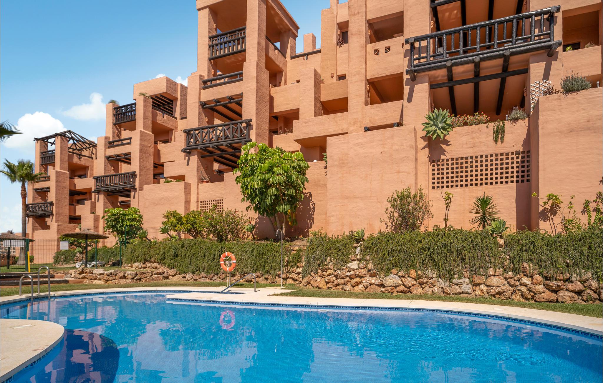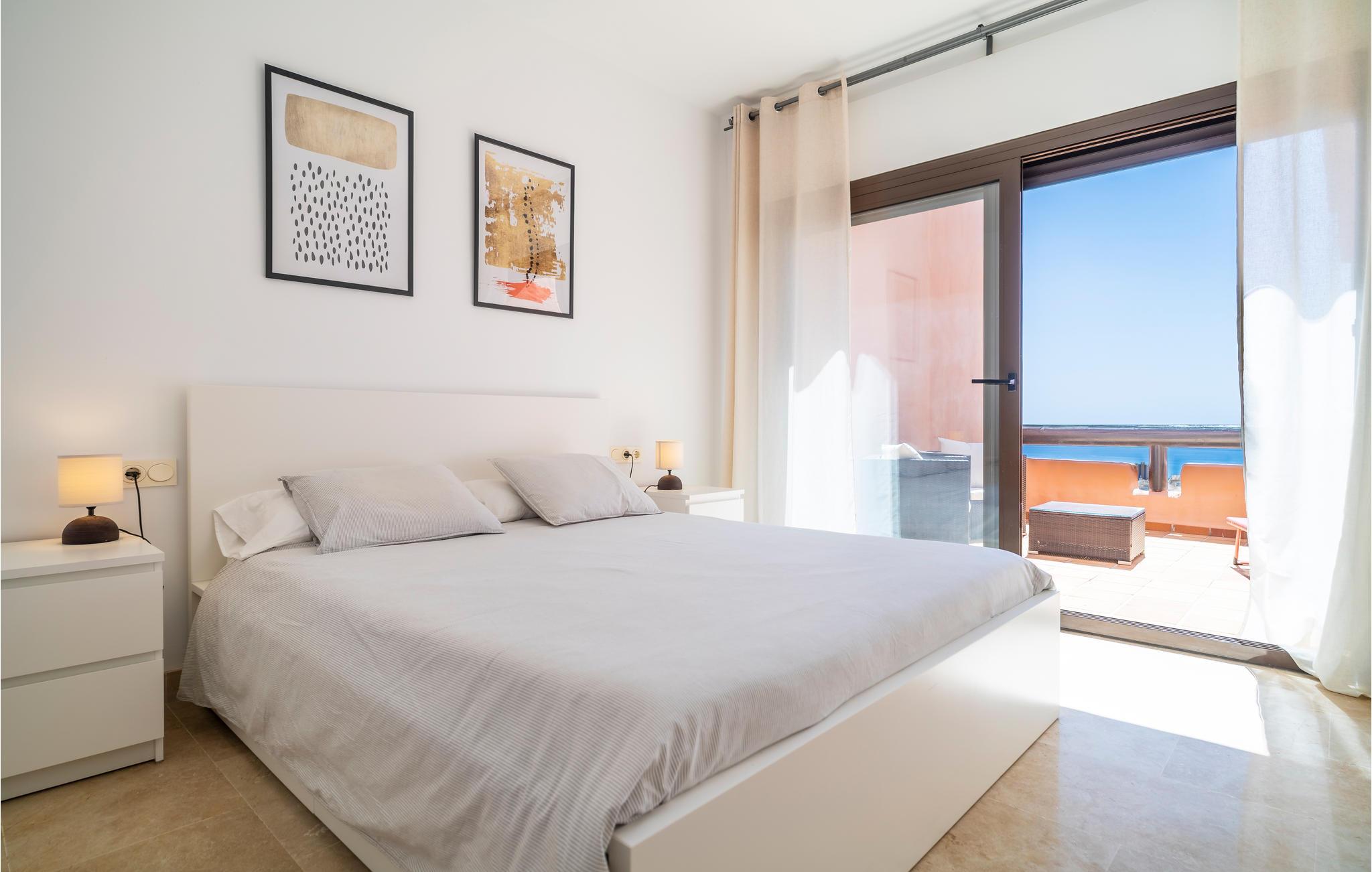 Glæd dig til denne rummelige og eksklusive ferielejlighed med en fantastisk havudsigt. Tilbring en uforglemmelig ferie i dette komfortable feriehus med en udvalgt og harmonisk indretning, hvor du kan føle dig godt tilpas og hjemme. Lejlighedens elegance inviterer din familie eller vennepar til at slappe af i sofaerne eller nyde aftenen på den store tagterrasse. Saml til vidstrakte middage med havudsigt, og planlæg dine aktiviteter. Lejlighedskomplekset byder på en dejlig fælles pool til en hurtig nedkøling. Tag en dukkert og solbad på din private tagterrasse. Til fods eller i bil kan du hurtigt nå den brede sandstrand, hvor du kan hoppe i Middelhavets bølger og samle skaller. Golfspillere finder en indbydende golfbane i umiddelbar nærhed af lejligheden, som strækker sig næsten til stranden. Kystens bagland lover naturelskere og aktive feriegæster de bedste betingelser for vandreture og mountainbiking. Oplev en varieret ferie i Andalusien!