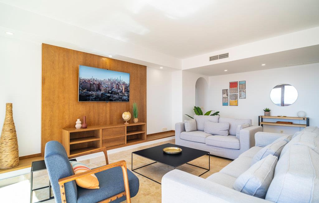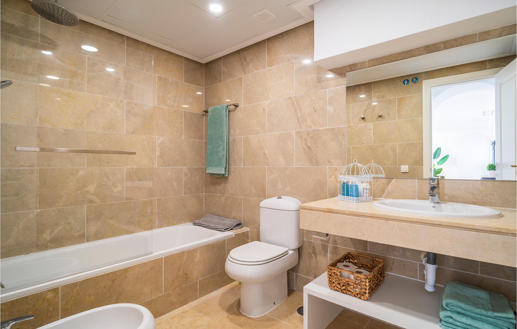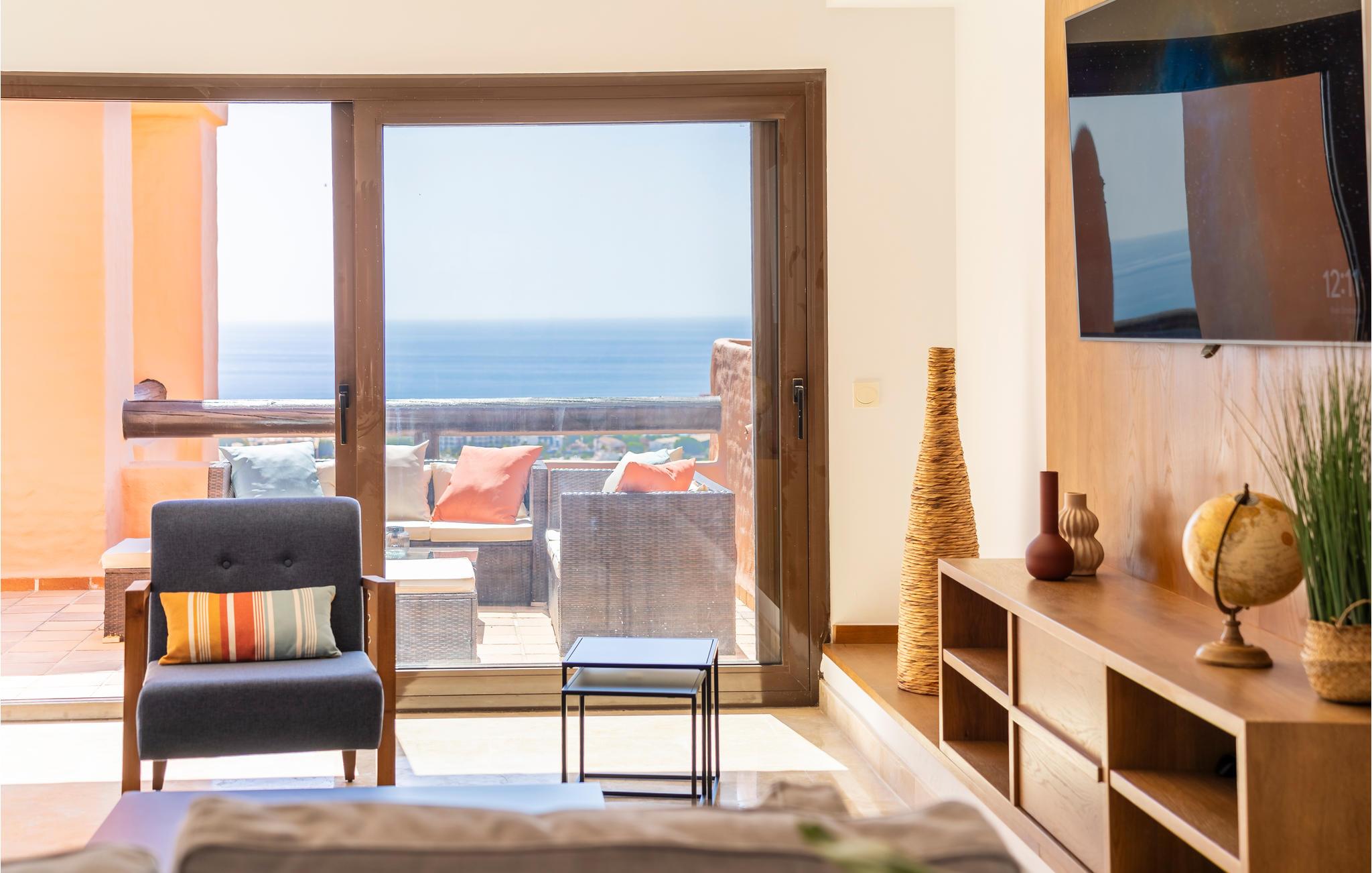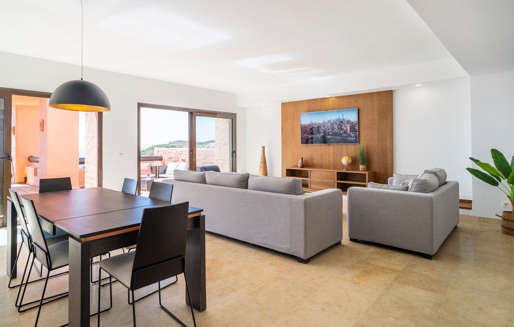 Glæd dig til denne rummelige og eksklusive ferielejlighed med en fantastisk havudsigt. Tilbring en uforglemmelig ferie i dette komfortable feriehus med en udvalgt og harmonisk indretning, hvor du kan føle dig godt tilpas og hjemme. Lejlighedens elegance inviterer din familie eller vennepar til at slappe af i sofaerne eller nyde aftenen på den store tagterrasse. Saml til vidstrakte middage med havudsigt, og planlæg dine aktiviteter. Lejlighedskomplekset byder på en dejlig fælles pool til en hurtig nedkøling. Tag en dukkert og solbad på din private tagterrasse. Til fods eller i bil kan du hurtigt nå den brede sandstrand, hvor du kan hoppe i Middelhavets bølger og samle skaller. Golfspillere finder en indbydende golfbane i umiddelbar nærhed af lejligheden, som strækker sig næsten til stranden. Kystens bagland lover naturelskere og aktive feriegæster de bedste betingelser for vandreture og mountainbiking. Oplev en varieret ferie i Andalusien!