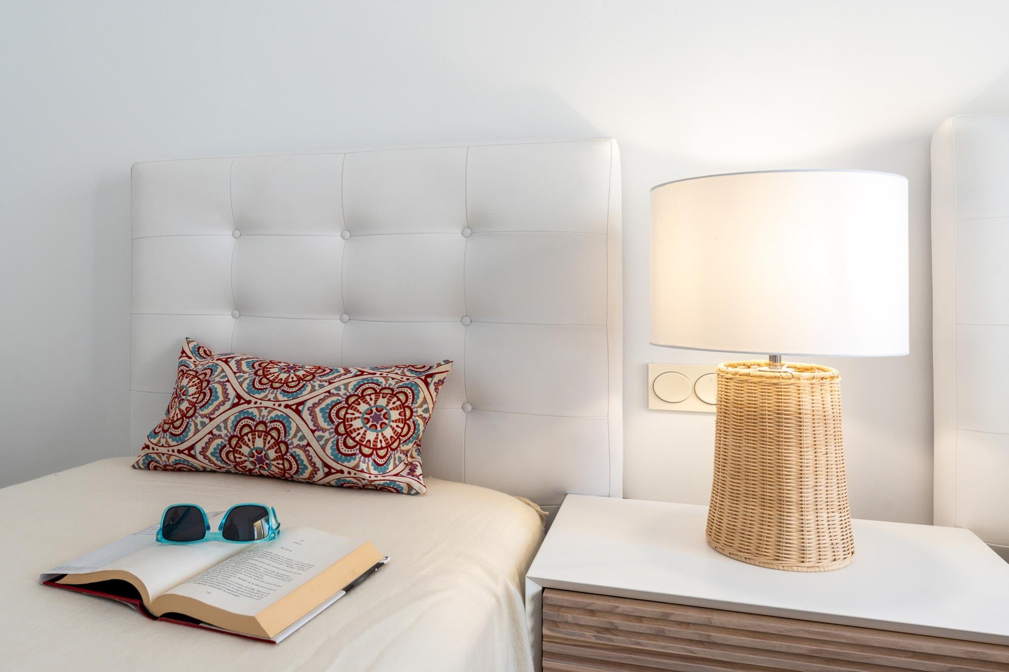 Stue(Fjernsyn, spisebord, sofahjørne, klimaanlæg), Køkken(kakkelovn, elkedel, brødrister, kaffemaskine, ovn, mikrobølgeovn, opvaskemaskine , køle-fryseskab), soveværelse(dobbeltseng, klimaanlæg), soveværelse(enkeltseng, enkeltseng, klimaanlæg), badeværelse(badekar med bruser, toilet), badeværelse(bruser, toilet), Parkering, balkon, swimmingpool(deles med andre gæster, udendørs), Håndklæder/sengelinned (inkl.)