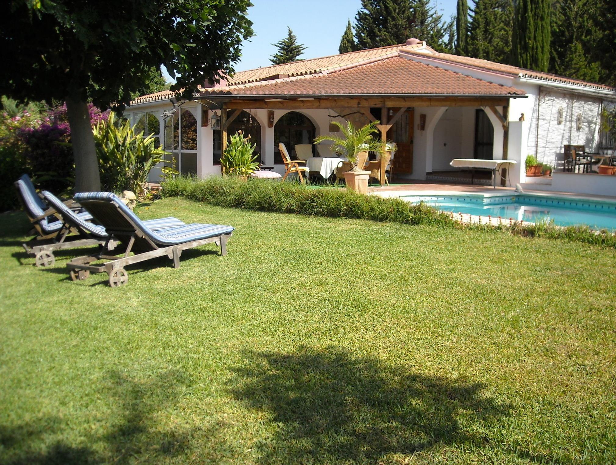 Eingebettet in die natürliche Landschaft Andalusiens und doch in unmittelbarer Nähe des Hafens von Duquesa (ca. 1,5 km)liegt in einem wildromatischen Garten unsere Finca.