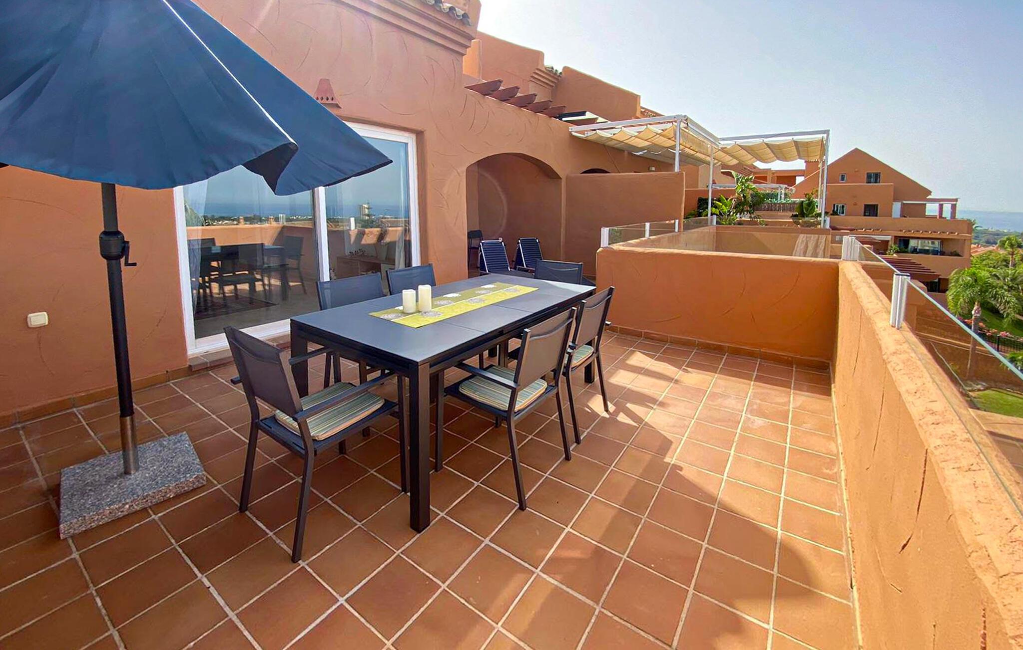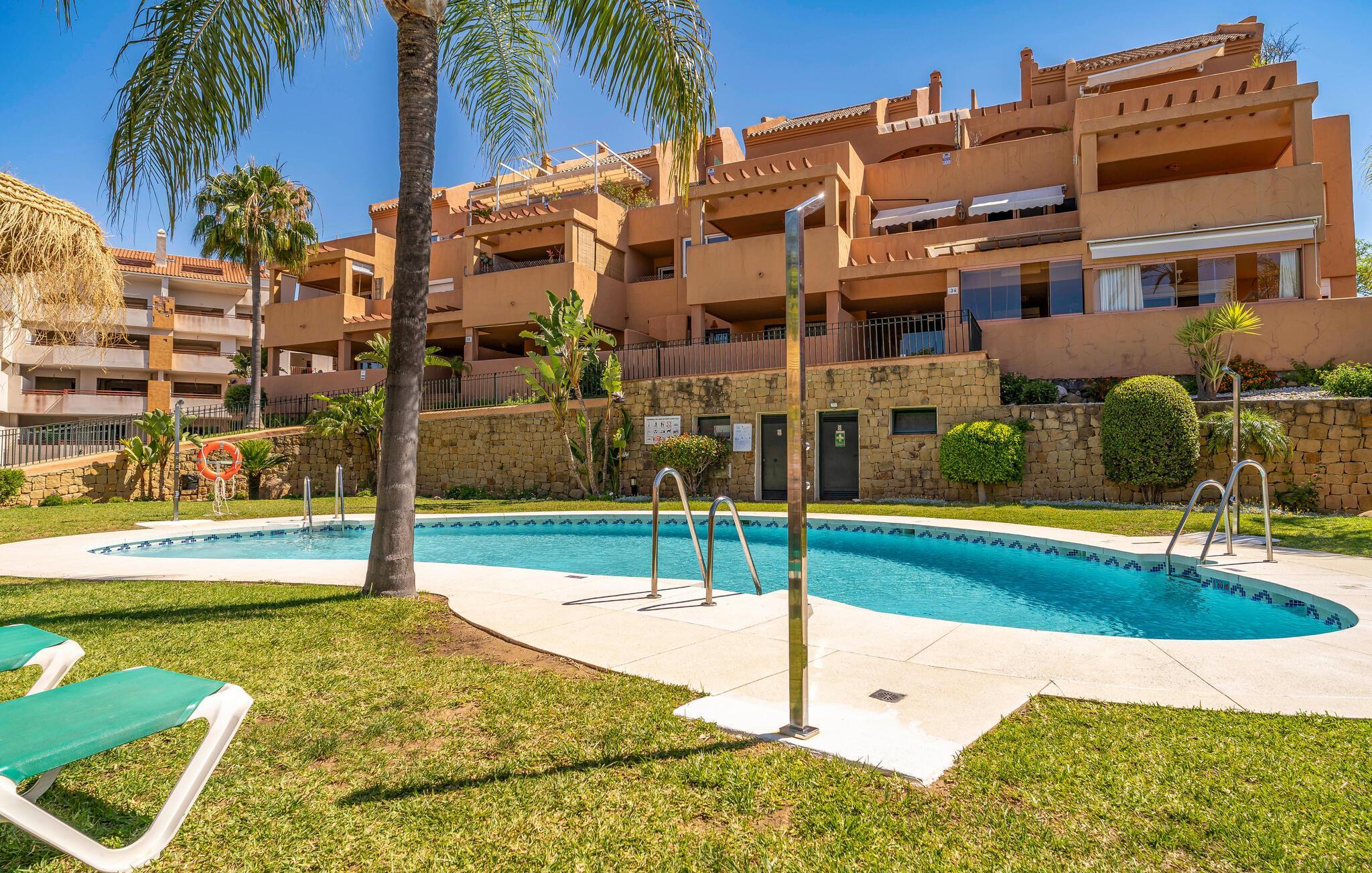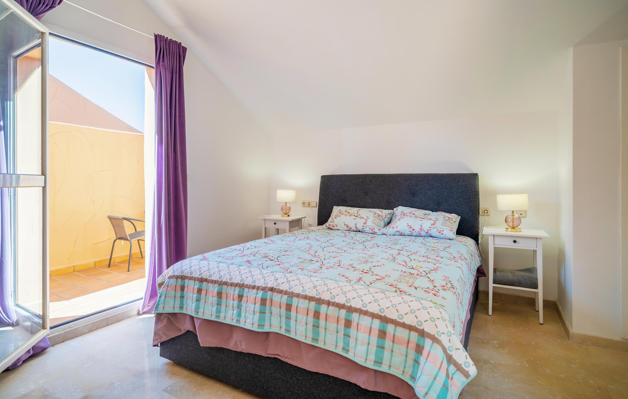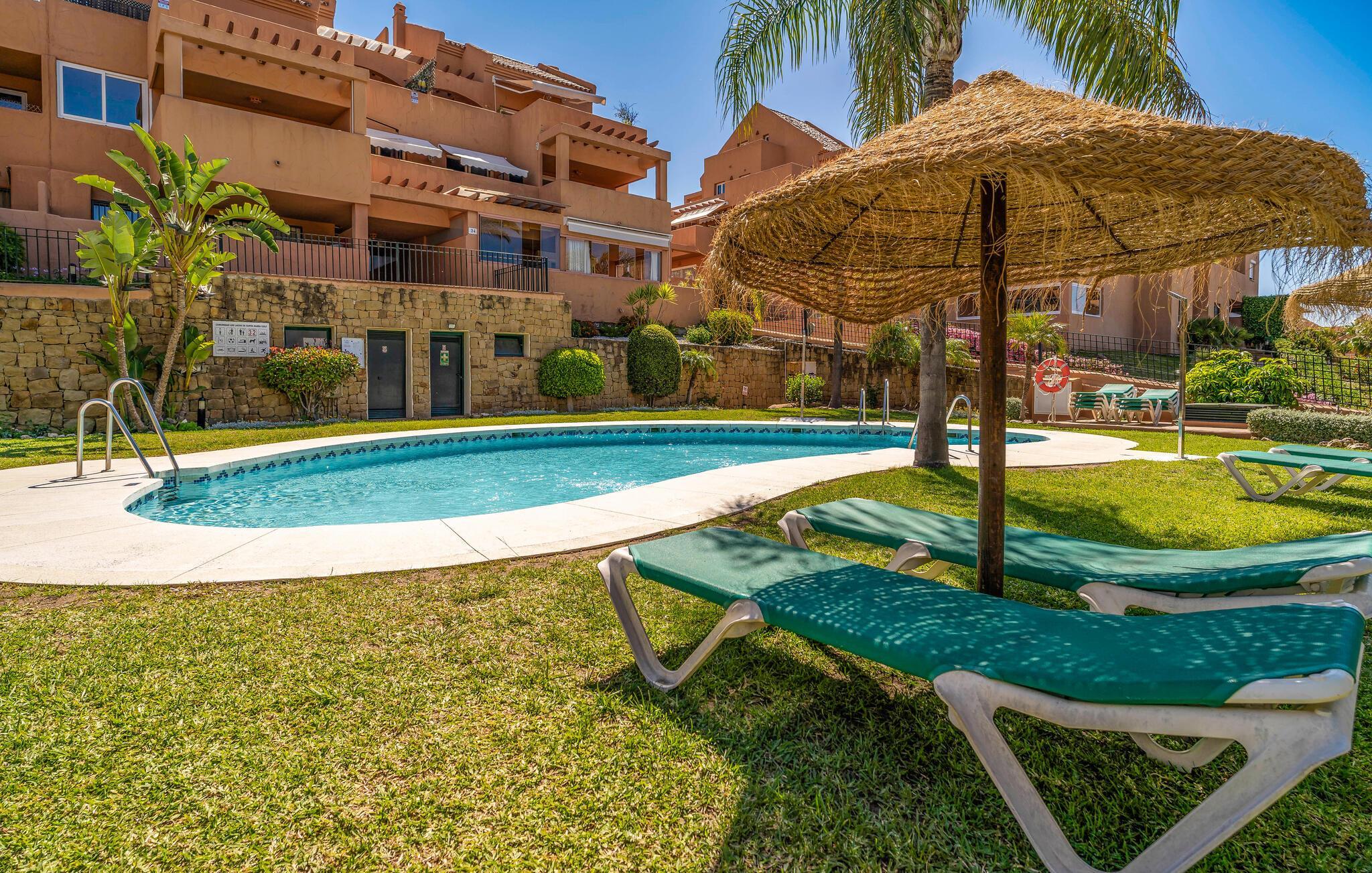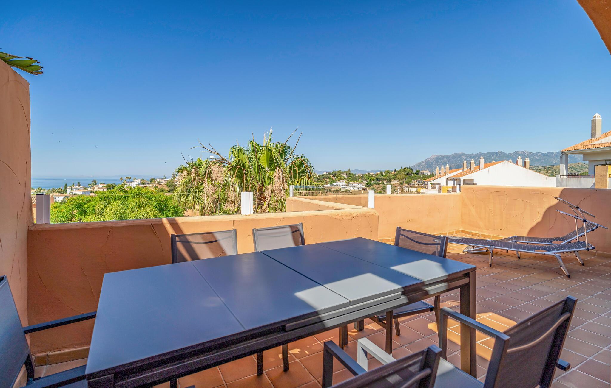 Nyd en solrig ferie i denne komfortable ferielejlighed med havudsigt og adgang til poolen.