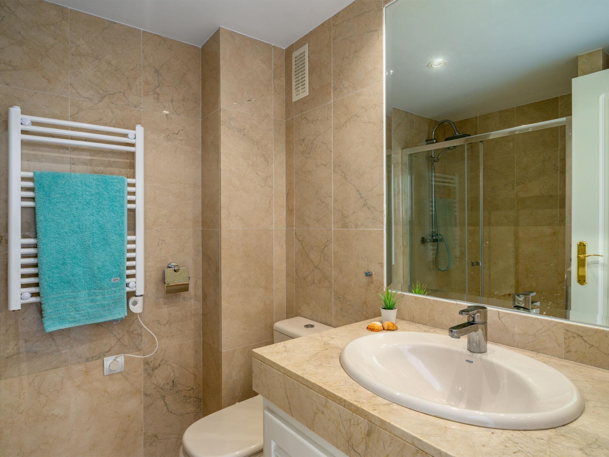 "Senorio de Aloha", 3-room apartment 80 m2 on 4th floor. Beautiful and tasteful furnishings: living/dining room with digital TV. Exit to the terrace. 1 room with 1 double bed (2 x 90 cm, length 200 cm). Exit to the terrace. 1 room with 1 double bed (2 x 90 cm, length 200 cm). Exit to the balcony. Kitchen (oven, dishwasher, 4 ceramic glass hob hotplates, toaster, kettle, microwave, freezer, electric coffee machine). Exit to the balcony. 2 showers/WC. Air-conditioning, forced-air heating, boiler (80 litres). 2 small balconies terrace 20 m2. Terrace furniture. Very beautiful view of the sea, the mountains, the swimming pool and the resort. Facilities: washing machine, dryer, iron, children's high chair, baby cot, hair dryer. Internet (WiFi, free). Garage space n 46. Please note: non-smokers only. VUT/MA/19062 // Reg. Nr.: ESFCTU0000290410004100290000000000000000VUT/MA/190629