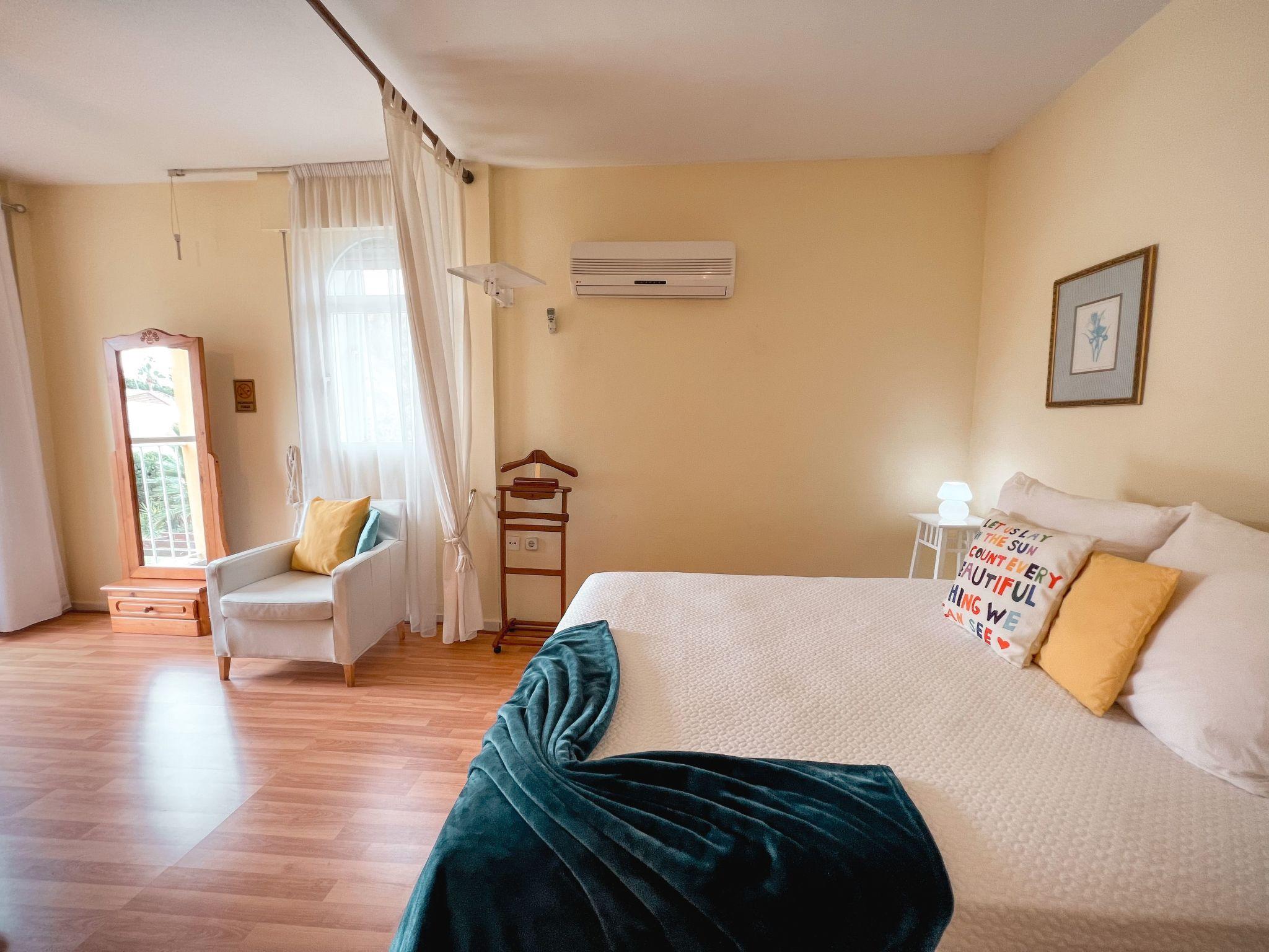 Beautiful villa for up to 10 person with 5 bedrooms, 4 bathrooms, a toilet, air conditioning in all rooms except on one of the room where there are only a fan on the ceiling, internet wifi, 52" smart tv with internationals channels, private pool with loungers, 3 tables to eat outside, a lot of games for children and adults, like “Bádminton, dominos, books, ball, movies in dvd ..etc”, barbacue, garage for up to 2 cars, large garden of 1000m2.. Two of the upstairs bedrooms has a terrace with outdoor furniture where to take the sun or relax with privacy. The kitchen is fully equipped, a living room with a lot of space, fireplace, sofas and a dinning table for up to 6 person.