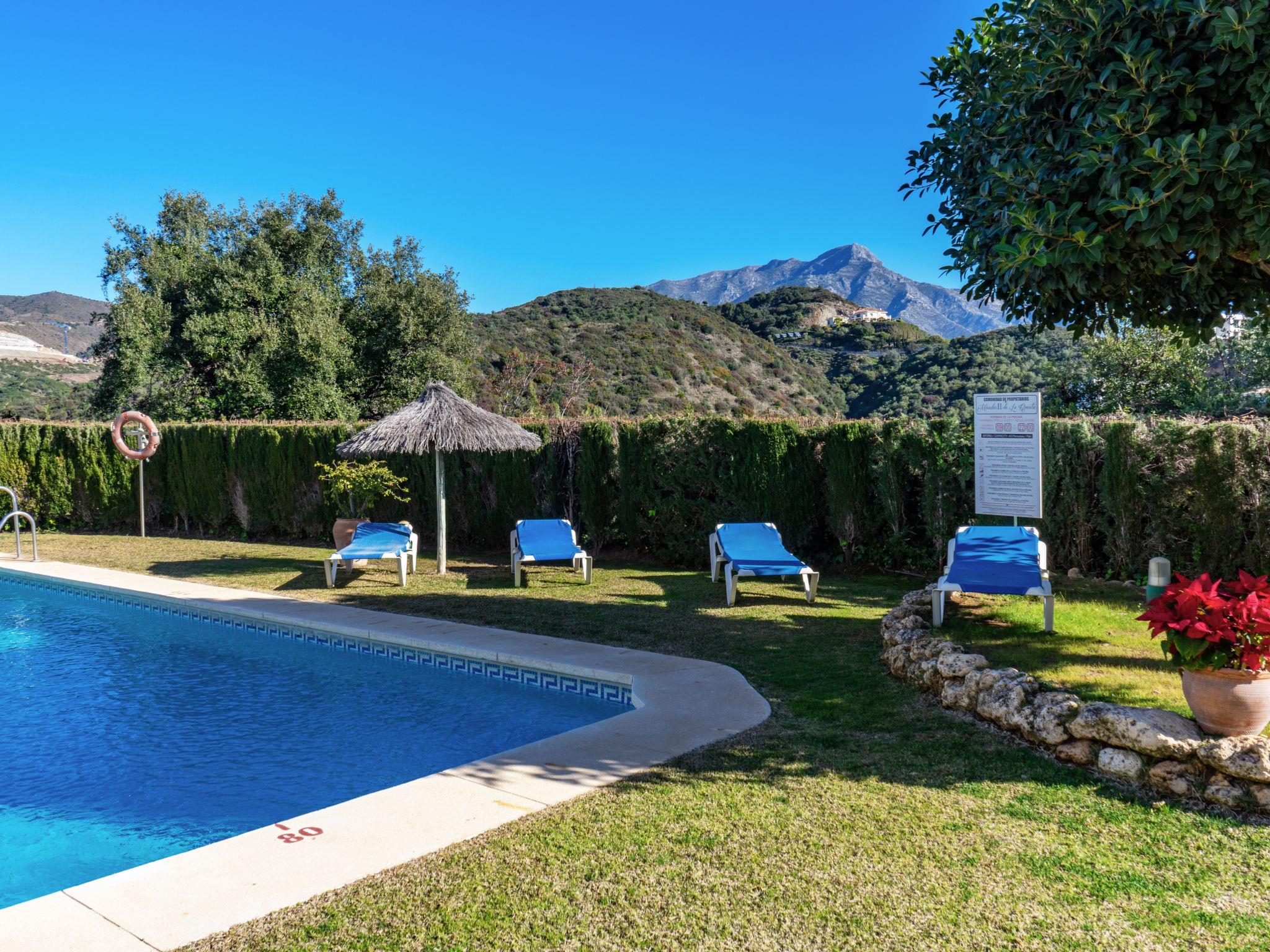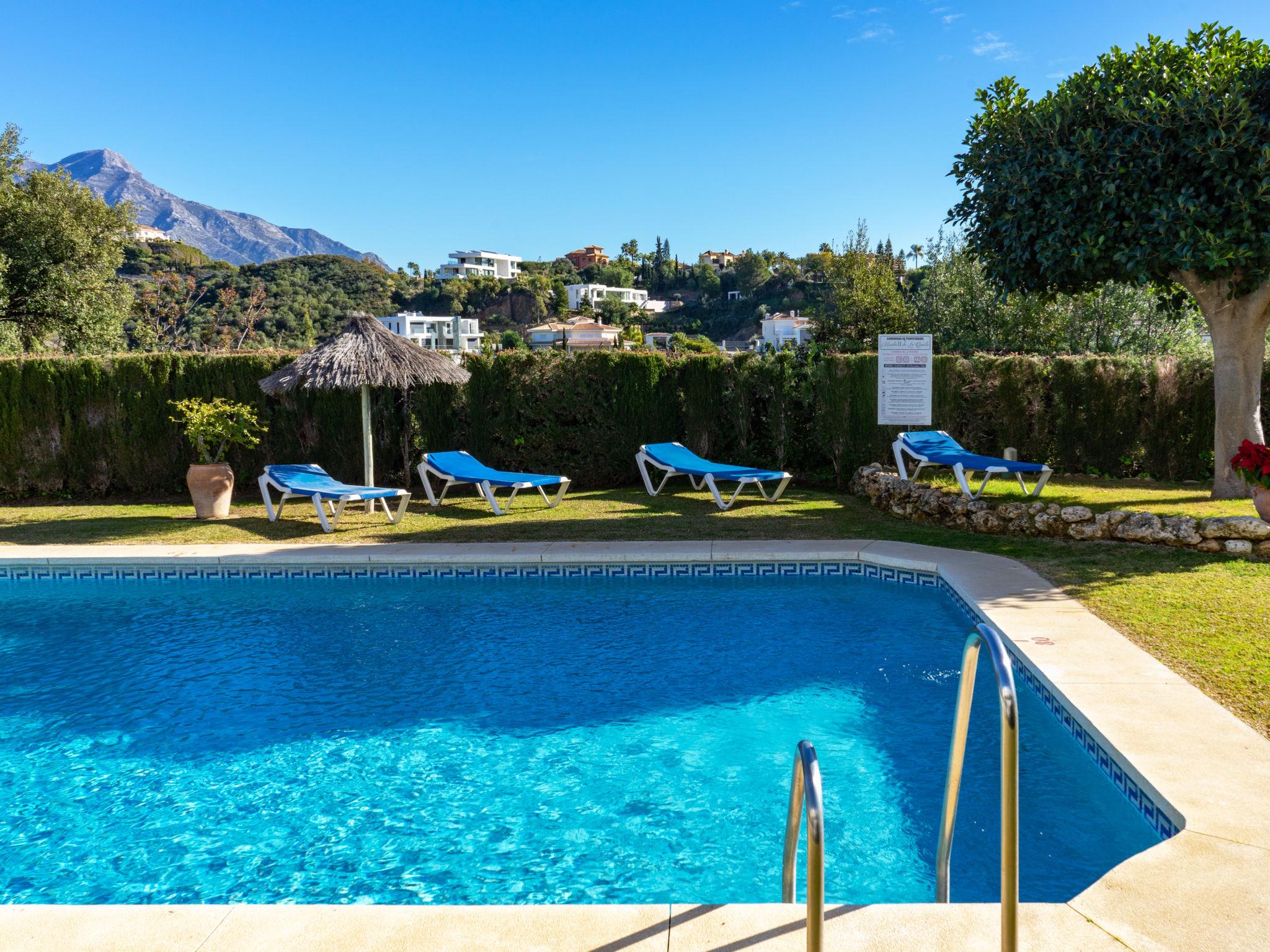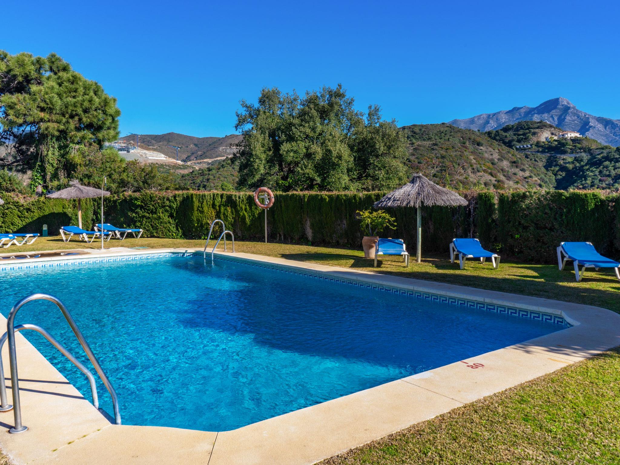 Apartment block "Mirador". 15 km from the centre of Marbella, outside the resort, 7 km from the centre of Puerto Banús, 6 km from the sea, on the golf course, east facing position. For shared use: garden with lawn, swimming pool (depth 80 - 210 cm, seasonal availability: 01.Jun. - 30.Sep.). In the house: central heating system, air conditioning, washing machine. Parking. Supermarket 4 km, restaurant 5 km, bus stop "El Salto" 2.1 km, sandy beach 6 km. Golf course (18 hole) 1 km. Please note: car recommended. Neighbourhood highly sensitive to noise. Quietness and good behaviour expected.