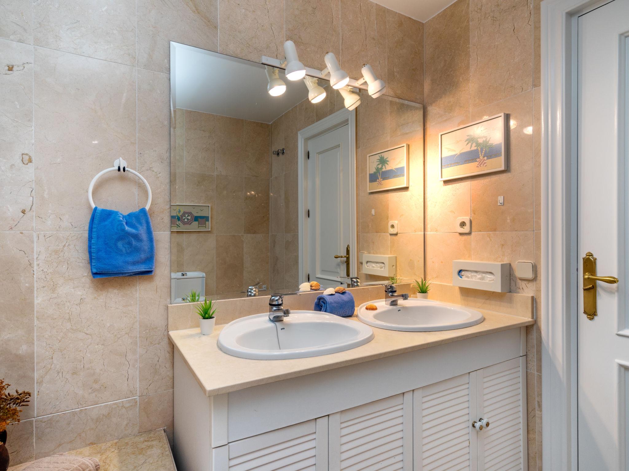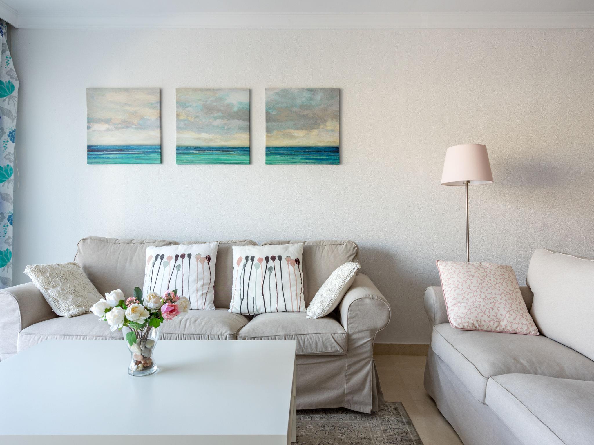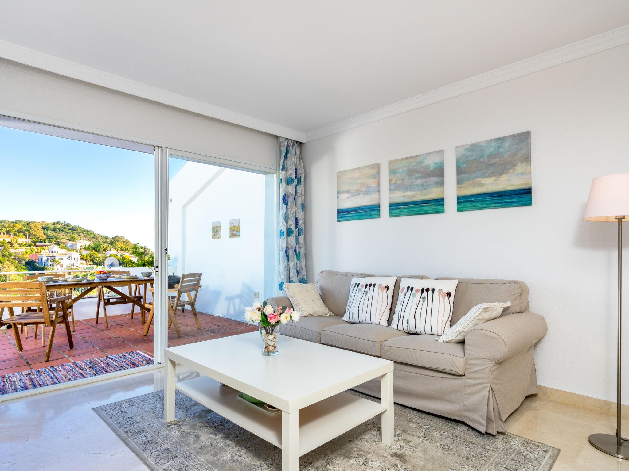 Apartment block "Mirador". 15 km from the centre of Marbella, outside the resort, 7 km from the centre of Puerto Banús, 6 km from the sea, on the golf course, east facing position. For shared use: garden with lawn, swimming pool (depth 80 - 210 cm, seasonal availability: 01.Jun. - 30.Sep.). In the house: central heating system, air conditioning, washing machine. Parking. Supermarket 4 km, restaurant 5 km, bus stop "El Salto" 2.1 km, sandy beach 6 km. Golf course (18 hole) 1 km. Please note: car recommended. Neighbourhood highly sensitive to noise. Quietness and good behaviour expected.
