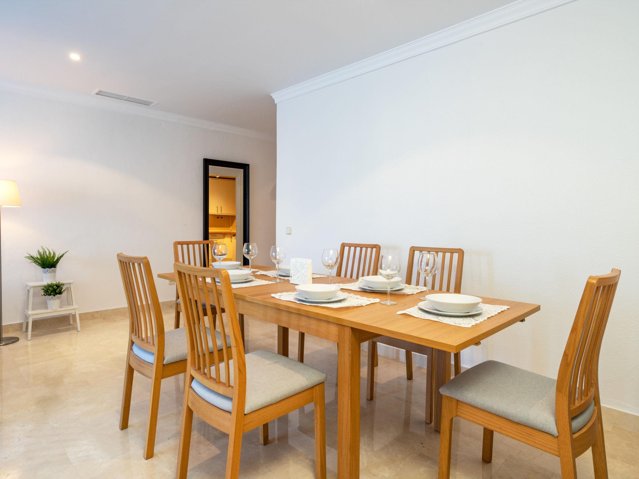 "Mirador II", 4-room apartment 113 m2 on 1st floor, east facing position. Comfortable and beautiful furnishings: living/dining room with digital TV and DVD. Exit to the terrace. 1 room with 1 french bed and bath/bidet/WC. 1 room with 2 beds (90 cm, length 200 cm). 1 room with 2 beds. Kitchen (oven, dishwasher, microwave, freezer). Shower/WC. Terrace 15 m2. Terrace furniture. Very beautiful view of the countryside and golf course. Facilities: washing machine. Internet (WiFi, free). Parking. Please note: non-smokers only. VUT/MA/30939 // Reg. Nr.: ESFCTU0000290420001144430000000000000000VUT/MA/309399