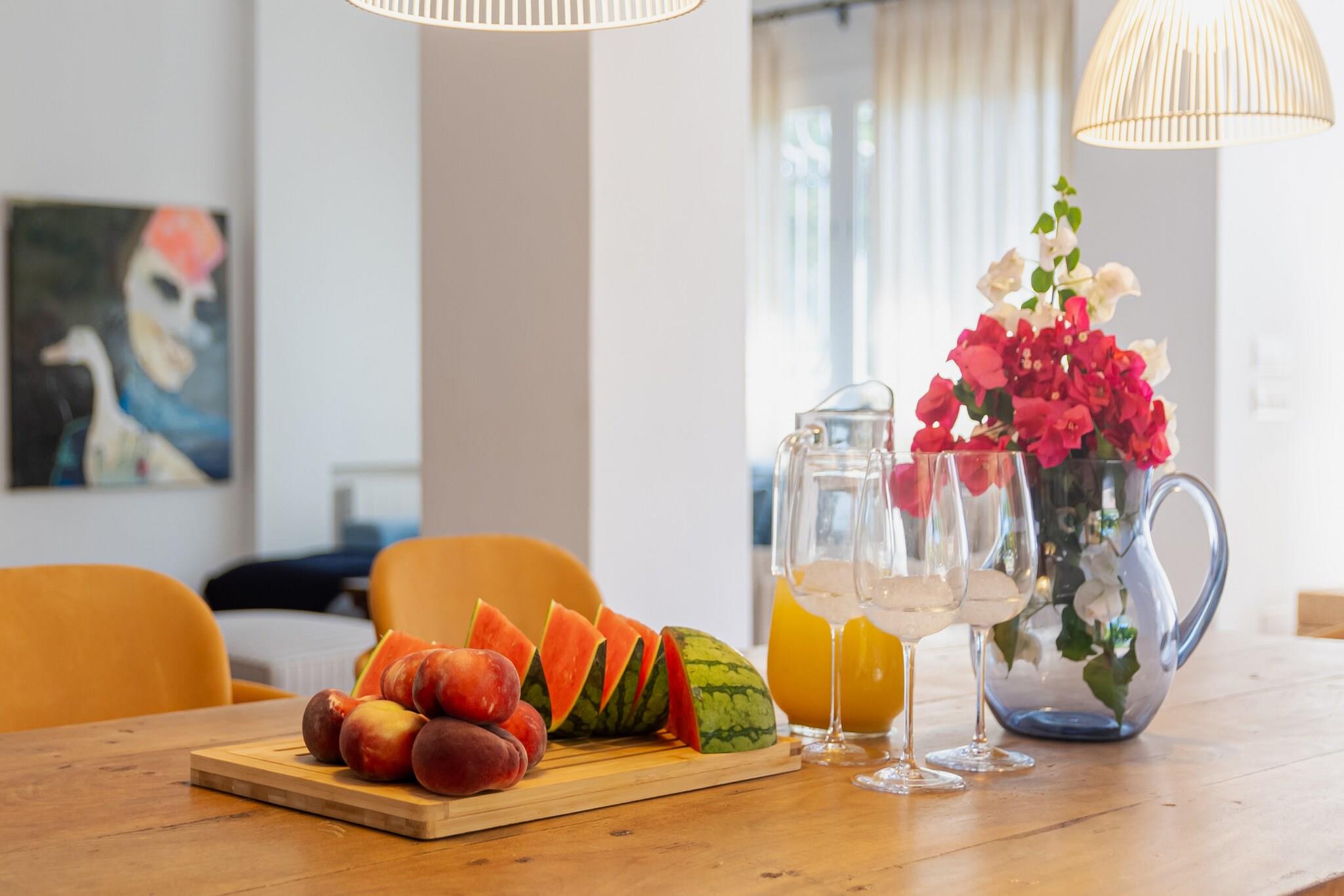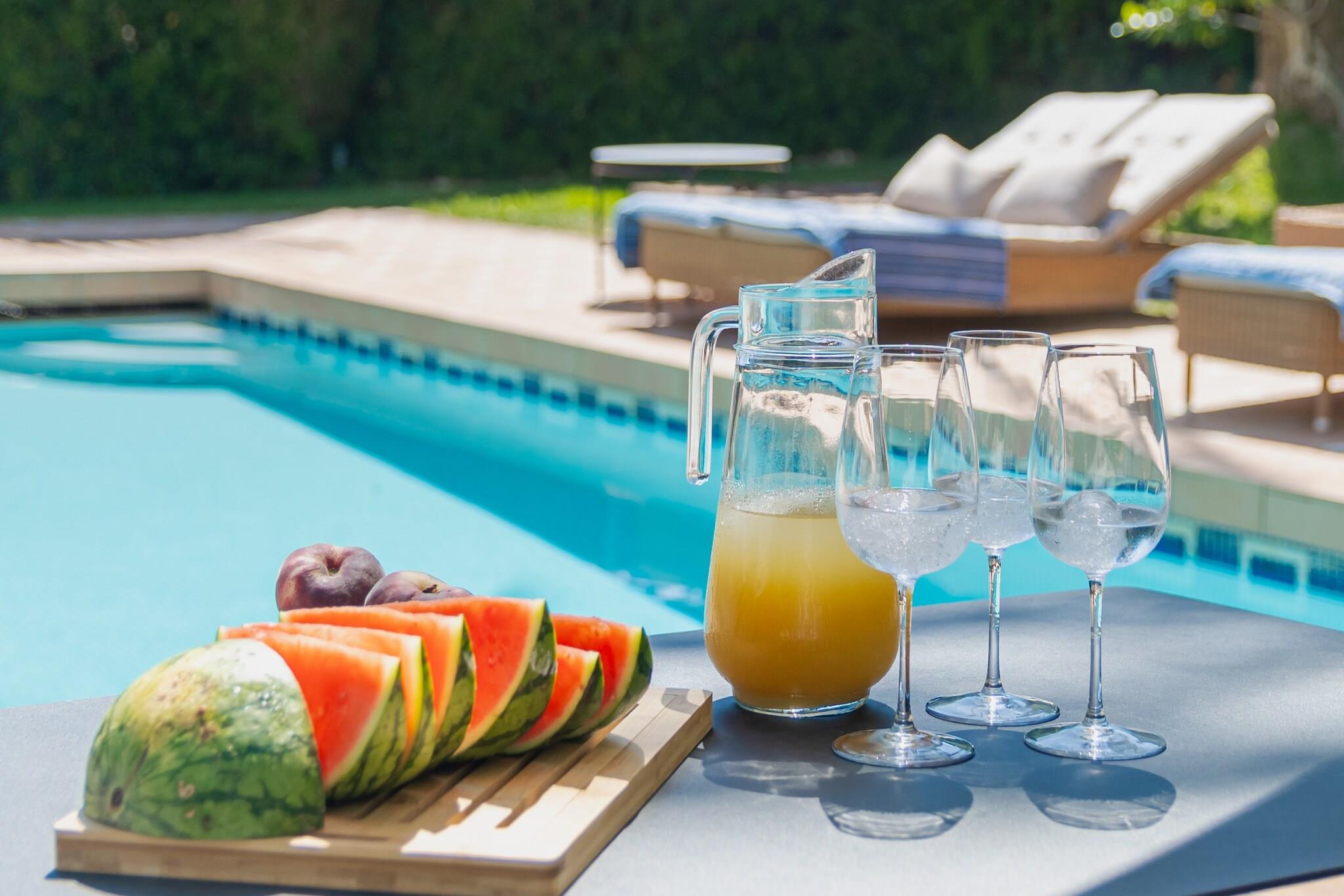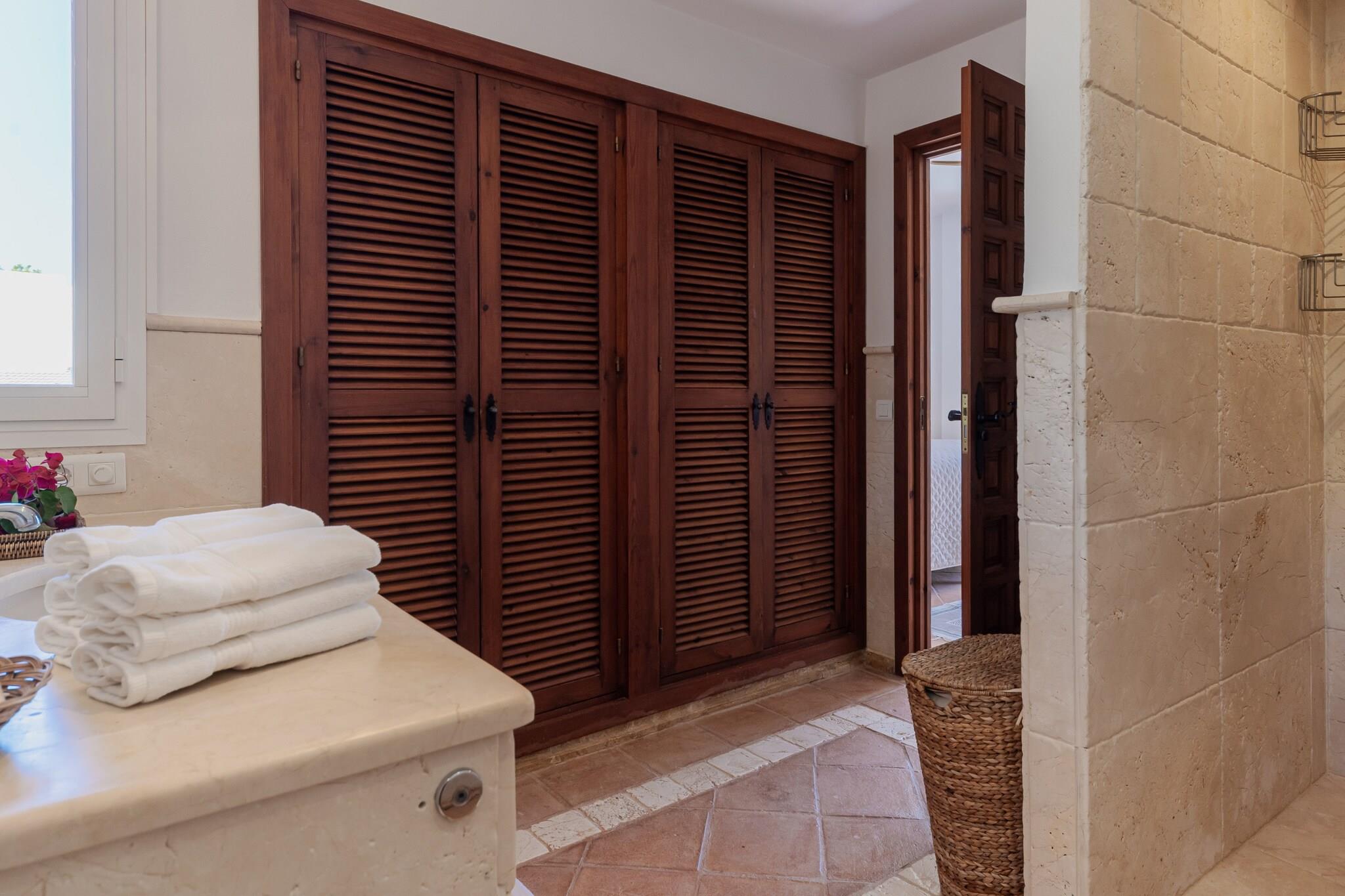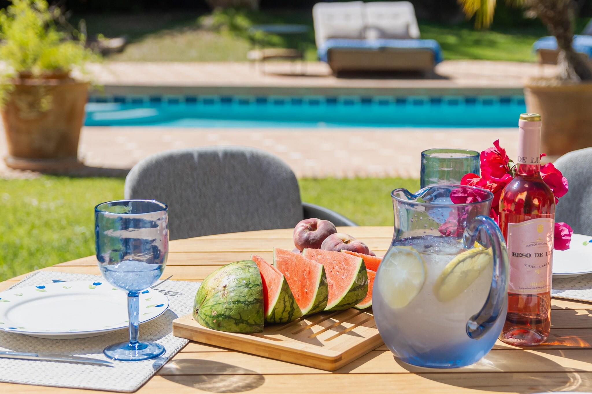 Stueetage: (åbent køkken(elkedel, brødrister, kaffemaskine, ovn, mikrobølgeovn, opvaskemaskine , køleskab, fryser, , ), stue / spisestue(Fjernsyn, spisebord, sofahjørne), soveværelse(dobbeltseng), Soveværelse med badeværelse(dobbeltseng, bruser, håndvask, toilet), badeværelse(bruser, håndvask, toilet)) På 1. etage: (soveværelse(enkeltseng, enkeltseng), soveværelse(enkeltseng), Soveværelse med badeværelse(dobbeltseng, bruser, håndvask, toilet), badeværelse(bruser, håndvask, toilet), toilet) , , , , , Internetadgang, Havemøbler, tørretumbler, vaskemaskine, varme, klimaanlæg, terrasse, have, solstole, parkering, swimmingpool(privat), strygejern, føntørrer, Alarm