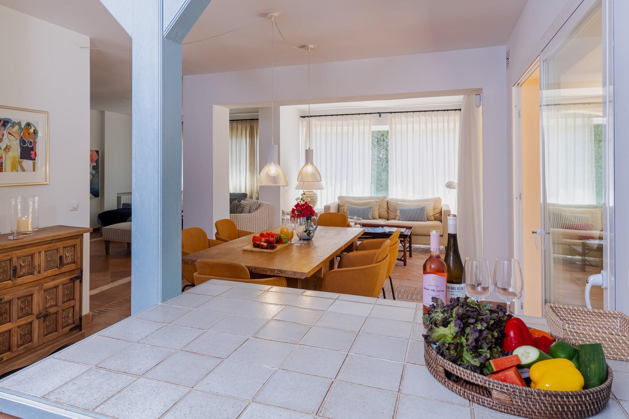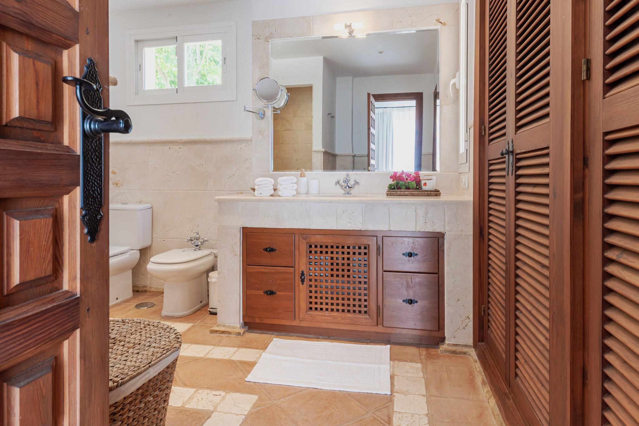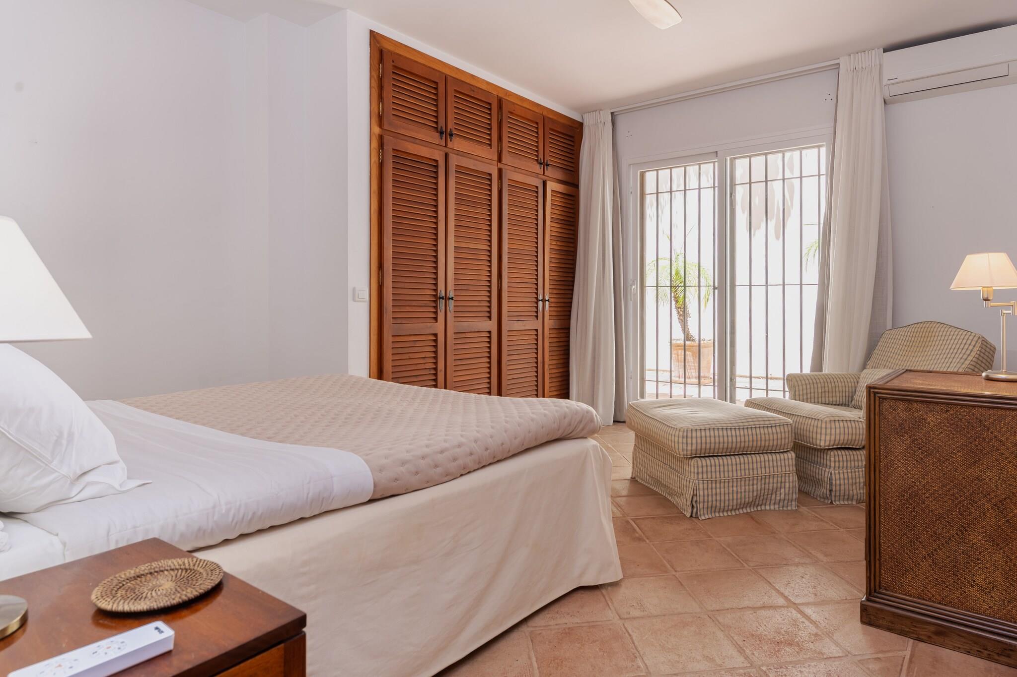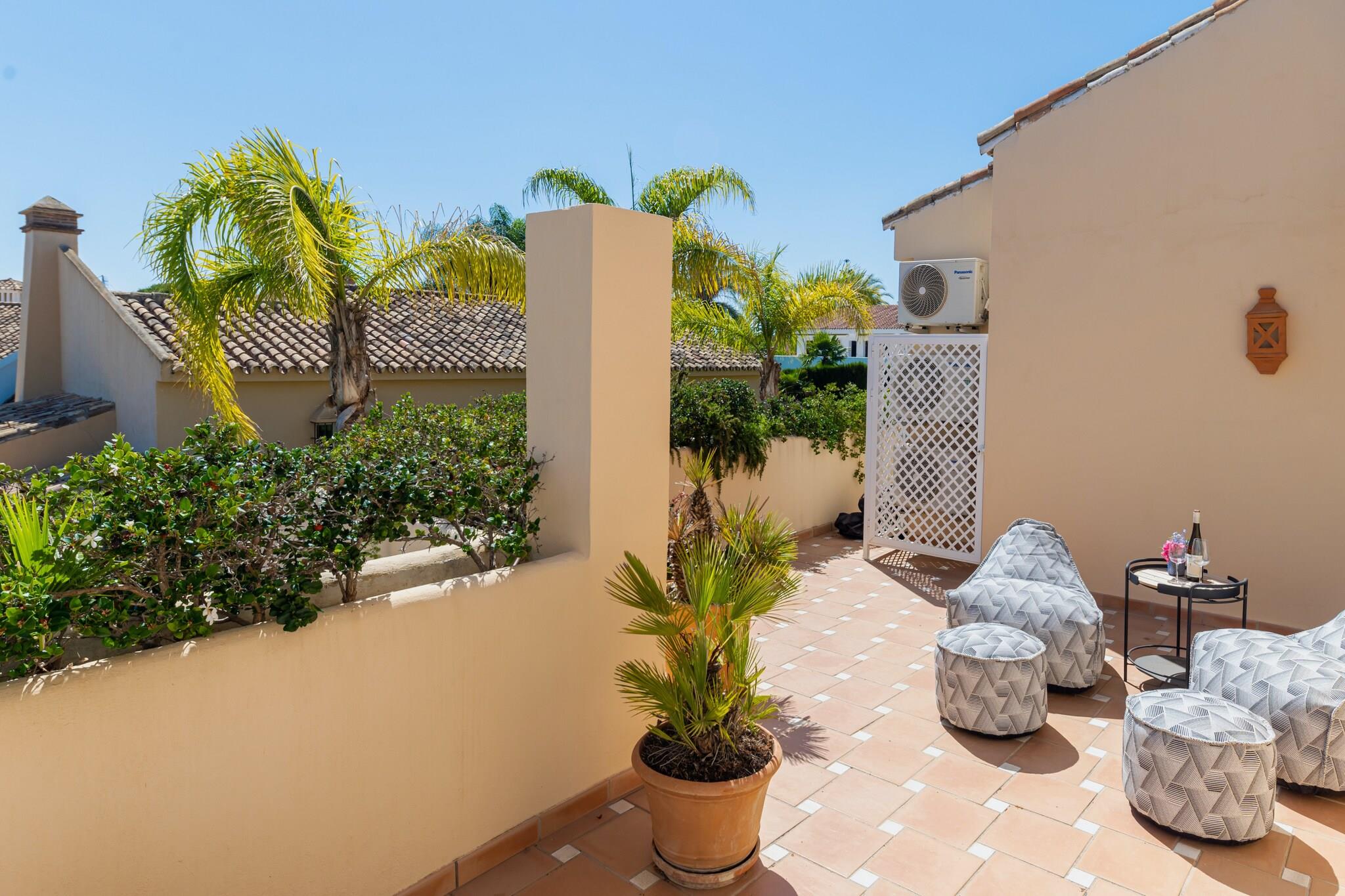 Træd ind i klassisk andalusisk charme i denne elegante villa beliggende i det eftertragtede Los Monteros-område i Marbella. Kun få minutter fra stranden og det berømte La Cabane Beach Resort tilbyder villaen en afslappet, men stilfuld beliggenhed tæt på Marbellas centrum, restauranter, butikker og fritidsfaciliteter langs Costa del Sol. Indvendigt har villaen plads til op til ni gæster fordelt på fem soveværelser. Stueetagen har et soveværelse med dobbeltseng og eget badeværelse. Ovenpå finder du to soveværelser med dobbeltsenge og moderne badeværelser, et soveværelse med to enkeltsenge og et ekstra soveværelse med en enkeltseng, der deler et funktionelt badeværelse. Stue- og spiseområdet nedenunder byder på komfortable siddepladser, et tv og et spisebord til fælles måltider. Et veludstyret køkken gør det nemt at lave mad hver dag, mens WiFi, aircondition, varme, vaskemaskine og tørretumbler gør opholdet endnu mere bekvemt. Udenfor åbner villaen ud mod en rummelig terrasse, der fører til en privat have designet til afslappet middelhavsliv. Den private swimmingpool og de omkringliggende liggestole skaber et indbydende rum til solrige eftermiddage, mens udendørs sidde- og spiseområder giver gæsterne mulighed for at nyde måltider eller aften drinks i det varme klima i Marbella. Der er parkering til rådighed på ejendommen. Los Monteros er et af Marbellas mest eftertragtede boligområder, kendt for sine smukke strande og afslappede atmosfære. Villaen ligger kun en kort køretur fra Marbellas livlige gamle bydel, strandklubber og golfbaner, hvilket gør den til et fremragende udgangspunkt for at udforske Costa del Sol.
