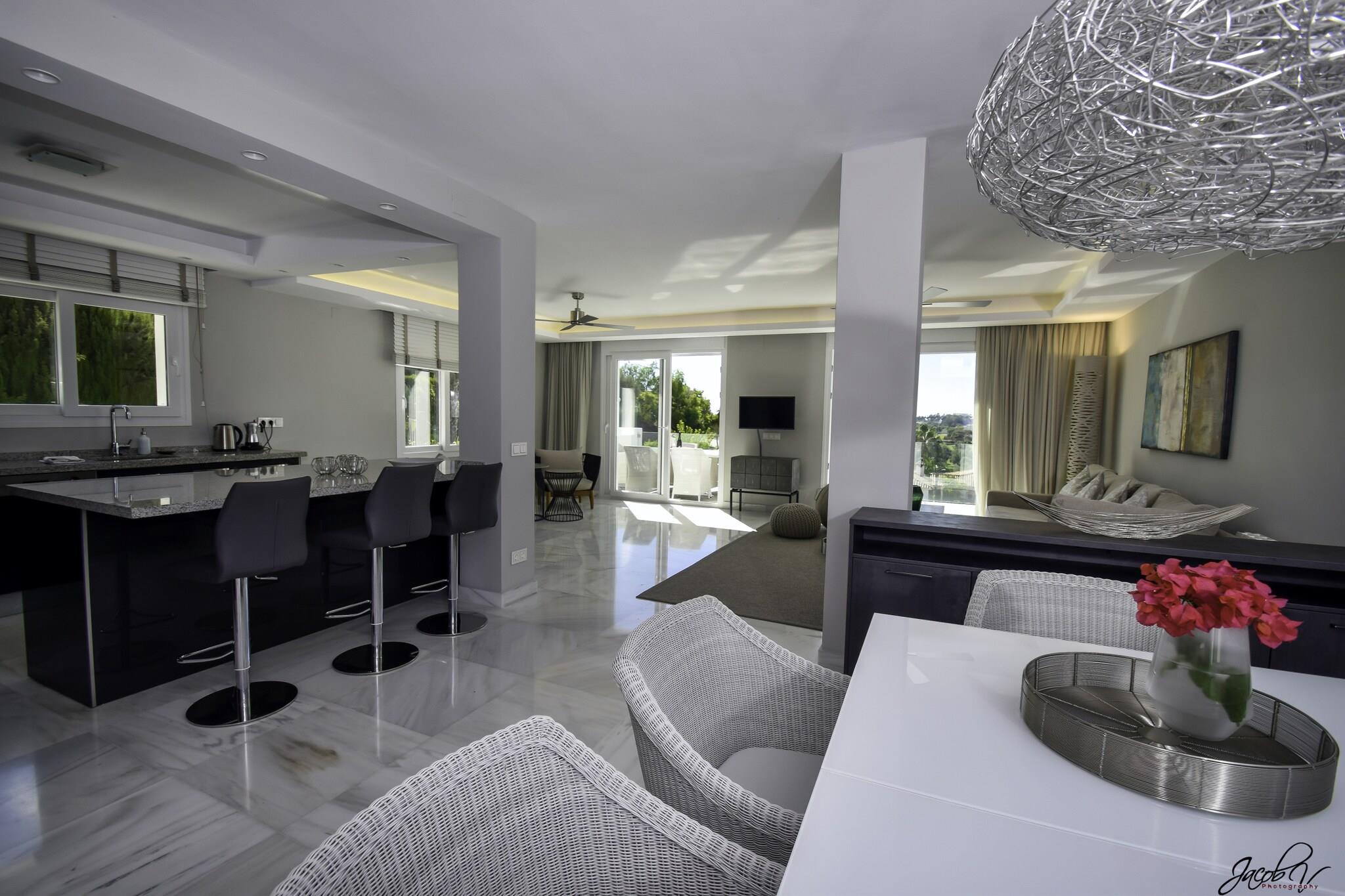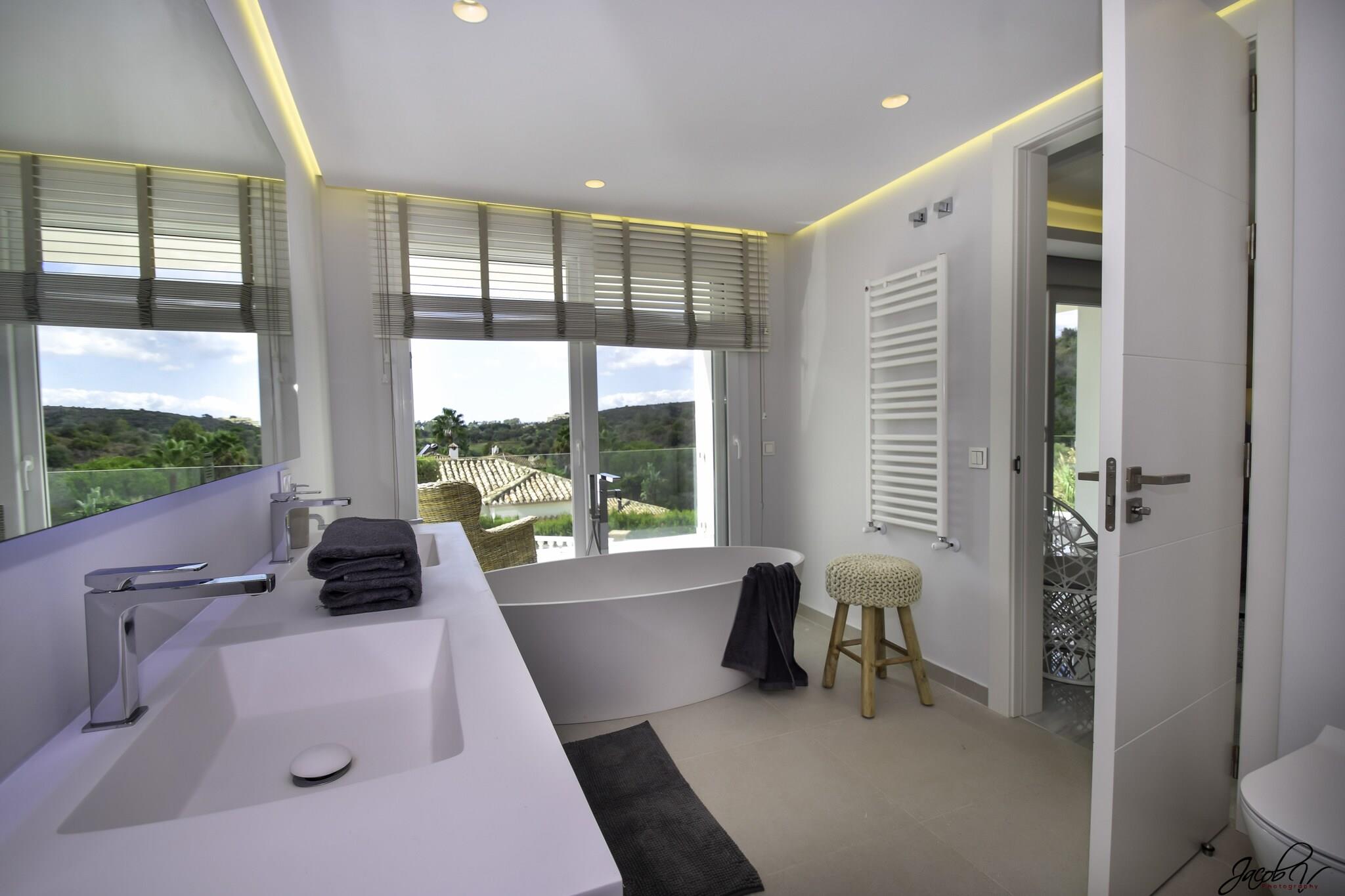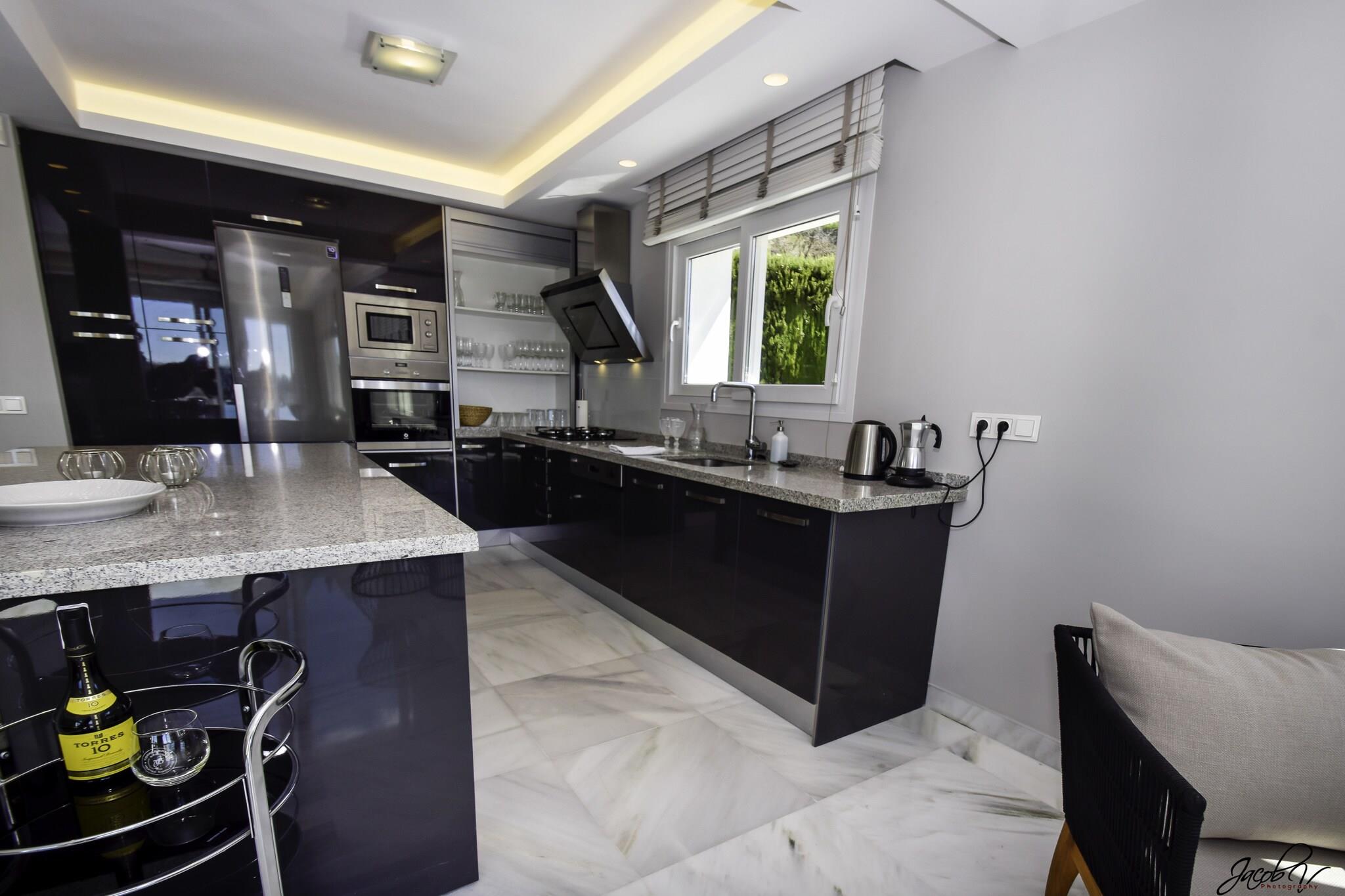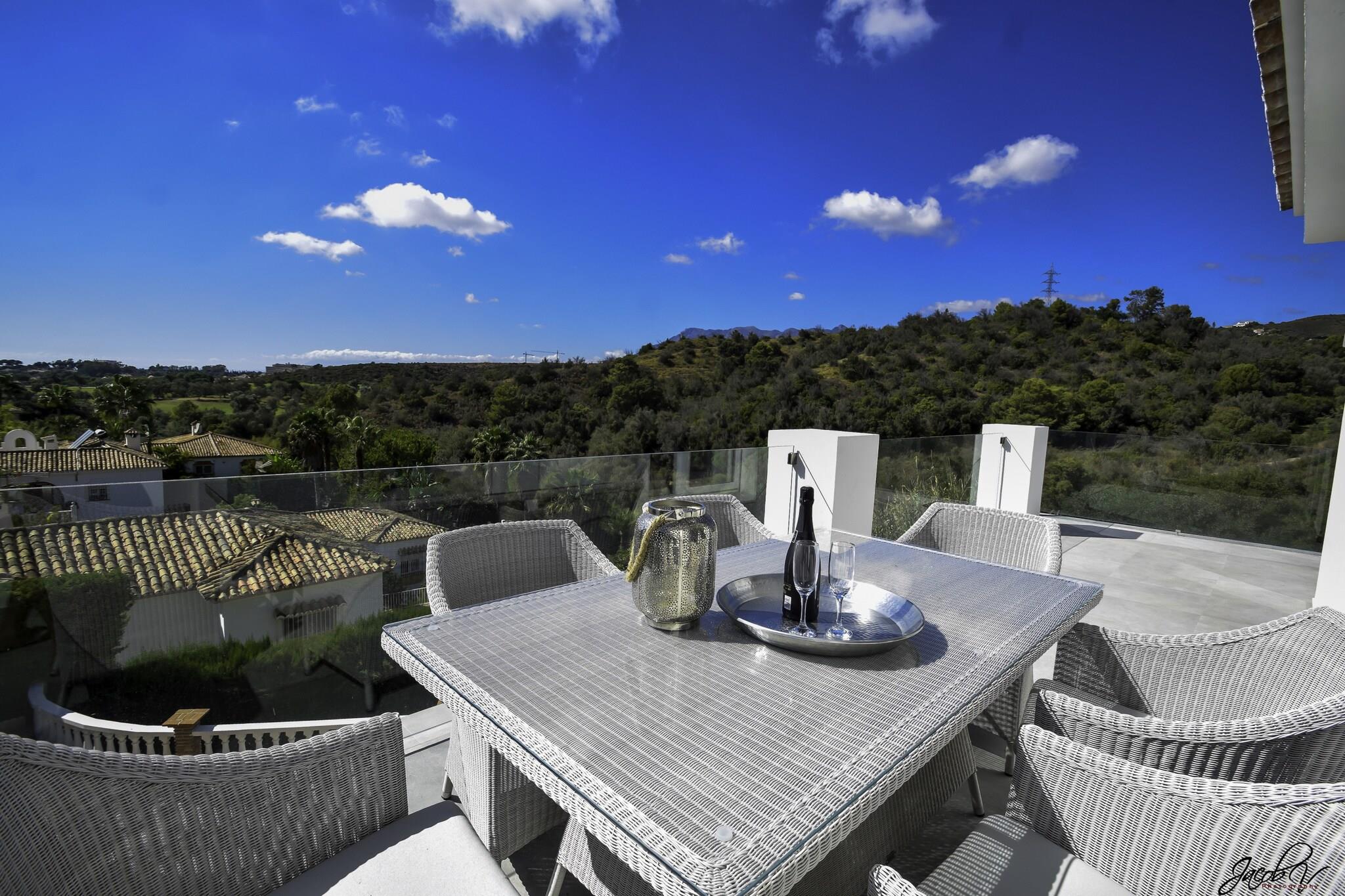 Beliggende i et fredeligt boligområde kun en kort køretur fra Marbellas kystlinje tilbyder denne stilfulde villa et indbydende fristed for op til otte gæster, der ønsker at kombinere livet ved kysten med privat afslapning på Spaniens Costa del Sol. Med moderne interiør, flere terrasser og malerisk havudsigt er det et fremragende valg for familier eller grupper, der søger en rolig base tæt på strande, golf, spisesteder og kulturelle attraktioner. Indvendigt har villaen fire velindrettede soveværelser, der er indrettet til fleksible gruppeophold. Den sydvendte master-suite har en dobbeltseng, eget badeværelse og adgang til altan, mens de øvrige soveværelser er indrettet med en blanding af dobbeltsenge og enkeltsenge, der passer til familier og venner, der rejser sammen. To ekstra badeværelser med toiletter gør hverdagen nemmere, og det fuldt udstyrede køkken gør madlavningen nem under hele opholdet. Der er vaskemaskine og tørretumbler til rådighed ved længere ophold, og højhastigheds-WiFi sikrer, at du kan holde kontakten indendørs. Aircondition og gulvvarme sikrer komfort året rundt. Udenfor finder du en privat opvarmet swimmingpool omgivet af liggestole og anlagte haver – et ideelt sted til afslapning, samvær og til at nyde Middelhavssolen. Flere terrasser, herunder et overdækket udendørs spiseområde og en grill ved poolen, indbyder til måltider i det fri og sammenkomster ved solnedgang, mens panoramaudsigten over havet tilbyder en fredfyldt kulisse til dine dage. Beliggende inden for køreafstand af Marbellas gamle bydel, strande, strandklubber og naturskønne kystvandringer, giver denne rolige villa året rundt adgang til solbeskinnede kyster, golfbaner og alt, hvad Costa del Sol har at byde på.