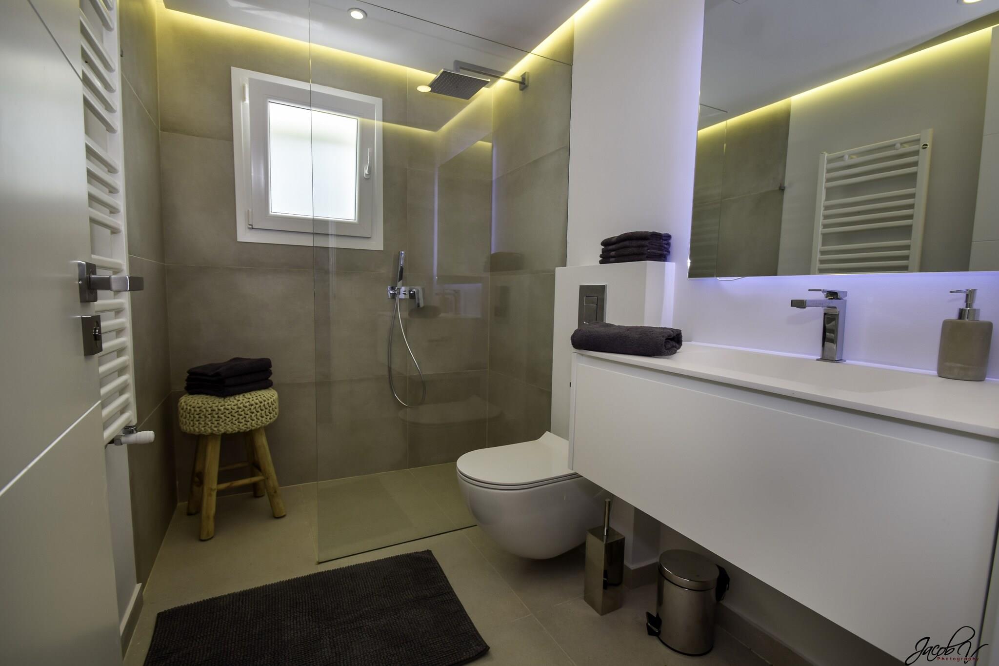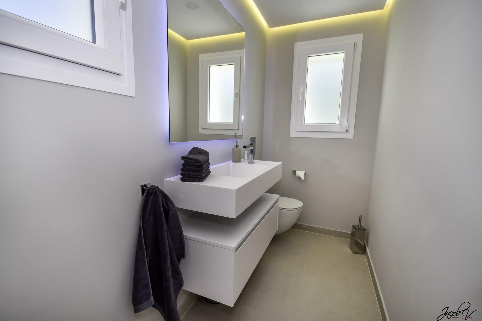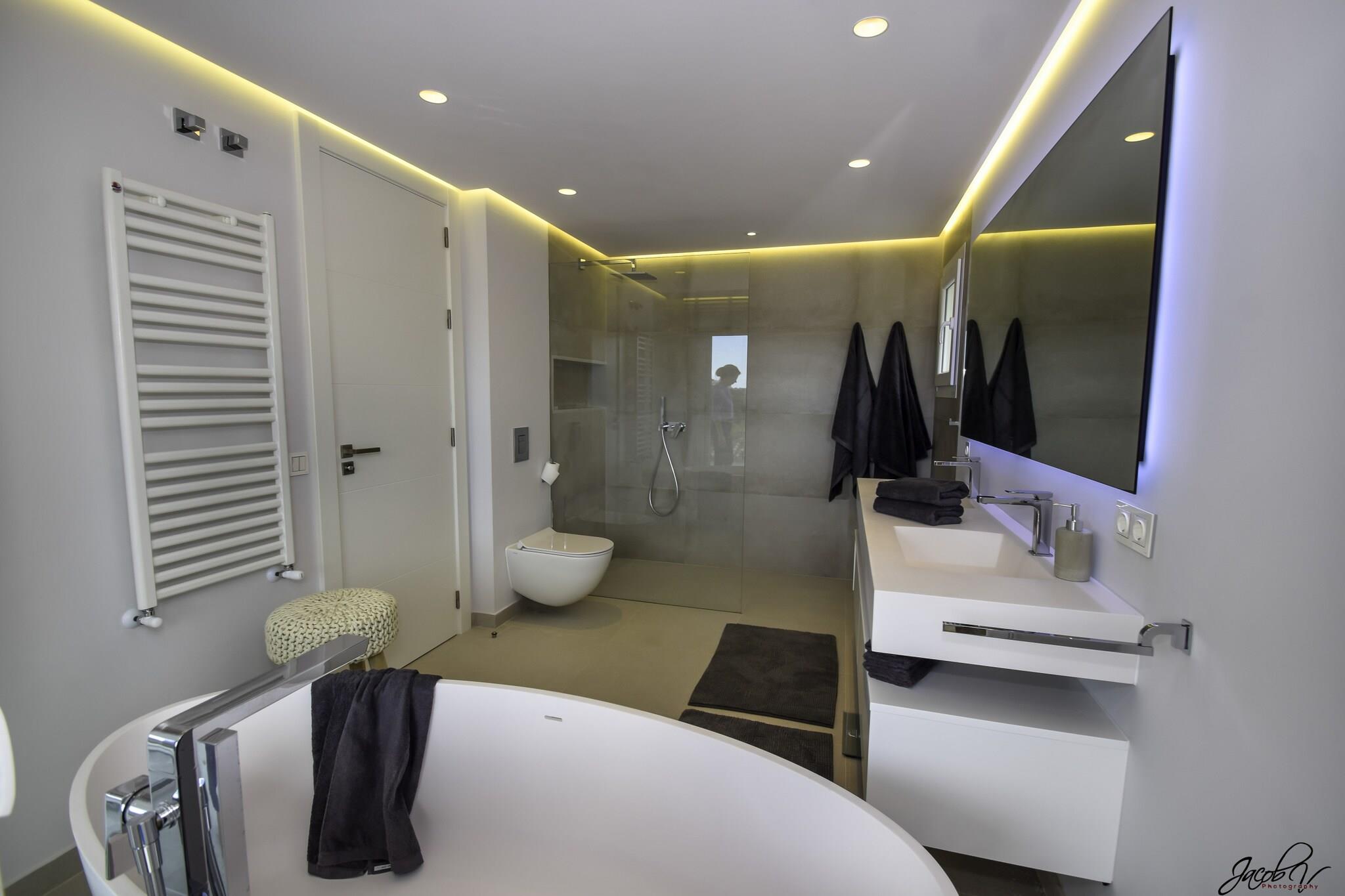 Stueetage: (soveværelse(dobbeltseng), soveværelse(enkeltseng, enkeltseng), Soveværelse med badeværelse(dobbeltseng, badekar, bruser, håndvask, toilet), badeværelse(bruser, håndvask, toilet, føntørrer)) På 1. etage: (åbent køkken(kogeplade(gas), elkedel, brødrister, kaffemaskine, ovn, mikrobølgeovn, opvaskemaskine , køle-fryseskab, , ), stue / spisestue(Fjernsyn(fladskærm, Internationale TV-kanaler), spisebord, sofahjørne), Soveværelse med badeværelse(dobbeltseng, bruser, håndvask, toilet)) Internetadgang, Havemøbler, tørretumbler, tørretumbler, tremmeseng, vaskemaskine, varme, klimaanlæg, terrasse, have, solstole, grill, parkering, swimmingpool(privat), tennisbane, padelbane, barnestol, strygejern, Alarm