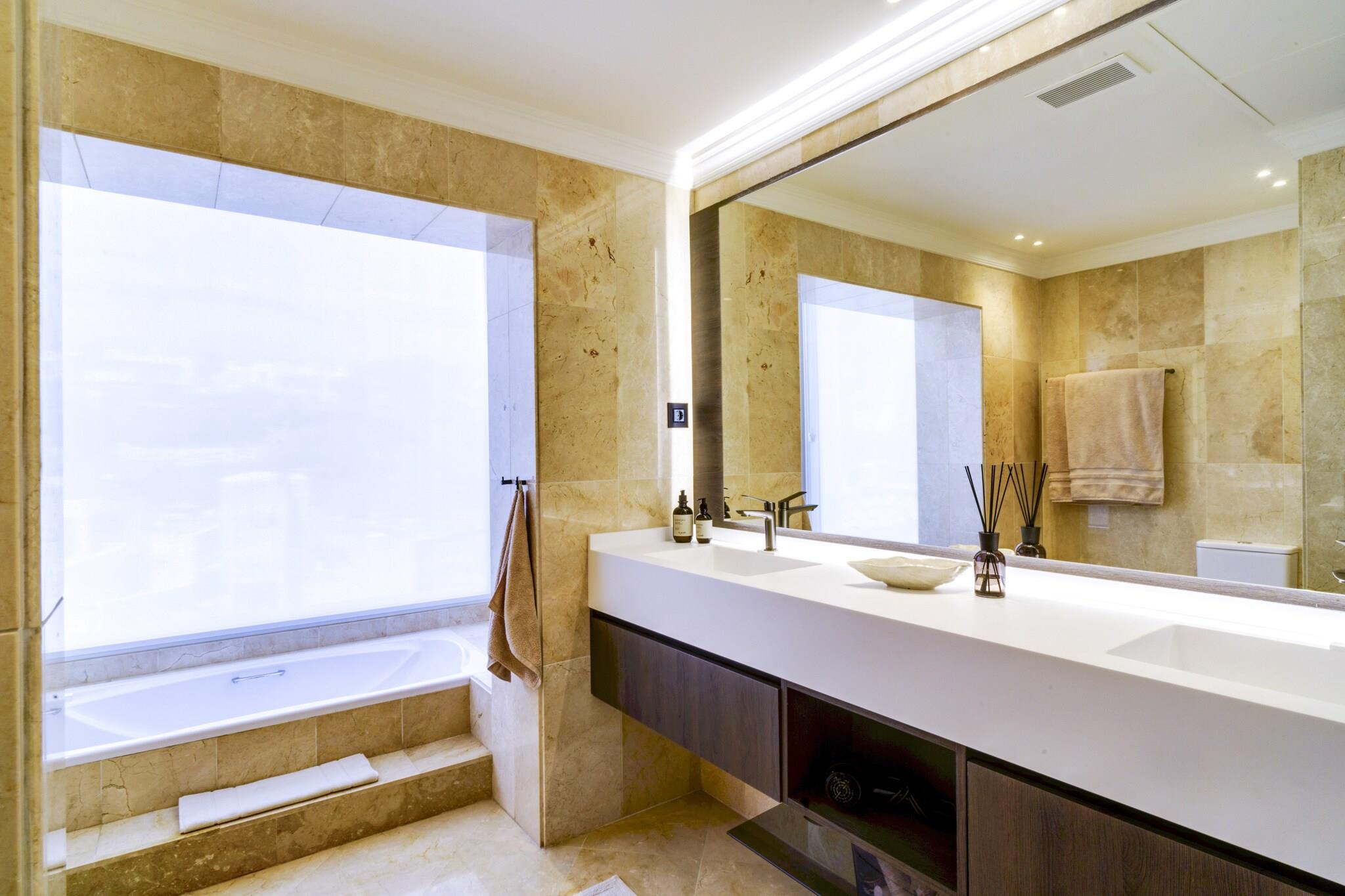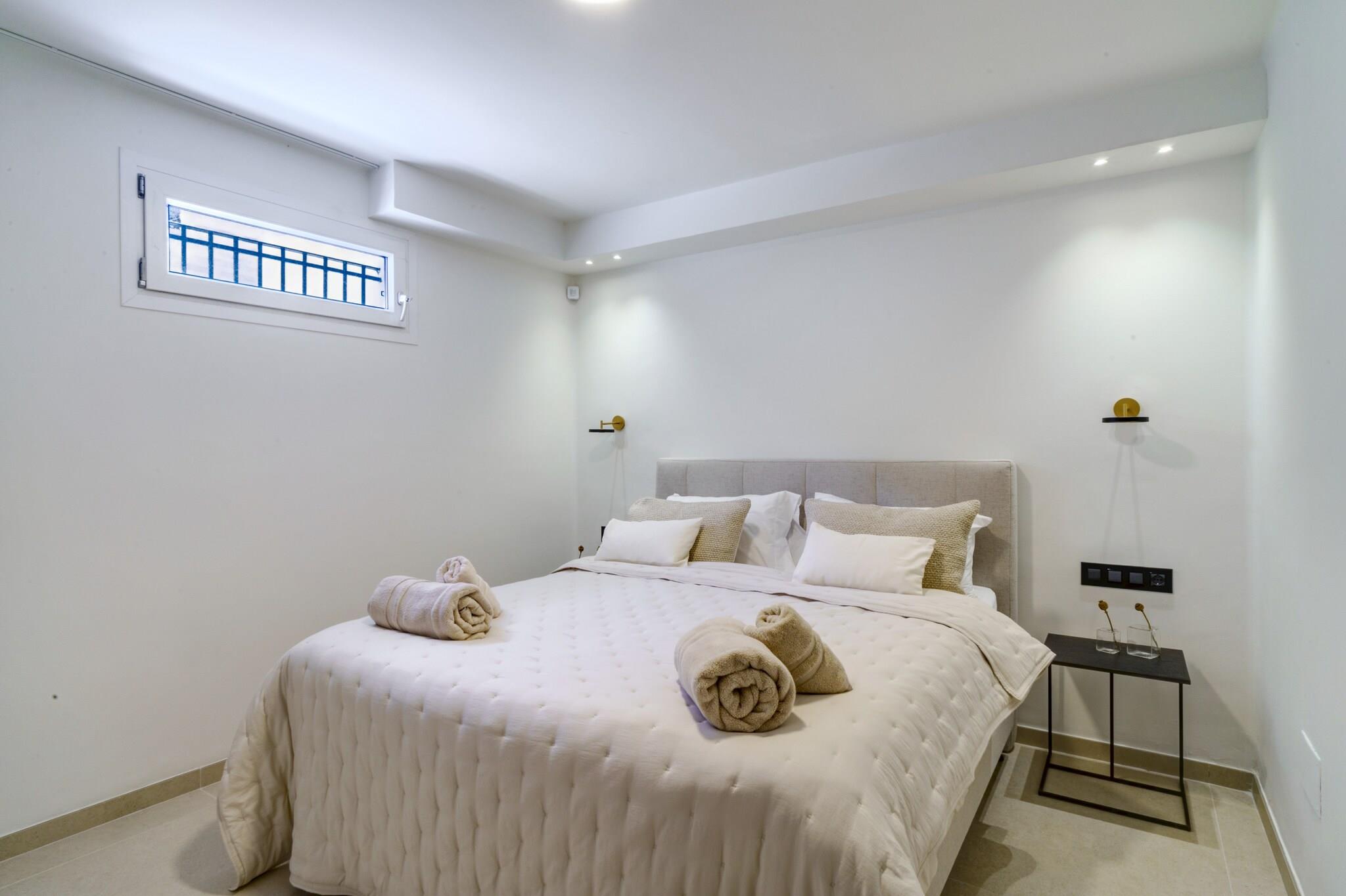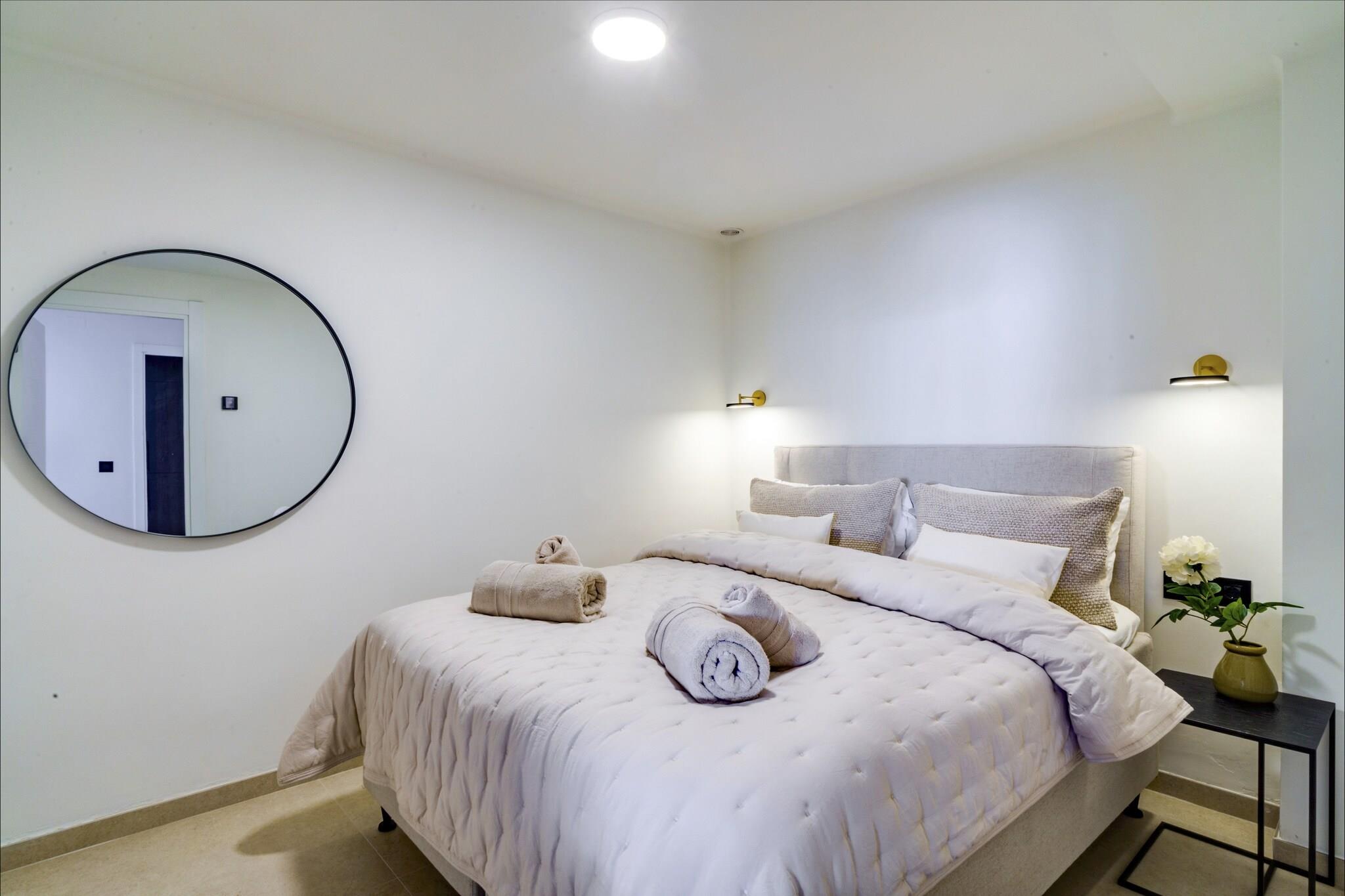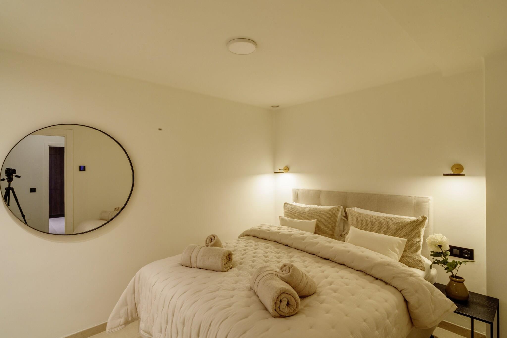 Beliggende i Marbellas eftertragtede kystområde tilbyder denne rummelige villa et luksuriøst privat tilflugtssted for op til tolv gæster, der søger komfort, privatliv og afslapning på Spaniens Costa del Sol. Ejendommen er indrettet over tre etager med elevatoradgang og udgør en ideel ramme for familieferier eller grupperejser med bekvem adgang til strande, golfbaner og lokale faciliteter. Indvendigt har villaen seks rummelige soveværelser fordelt på forskellige etager for at sikre fleksibel indkvartering af grupper. Et soveværelse med eget badeværelse ligger i stueetagen ved siden af den åbne stue og det fuldt udstyrede køkken, mens anden sal rummer yderligere tre soveværelser med direkte adgang til terrassen. Kælderen indeholder yderligere to soveværelser samt et dedikeret spa-område. Fire badeværelser og et separat gæstetoilet sikrer daglig komfort, mens det moderne køkken gør det nemt at lave mad selv under hele opholdet. Der er også gulvvarme, hvilket sikrer indendørs komfort i de koldere måneder. Gæsterne kan træde ud på flere terrasser med udsigt over den anlagte have og den private swimmingpool. Et rummeligt udendørs spiseområde med plads til op til tolv personer og en gasgrill skaber de ideelle rammer for måltider i det fri. Tagterrassen har et lounge- og barområde samt en udendørs jacuzzi og byder på uhindret udsigt over Middelhavet og de omkringliggende bjerge. Denne villa ligger inden for køreafstand af Marbellas strande, golfklubber og marina og byder året rundt på muligheder for afslapning ved havet og udforskning af Costa del Sols naturlandskaber og kulturelle attraktioner.