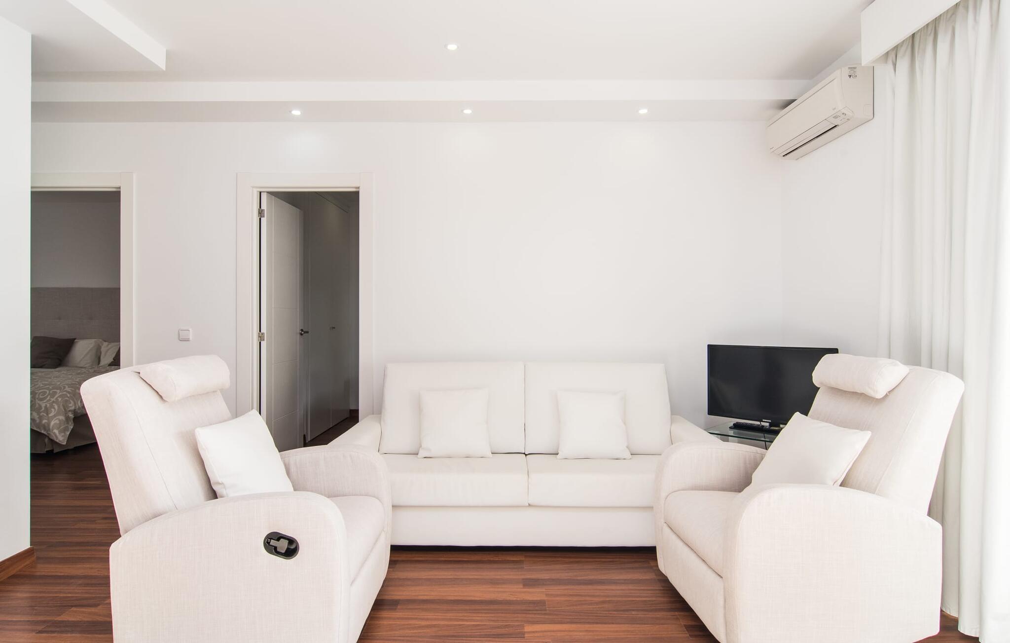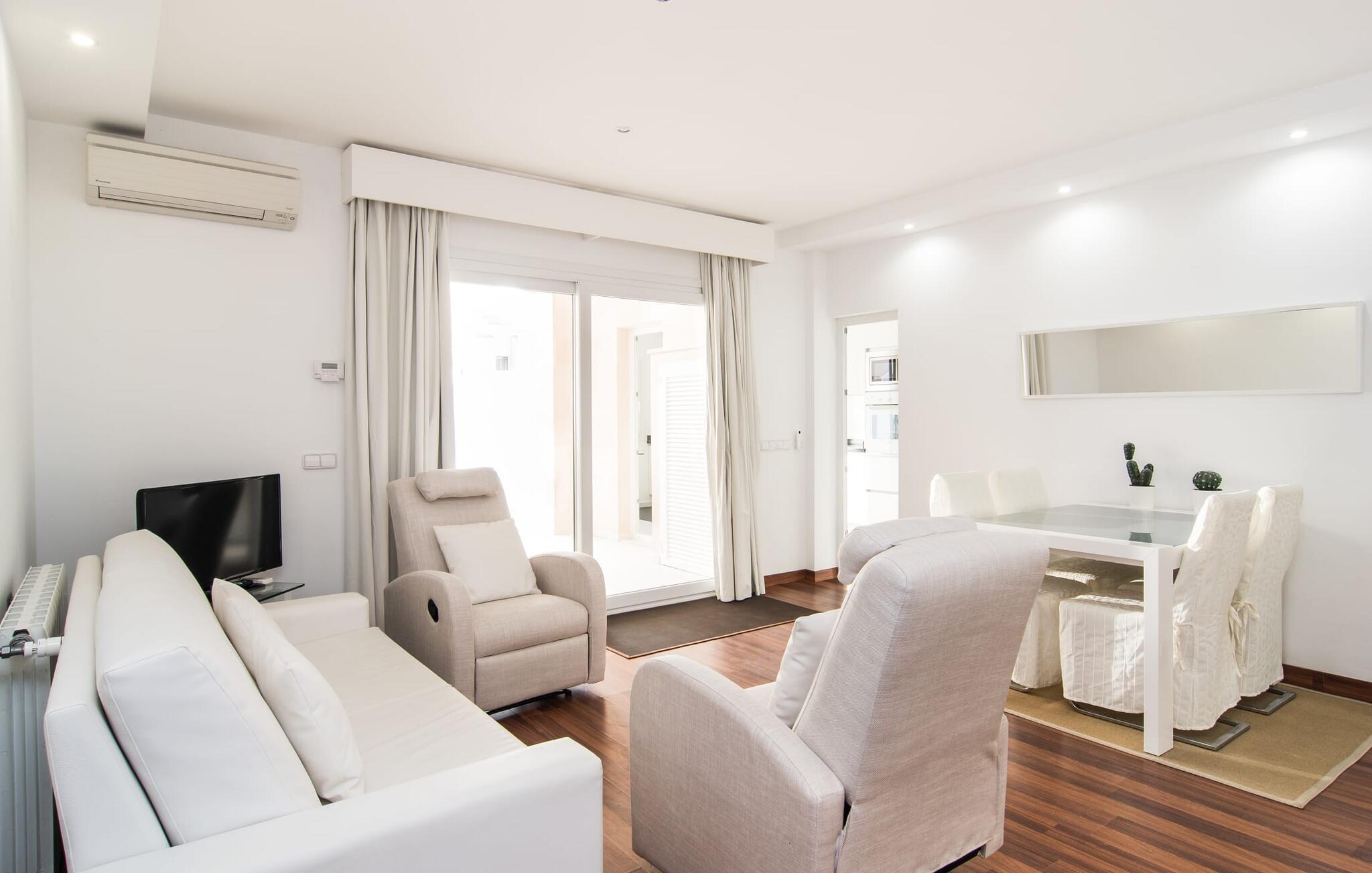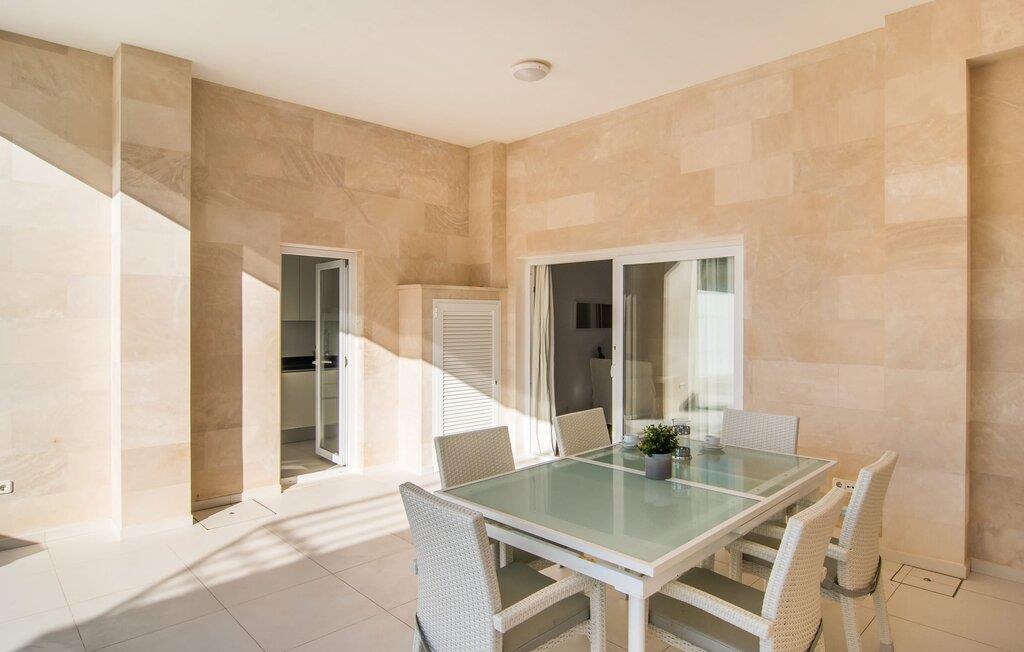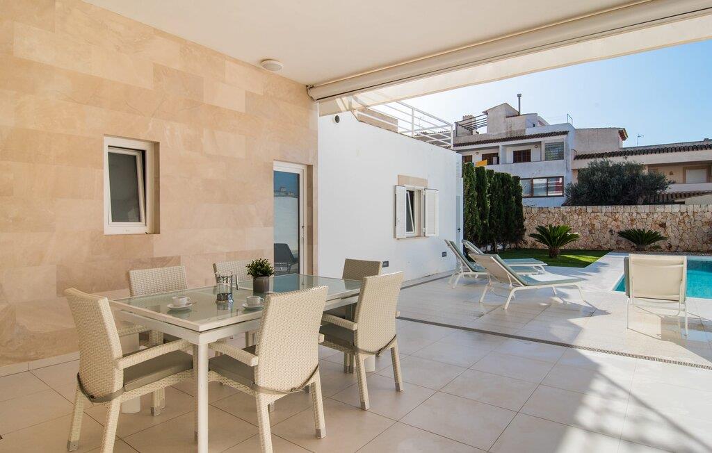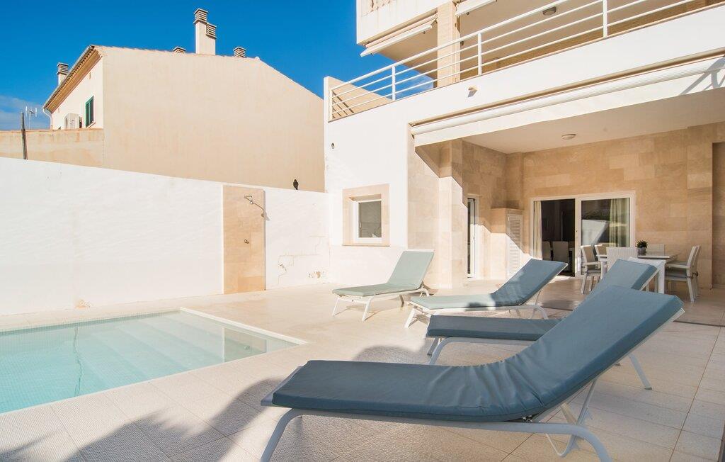 Bag etagehusets ret uanselige facade med topbeliggenhed, kun få hundrede meter fra havnen og havnestranden, er der en moderne, puristisk 3-værelses stuelejlighed med parkering på gaden. Ikke givet for en bybolig åbner "Marieta Bajos" sig ud mod bagsiden og byder på en afslapningsoase midt i kvarteret: Omgivet af mure, med et lille grønt område og en terrasse beskyttet af næste etage, højdepunktet her er en 10 m lang pool. Gæsterne kan nemt skifte frem og tilbage mellem stranden og "hjemmevandet" og kan opdeles som de vil og gå deres egen vej. I løbet af grillaftenen er der ingen, der kigger på jeres tallerken fra oven i jeres friluftsniche med direkte forbindelse til køkkenet, og en eller to liggestole får også plads i skyggen ved siden af ??spisebordet.
