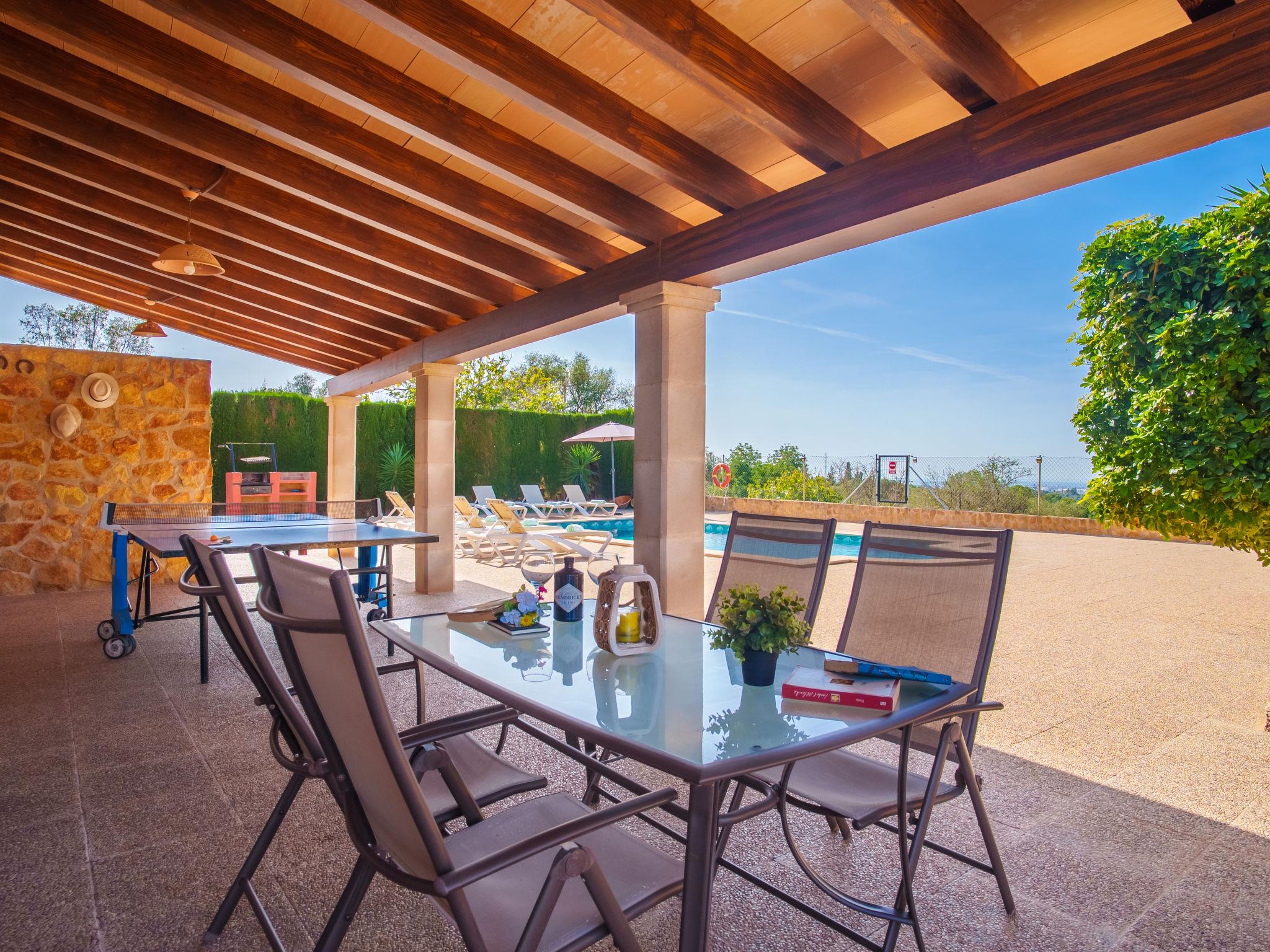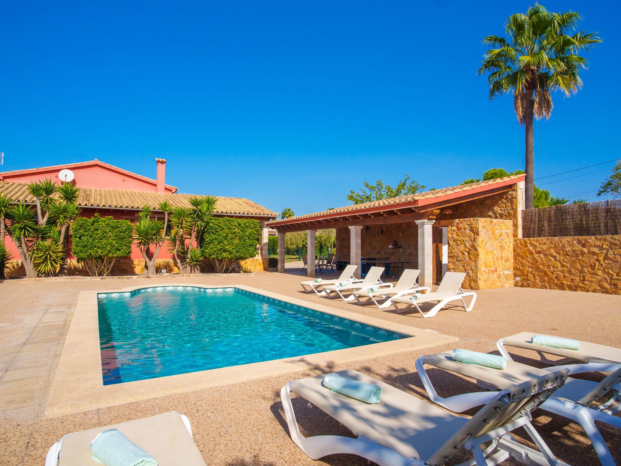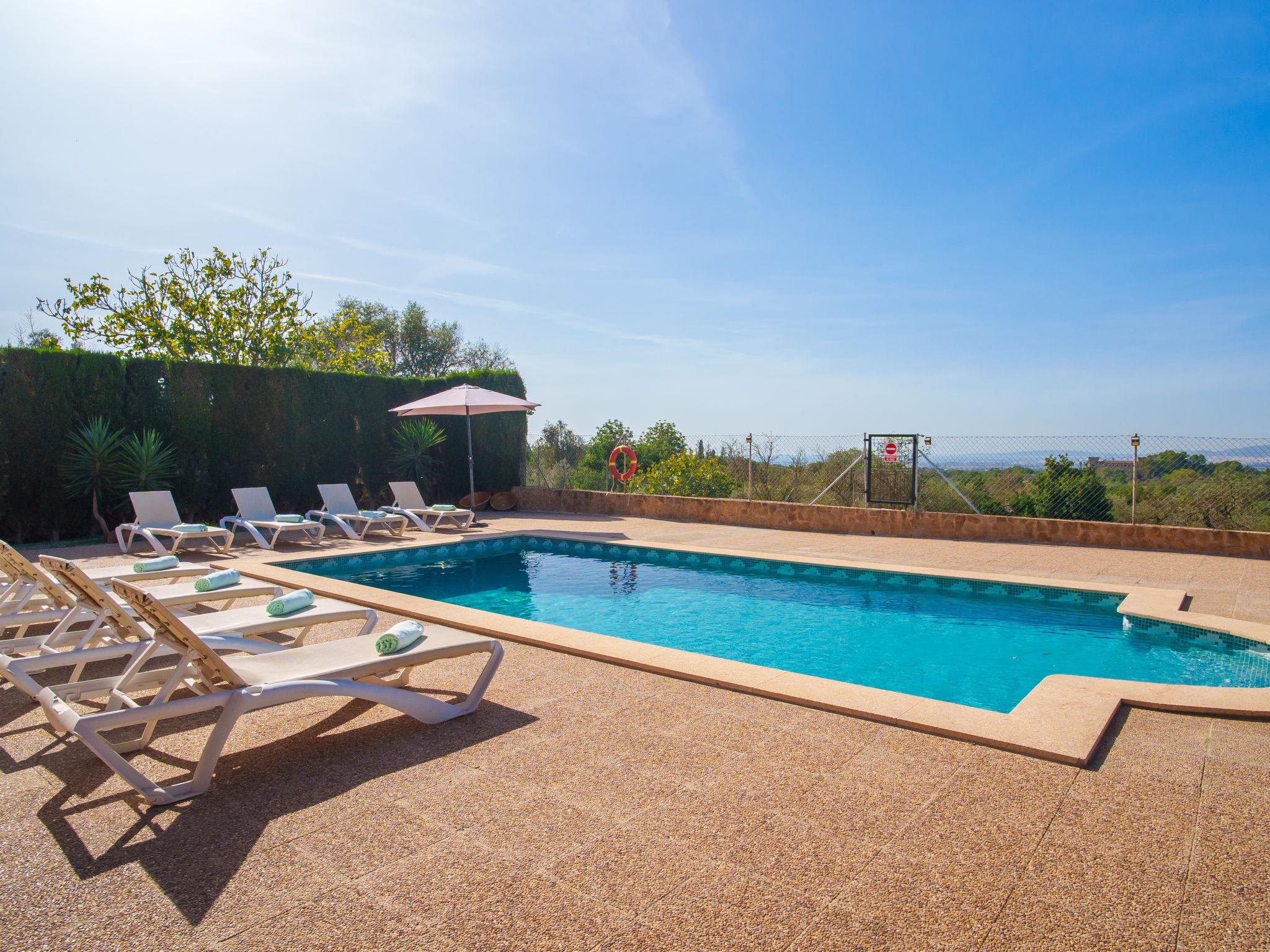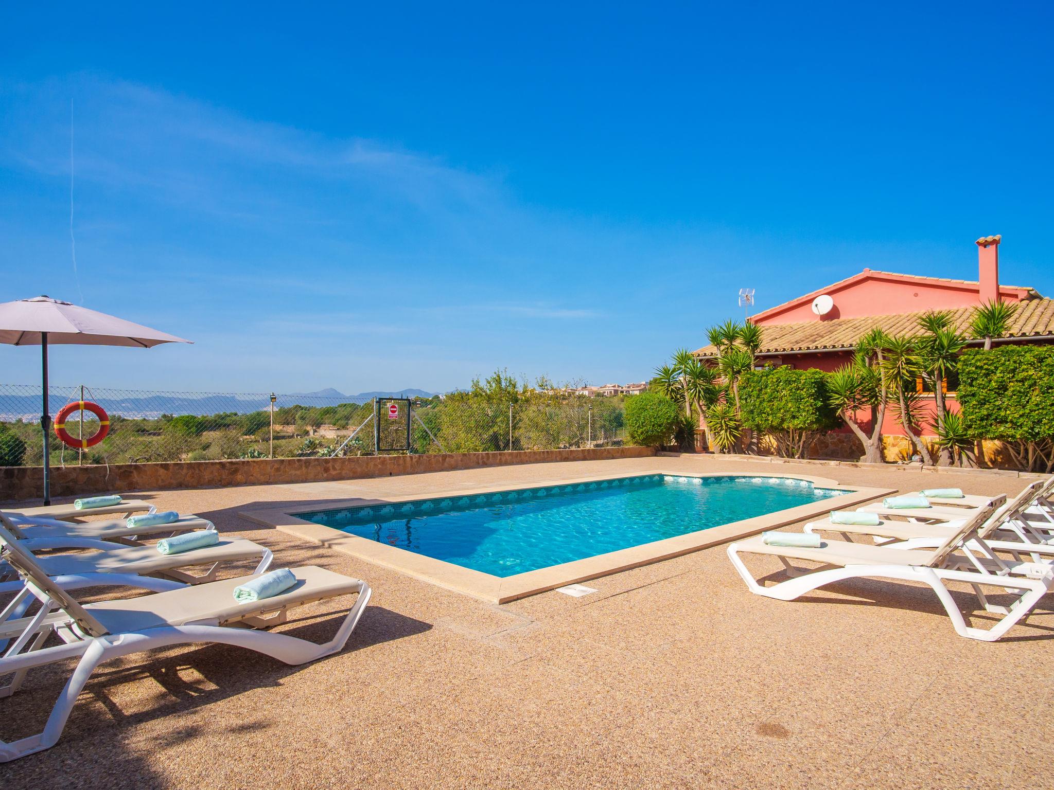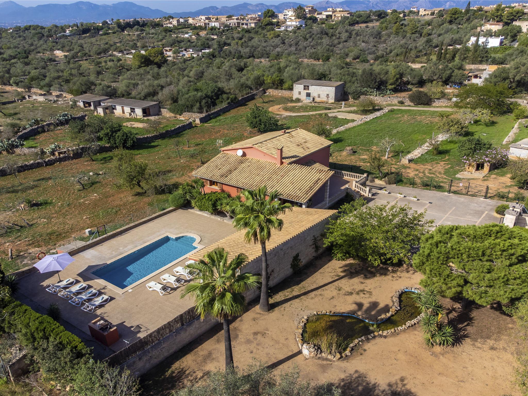 Pòrtol: Beautiful, cosy villa "Sa Tanca", surrounded by trees and fields. In the resort Pòrtol (Sa Cabaneta), in a sunny position residential area (villas), 20 km from the sea. Private: large, well-kept terraced garden (fenced), courtyard, pond, swimming pool angular (8 x 4 m, seasonal availability: 01.Jan. - 31.Dec.). Shower/WC in the pool area, table tennis, patio, arbour, pergola, garden furniture, barbecue. In the house: internet access, WiFi, air conditioning, washing machine. Parking at the house on the premises. Shop 1 km, grocery 8 km, supermarket 1 km, bar 1.2 km, bakery 1.5 km, pub garden 1.2 km, bus stop 1.2 km, sandy beach "Playa de Palma" 20 km pebble beach "Puerto de Sóller" 30 km. Marina 22 km, sailing school 22 km. Nearby attractions: Mallorca Fashion Outlet - Cinema, Marratxí, Palma. Santa María, Santa Eugenia. Please note: car recommended. Suitable for families, suitable for seniors baby equipment on request (included). Object suitable for 8 adults groups of teenagers on request only. The owner does not accept any youth groups. Loading and unloading of baggage is possible at the holiday house. Airfield 25 km from the property.