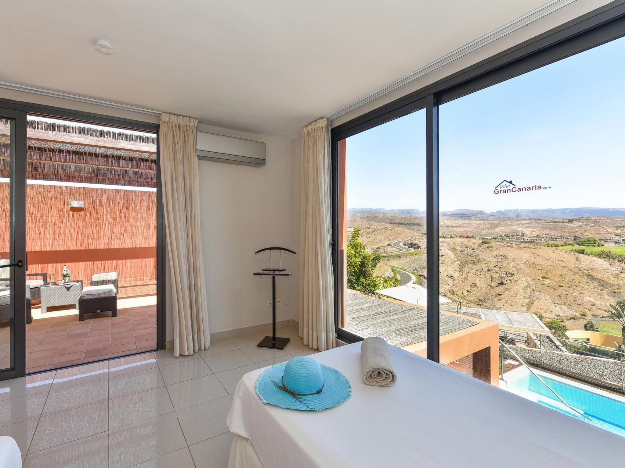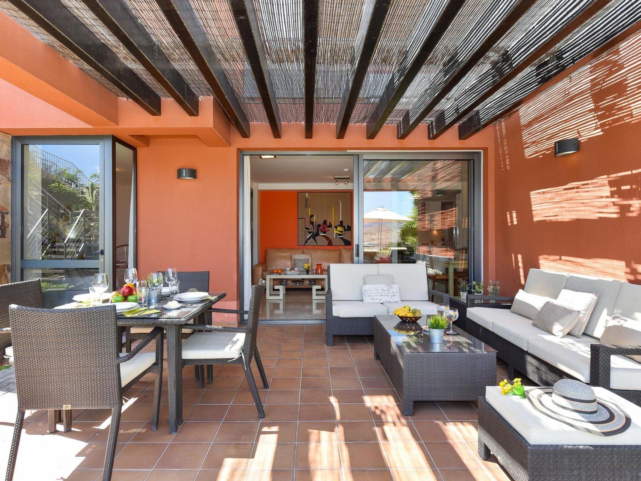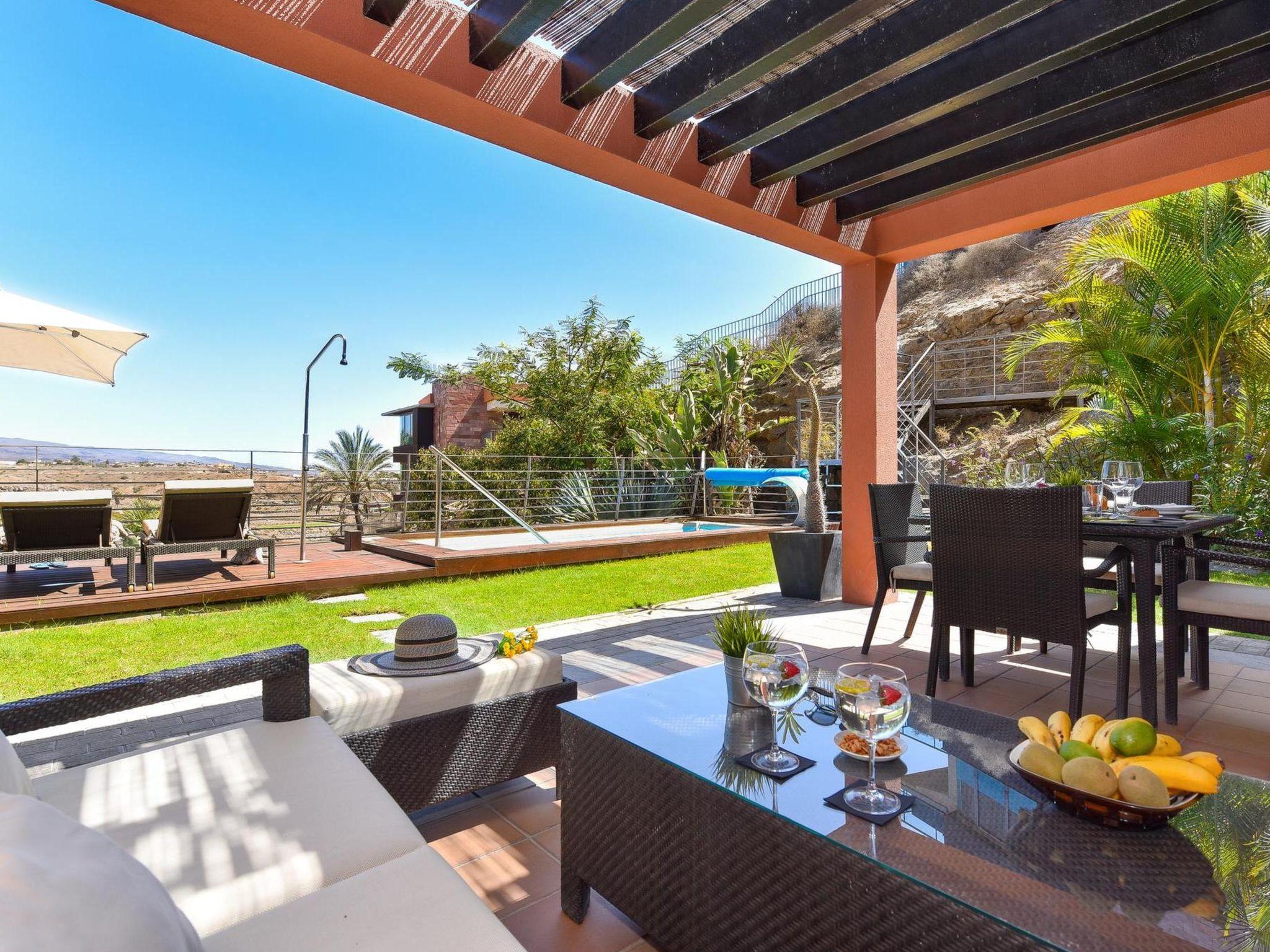 Modern, cosy, comfortable villa "Las Terrazas 6". In the centre of Salobre Golf Resort, on the outskirts Maspalomas, outside the resort Meloneras 7 km, in a sunny, elevated position on a slope, 8 km from the beach. Private: garden (fenced) with lawn, swimming pool angular (6 x 2 m, depth 140 - 140 cm, seasonal availability: 01.Jan. - 31.Dec.). Outdoor shower, parking on the premises, public parking on the road. Shop 1 km, grocery 1 km, supermarket 2.5 km, restaurant 100 m, bus stop "Las Crucitas" 19 km. Golf course (18 hole) 500 m. Please note: car recommended. The owner does not accept any youth groups. Motorway 2 km from the property. Main road 500 m from the property. Neighbourhood highly sensitive to noise. Quietness and good behaviour expected.