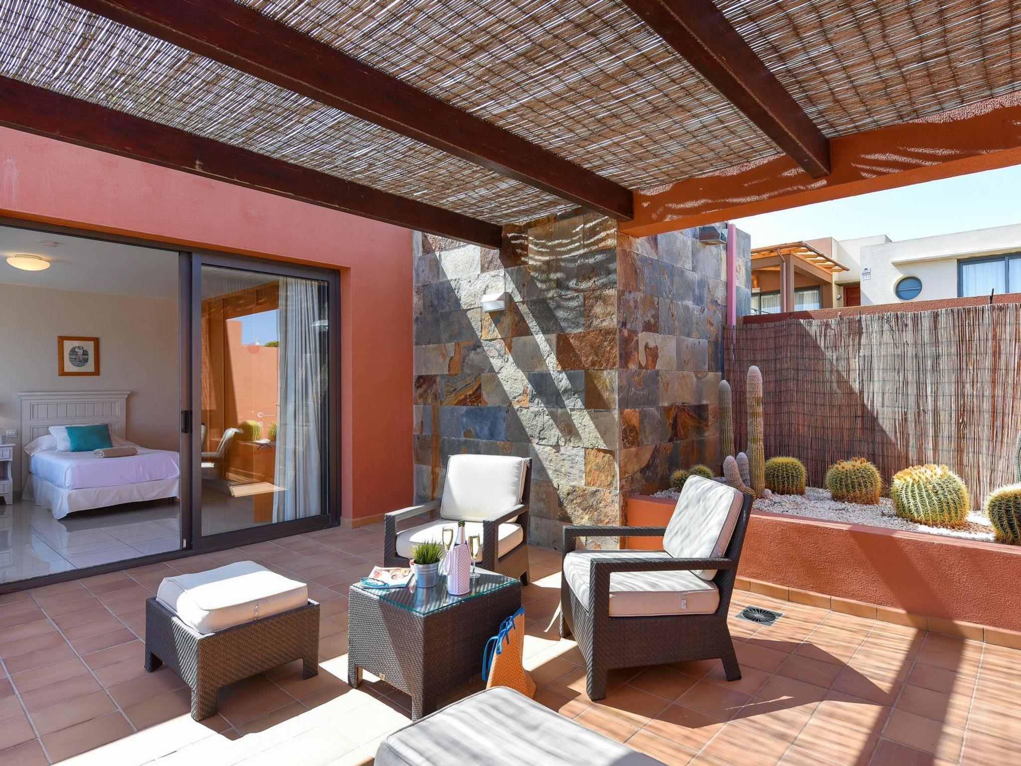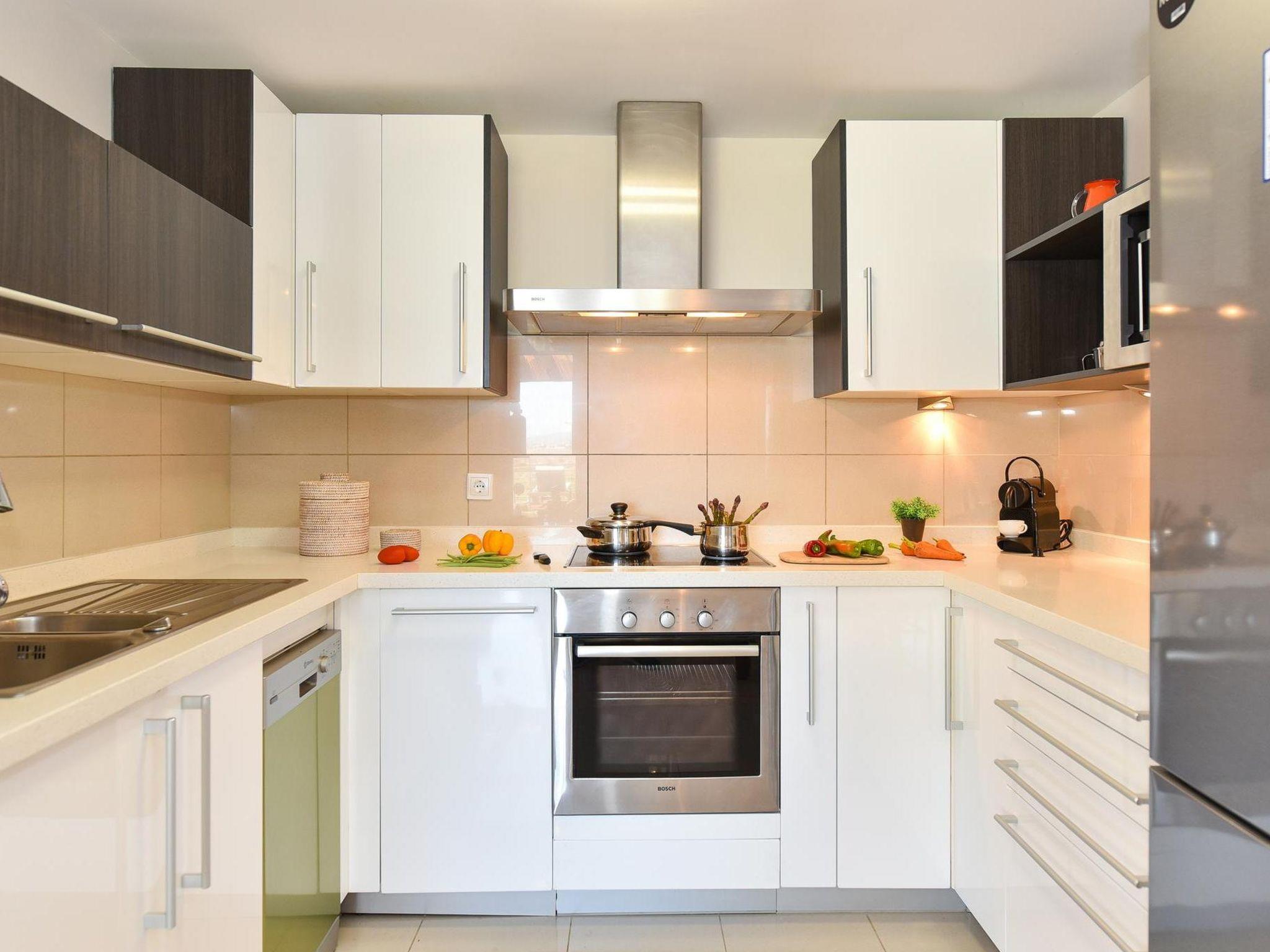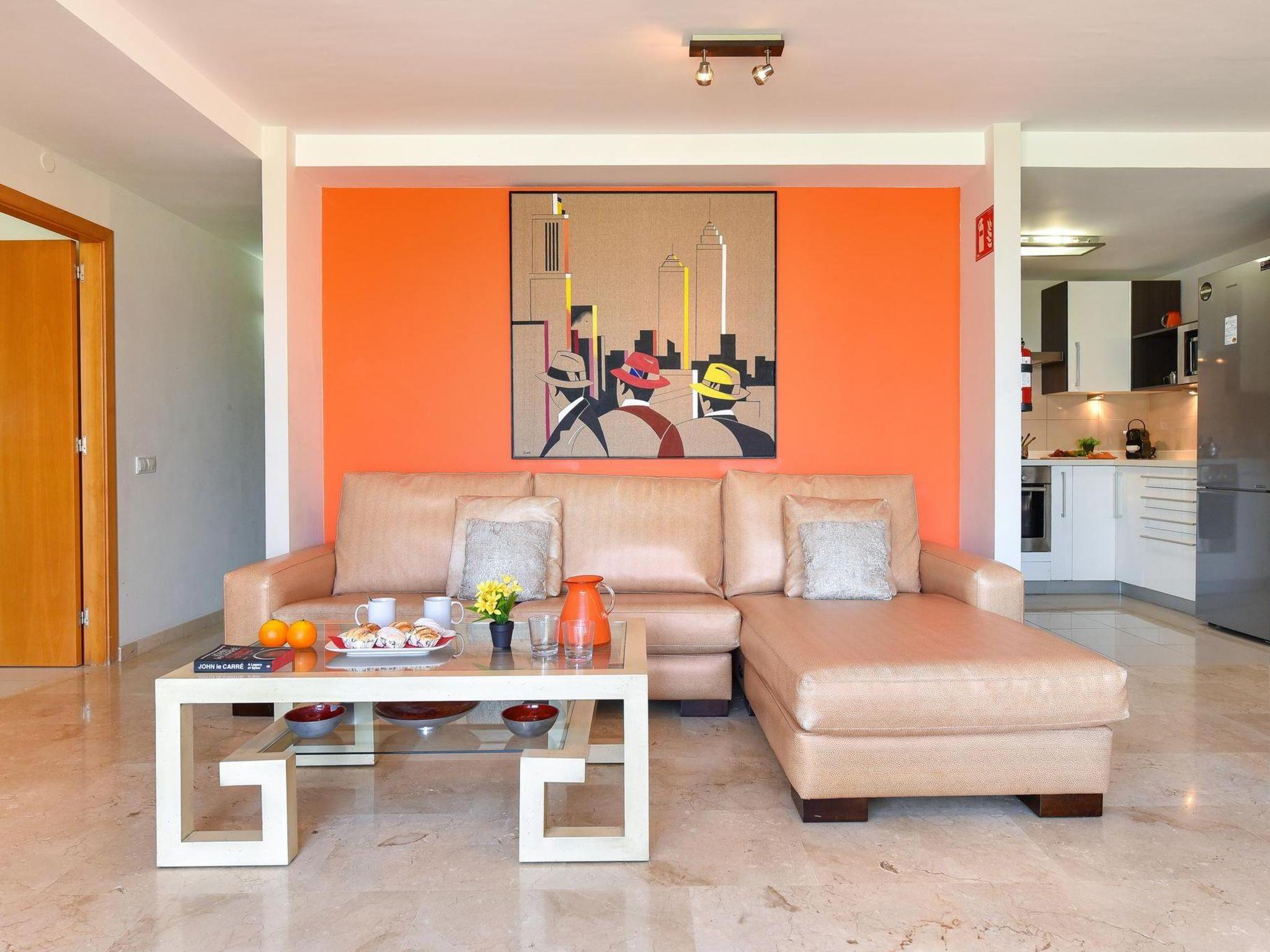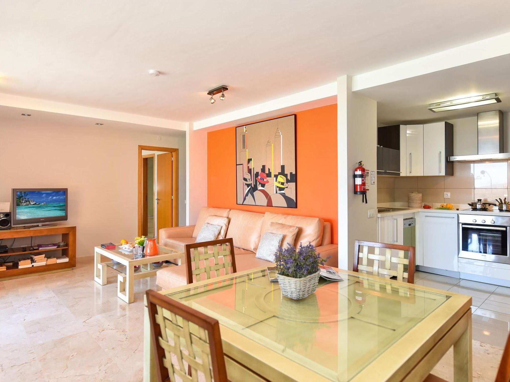 "Tipo Nº6", 3-room house 105 m2 on 2 levels. Comfortable and modern furnishings: living/dining room with dining table, satellite TV, digital TV, hi-fi system, DVD and air conditioning. Exit to the patio, to the swimming pool. 1 room with 1 french bed, bath/bidet/WC and air conditioning. Exit to the garden, to the swimming pool. Open kitchen (oven, dishwasher, 4 ceramic glass hob hotplates, toaster, kettle, microwave, freezer, electric coffee machine). Upper floor: 1 room with 2 beds, bath/WC and air conditioning. Exit to the terrace. Patio. Terrace furniture, barbecue, deck chairs. View of the mountains and the garden. Facilities: washing machine, dryer, safe, iron, children's high chair, baby cot for up to 2 year olds, hair dryer. Internet (WiFi, free). Parking (1 car). Please note: non-smoking house. Maximum 1 pet/ dog allowed. 2017/263 // Reg. Nr.: ESFCTU0000350120003181590000000000000VV-35-1-00003180