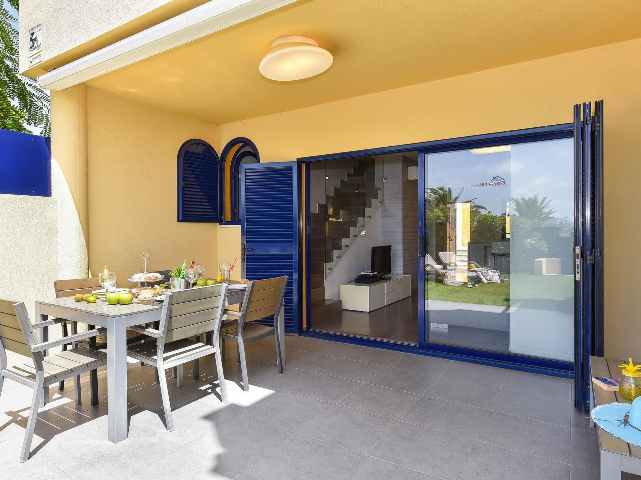 Comfortable, luxurious bungalow "Meloneras 7". In the centre of Meloneras, on the outskirts Maspalomas, in a quiet, sunny position, 350 m from the sea, 350 m from the beach. For shared use: swimming pool (seasonal availability: 01.Jan. - 31.Dec.). Children's pool, outdoor shower. Private: garden (fenced) with lawn. Barbecue. In the house: air conditioning. Public parking on the road. Shop, grocery, supermarket 400 m, restaurant 350 m, bus stop "Hospital Meloneras" 450 m, sandy beach 350 m. Golf course (18 hole) 1.5 km. The owner does not accept any youth groups. Please note: airfield 38 km from the property. Neighbourhood highly sensitive to noise. Quietness and good behaviour expected.