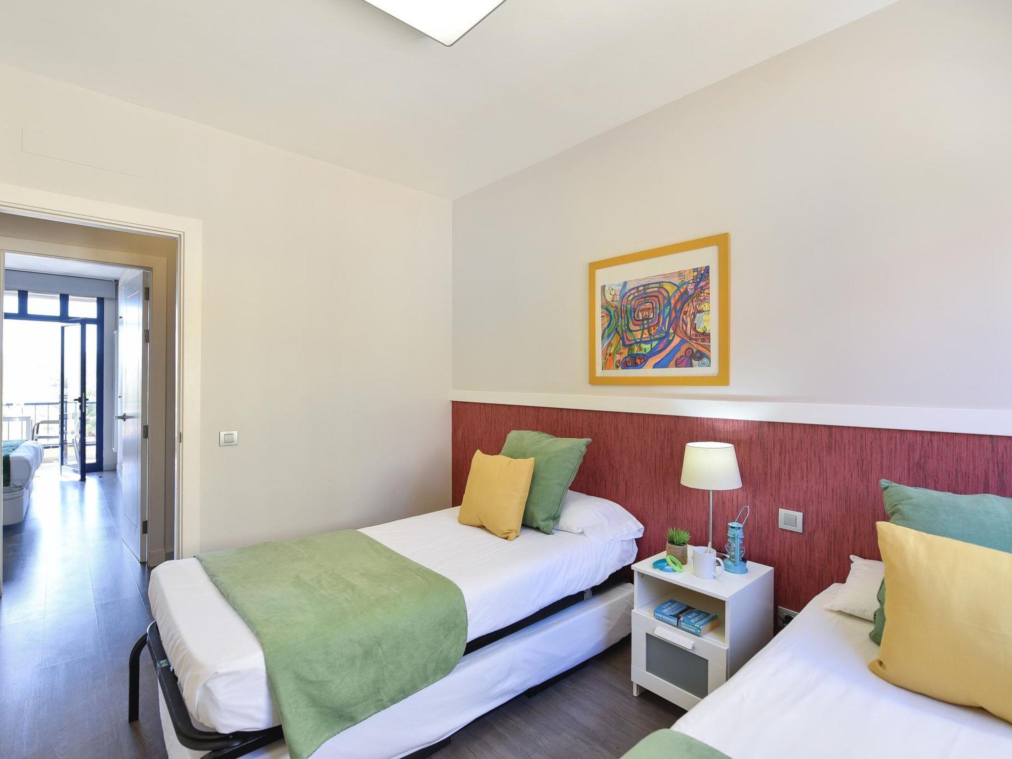 3-room house 95 m2 on 2 levels. Modern and luxurious furnishings: living/dining room with dining nook, digital TV, DVD and air conditioning. Exit to the patio. Open kitchen (oven, dishwasher, 4 ceramic glass hob hotplates, toaster, kettle, microwave, freezer, electric coffee machine). Shower/WC. Upper floor: 1 room with 1 french bed and air conditioning. Exit to the balcony. 1 room with 2 beds and air conditioning. Balcony, patio. Terrace furniture, balcony furniture, barbecue, deck chairs. View of the sea, the mountains, the garden and golf course. Facilities: washing machine, dryer, iron, children's high chair, baby cot for up to 2 year olds, hair dryer. Internet (WiFi, free). Please note: non-smoking house. 2021-T1110 // Reg. Nr.: ESFCTU0000350120003597630000000000000VV-35-1-00154840