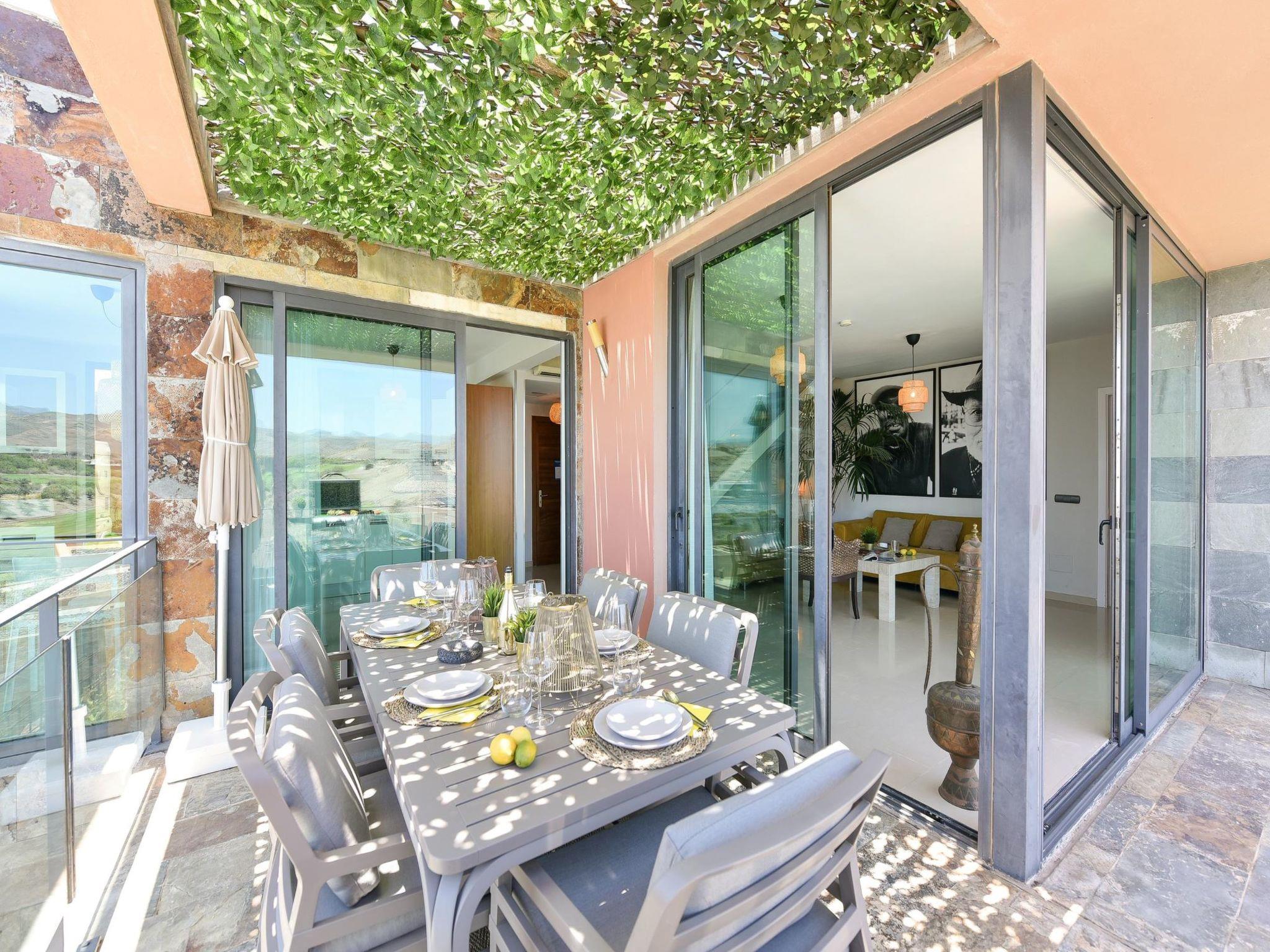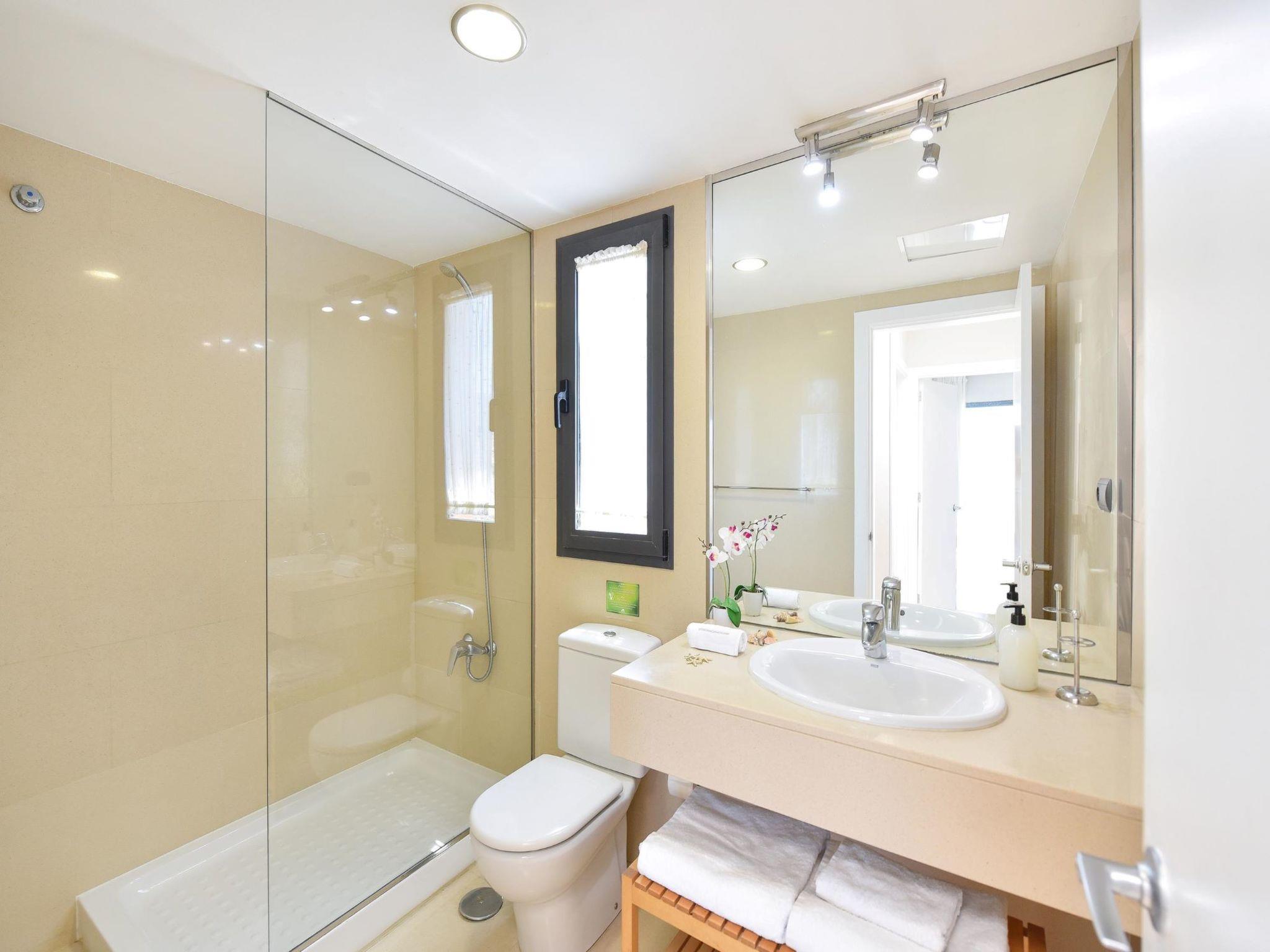 4-room house 115 m2 on 2 levels. Modern and cosy furnishings: living room with satellite TV, cable TV, digital TV, hi-fi system, DVD and air conditioning. Exit to the terrace. 1 room with 1 french bed, shower/WC and air conditioning. Open kitchen (oven, dishwasher, 3 ceramic glass hob hotplates, toaster, kettle, microwave, freezer, electric coffee machine) with dining table. Sep. WC. Upper floor: 1 room with 1 french bed, shower/bidet/WC and air conditioning. Exit to the balcony. 1 room with 2 beds, shower/WC and air conditioning. Terrace. Terrace furniture, deck chairs. View of the sea and the mountains. Facilities: washing machine, safe, iron, children's high chair, baby cot for up to 2 year olds, hair dryer. Internet (WiFi, free). Parking (1 car). Please note: non-smoking house. Maximum 1 pet/ dog allowed. VV-35-1-0001932 // Reg. Nr.: ESFCTU0000350120003157830000000000000VV-35-1-00206284