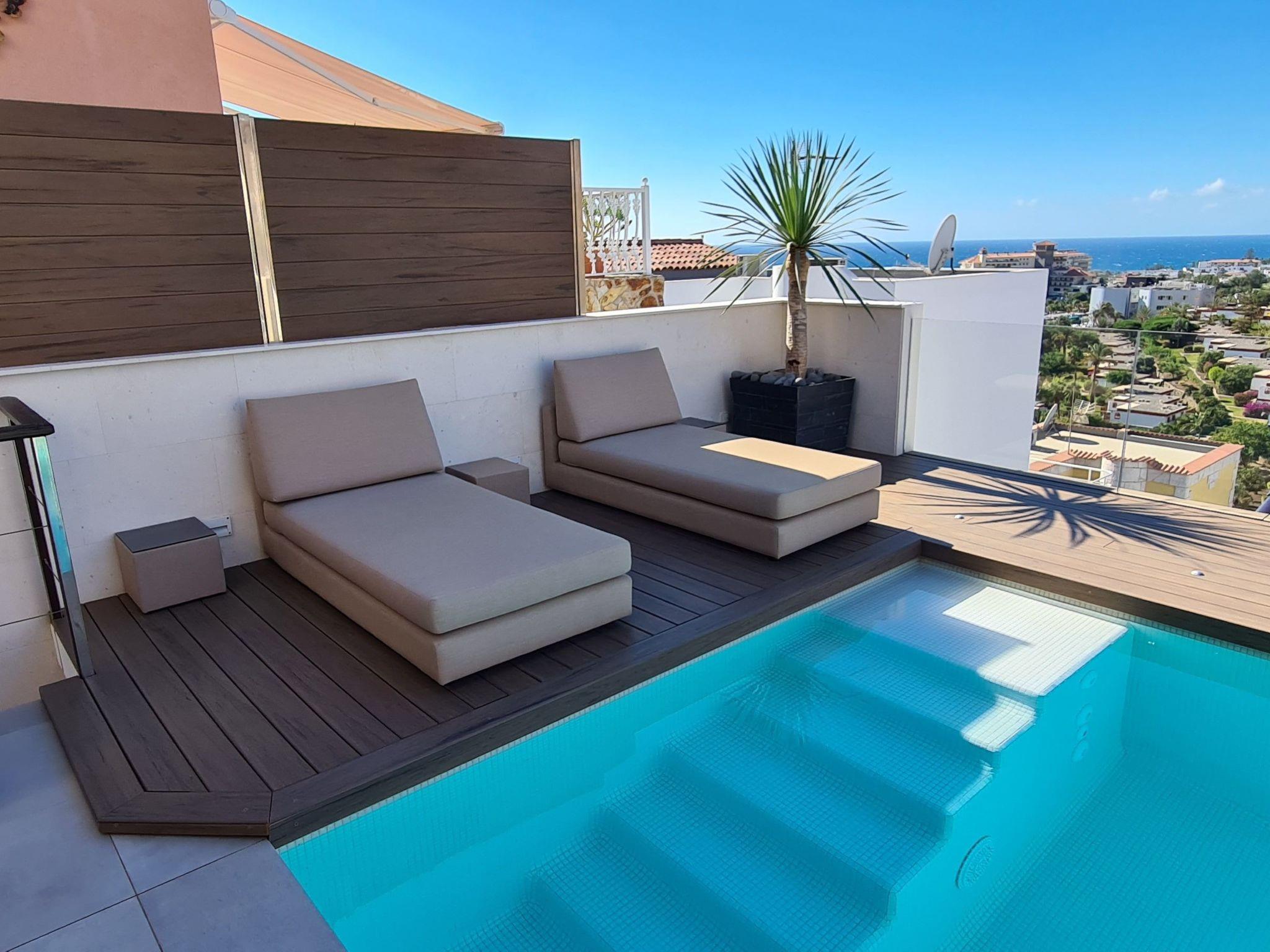 Discover your own personal paradise in the exclusive Villa Morelli, located in one of the most sought-after residential areas in the south of Gran Canaria. With its breathtaking views of the sea and the dunes of Maspalomas, this luxury villa offers an unforgettable retreat. Nestled in the tranquillity of this exquisite area, the beautiful sandy beaches of San Agustin are just a 10-minute walk away. The south-west orientation also guarantees daily sunshine from morning to evening on your private terrace.