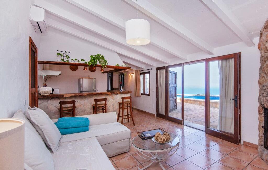 Dette autentiske feriehus "Miranda" er beliggende over havet i den vestlige del af Mallorca, beliggende mellem de charmerende landsbyer i Valldemossa og Deia Villaen er ideel for dem, der ønsker at værdsætte roen i vest og udforske nærliggende bugter som Cala Deia, den har en afsondret 2.000 m² bjergskråningsejendom med en betagende udsigt Terrasser, der fører til en pool, der inviterer jer til at slappe af og nyde betagende solnedgange. Poolen, der er tilgængelig via en stige, er dekoreret med blå mosaikfliser. Der er komfortable liggestole til solbadning, og der er en grillplads ved siden af huset plads Indenfor udstråler en-etagers villa en rustik charme, med flere vinduer, der indrammer den majestætiske havudsigt. Det omfatter to pænt møblerede soveværelser med dobbeltsenge, et badeværelse, en rummelig stue med pejs og et rustikt køkken, der er udstyret til selvforplejning. Bemærk venligst, at denne ejendom ikke er egnet til familier med små børn på grund af dens beliggenhed ved klippen og delvist sikrede udvendige trapper. Den muntre villa "Miranda" ligger afsondret på Mallorcas spektakulære vestkyst og byder på en opsigtsvækkende udsigt over øens smukkeste kyststrækning. Den ligger 400 m over havets overflade og er omkring 5 minutters kørsel fra de maleriske landsbyer Deìa og Valldemossa har begge barer, restauranter og et stort supermarked. Den betagende badebugt Cala Deìa ligger kun 8 minutter væk i bil.