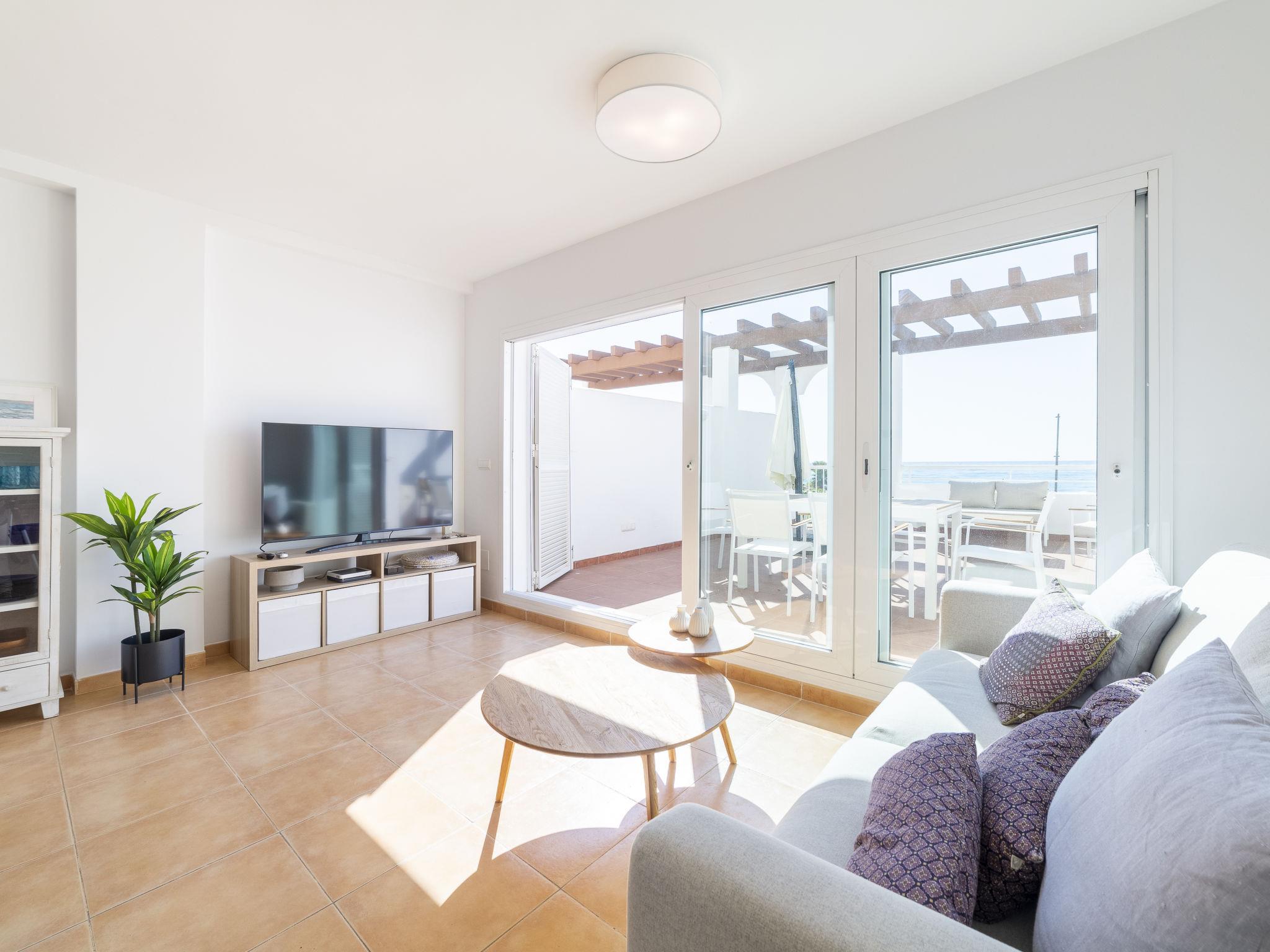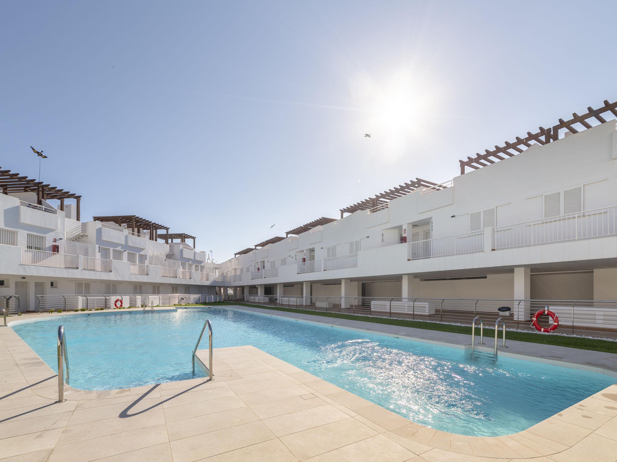 Modern residence "Mojacar Breeze". In a sunny position, at the seaside, on the beach. For shared use: garden with lawn and trees, swimming pool (seasonal availability: 01.Jun. - 30.Sep.). Children's pool. In the house: lift. Parking at the house, public parking on the road. Supermarket 400 m, restaurant, bar, café 200 m, bus stop 1 km. The owner does not accept any youth groups. Neighbourhood highly sensitive to noise. Quietness and good behaviour expected.
