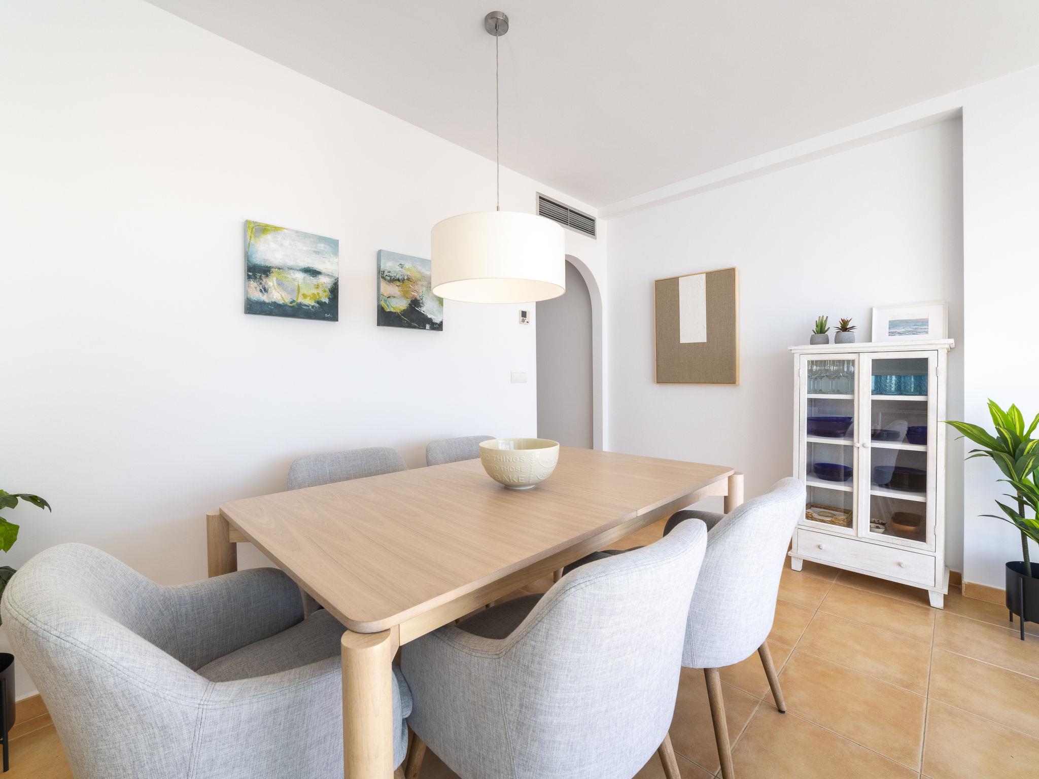 "Mojacar Breeze - Seaview", 4-room apartment 80 m2 on 1st floor. Practical and comfortable furnishings: living/dining room with dining table, digital TV and flat screen. Exit to the terrace. 1 room with 1 french bed (140 cm, length 200 cm). 1 room with 1 french bed (135 cm, length 200 cm). 1 room with 1 bed (105 cm, length 200 cm). Kitchen (oven, dishwasher, 3 ceramic glass hob hotplates, toaster, microwave, freezer, electric coffee machine). 2 showers/WC. Air-conditioning, forced-air heating. Large terrace. Terrace furniture, deck chairs. Beautiful view of the sea. Facilities: washing machine, iron, baby cot for up to 2 year olds, hair dryer. Internet (WiFi, free). Parking at the house. Please note: suitable for families. Non-smokers only. VUT/AL/11796 // Reg. Nr.: ESFCTU0000040230013092680000000000000000VUT/AL/117966