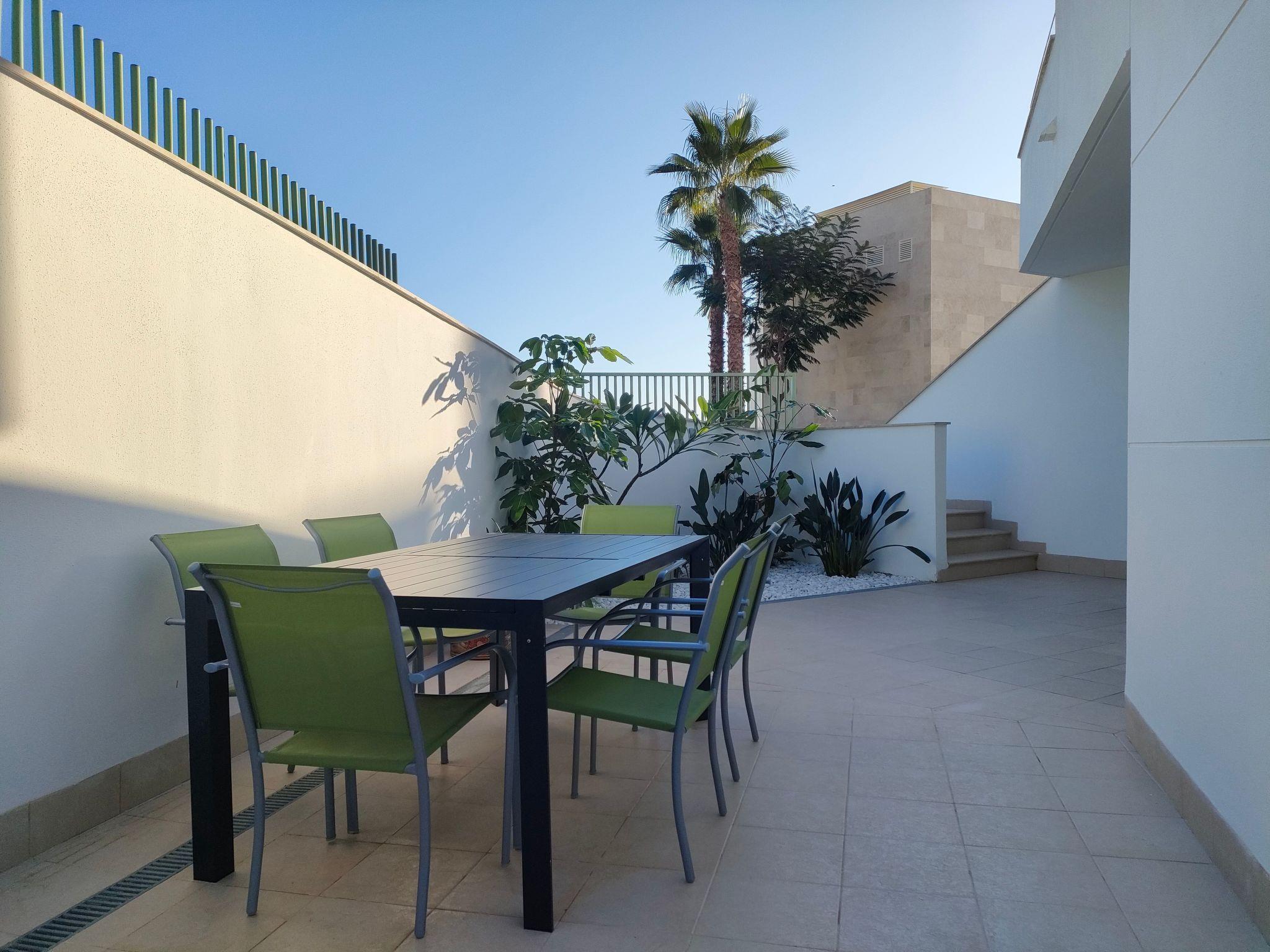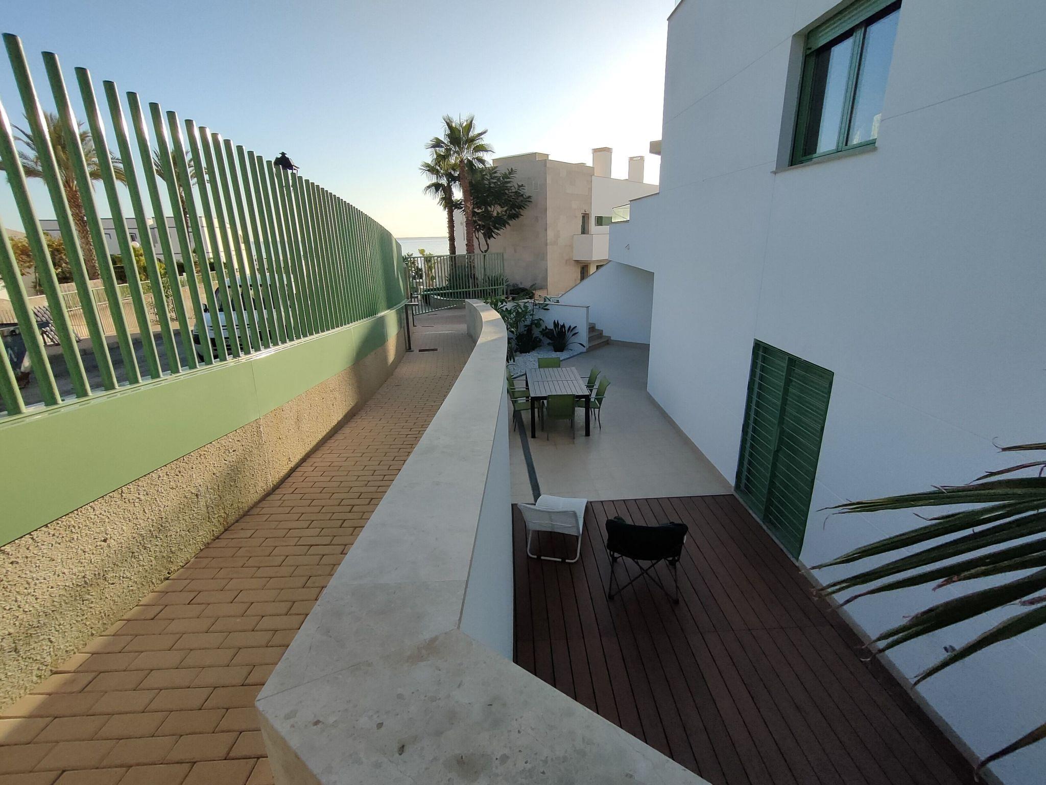 The flat has an outside area of 60m2 formed by a porch with garden and a large corner terrace with views to the mountain and partial views to the beach. As it is a corner, we have a very pleasant sensation of temperature and freshness, as well as having a feeling of intimacy. In this terrace there is a small garden, a chill-out area with wood and a bench in a corner.