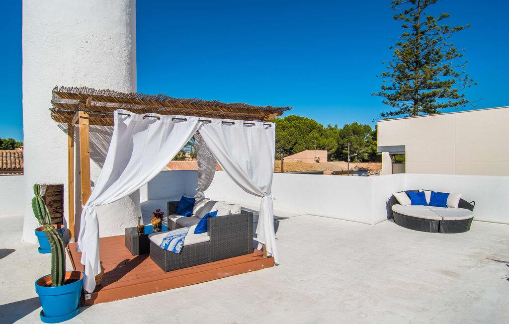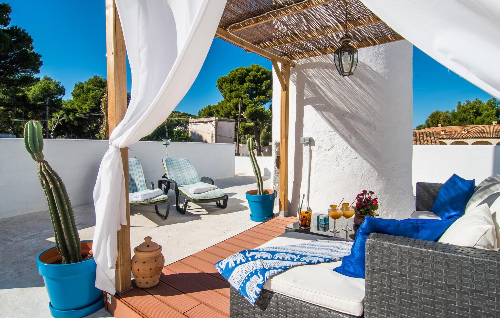 Ved første øjekast kan I se ved villaen "Molino de Son Moll", at det er et virkelig ekstraordinært hus. Det ibizaanske hvidmalede hus med turkise skodder har endda - som navnet antyder - et gammelt vindmølletårn, der også afslører sit oprindelige formål som landbrugsejendom. Tro mod sin mallorcanske tradition er det charmerende rækkehus omgivet af nogle dejlige små detaljer, som vi gerne vil dele med dig: for eksempel den private, nyreformede pool (selvom havet ligger kun et stenkast væk), som er integreret ind til græsplænen og terrassen. Efter svømning kan I bruse af udenfor, før I slapper af på en af de medfølgende liggestole eller krøller jer sammen med en læsning af jeres seneste yndlingsbog. Dette er særligt behageligt blandt palmer, cypresser, johannesbrødtræer og andre typiske middelhavsplanter. Den kølige tagterrasse er ikke bare et sted at læne sig tilbage og se ud over det oplyste resort om natten. Det udendørs spiseområde og loungeområdet i arabisk stil, begge overdækkede, er bestemt ikke mindre charmerende: halvt omgivet af vægge, halvt dækket af et fortelt eller lagner, der blæser i den blide brise. På trods af den utvivlsomt urbane beliggenhed midt i et boligområde, kan I stadig nyde jeres privatliv i et behageligt miljø, der frem for alt sikrer en umiddelbar følelse af afslapning. Det er ikke overraskende, at interiøret har nøjagtig samme karakter. Et strejf af nostalgi strømmer gennem hjemmet, komplet med smukke, traditionelle arabeskmønstrede fliser, der minder om jugendstil. Disse dækker ikke kun gulvet i den hyggelige stue med et beige sofasæt og effektivt pilleovn, men også i den trendy spisestue, soveværelserne og køkkenet med udgang til terrassen. Det indbyggede tekøkken har alle de tekniske faciliteter, der gør det nemmere for jer at sørge for jer selv på ferien. Det tilstødende, rustikke køkken har støbejernskomfur med fedtstensvask. Dette område og de delvist afrundede tage minder charmerende om den gamle vindmølle, forstærket af lyse hvide vægge og honningfarvede, hyttelignende trædøre og andre dekorative elementer i en vidunderlig rustik-moderne stil. To af soveværelserne er indrettet med en queen-size dobbeltseng og et vægmonteret fjernsyn. Det tredje soveværelse med to enkeltsenge (og uden tv) er derfor perfekt til yngre gæster. To utroligt smarte badeværelser med brusekabine og moderne design giver fremragende komfort til jeres lille gruppe. Og det er netop omdrejningspunktet for dette unikke hus, som er gennemført med stor kærlighed til sine gæster - som I forhåbentlig snart selv vil opleve. Når I skal vælge sommerhus, er det naturligvis ikke kun stilen, der betyder noget, men også jeres præferencer for det omkringliggende område. Hvis I primært ønsker at bo i et traditionelt mallorcansk hus, så er dette noget for jer. Hvis I kan lide at være tæt på stranden og kunne gå langs promenaden til resortet på et hvilket som helst tidspunkt af dagen, så er dette helt sikkert også noget for jer. Gåture, korte vandreture til fantastiske udsigtspunkter og en shoppingtur på samme tid - alt dette er muligt takket være den fantastiske beliggenhed af "Molino de Son Moll". At nyde en morgenmad med havudsigt, tapas ved levende lys og et glas hierbas ved solnedgang i havet er ikke fantasifulde ønsker, men kan blive til virkelighed i kvalitetsrestauranter. Om sommeren kan I forvente en masse variation med et fristende aftenunderholdningsprogram (hvis I ønsker det), mens her om vinteren er behageligt stille og smukt. Fyrtårnet byder på en fantastisk udsigt over de stejle klipper, der falder stejlt ned i vandet, samt de bølgende bakker. Nyd mangfoldigheden i "Molino de Son Moll"! Den ekstraordinære villa "Molina de Son Moll" er et stykke mallorcansk tradition og ligger mellem villaforstaden Sa Pedruscada og Cala Ratjada - begge små kunstnerbyer i øst er derfor inden for gåafstand. I kan gå til stranden Platja de son Moll, kun 150 meter væk, og derfra slentre langs promenaden direkte ind i det livlige feriested og nyde dens urbane karakter. Andre sandstrande er kun en kort køretur væk. Bemærk venligst, at denne ejendom ikke accepterer ungdomsgrupper eller polterabender. En ungdomsgruppe på denne ejendom består af personer i alderen [30] eller yngre. Book ikke denne ejendom, hvis I er en ungdomsgruppe eller en polterabendgruppe, da jeres reservation vil blive afvist, når den er booket, hvilket også kan være tilfældet ved ankomst til ejendommen eller under jeres ophold, og I vil ikke modtage en refusion.