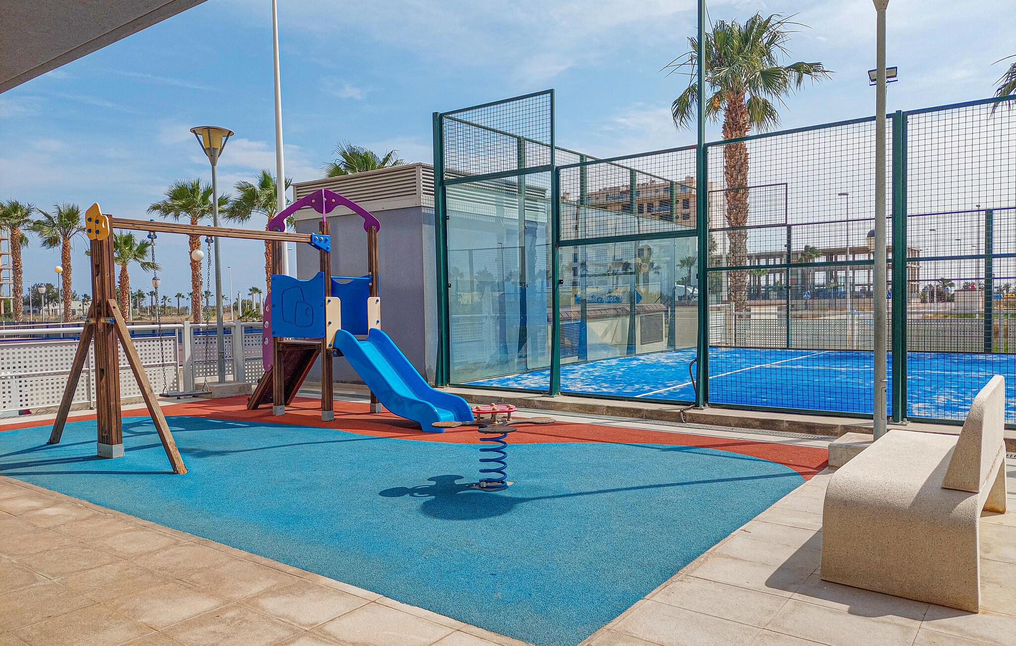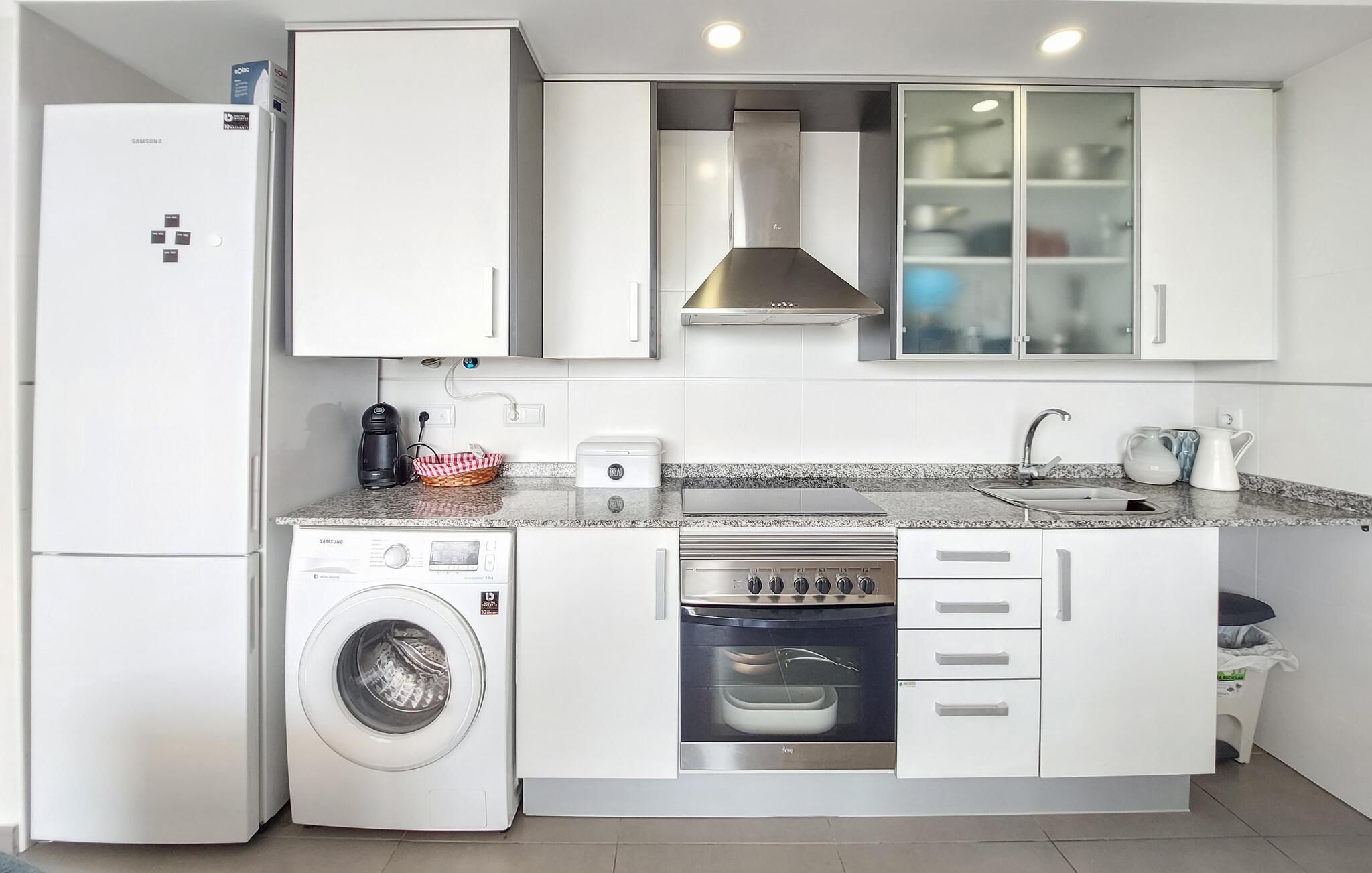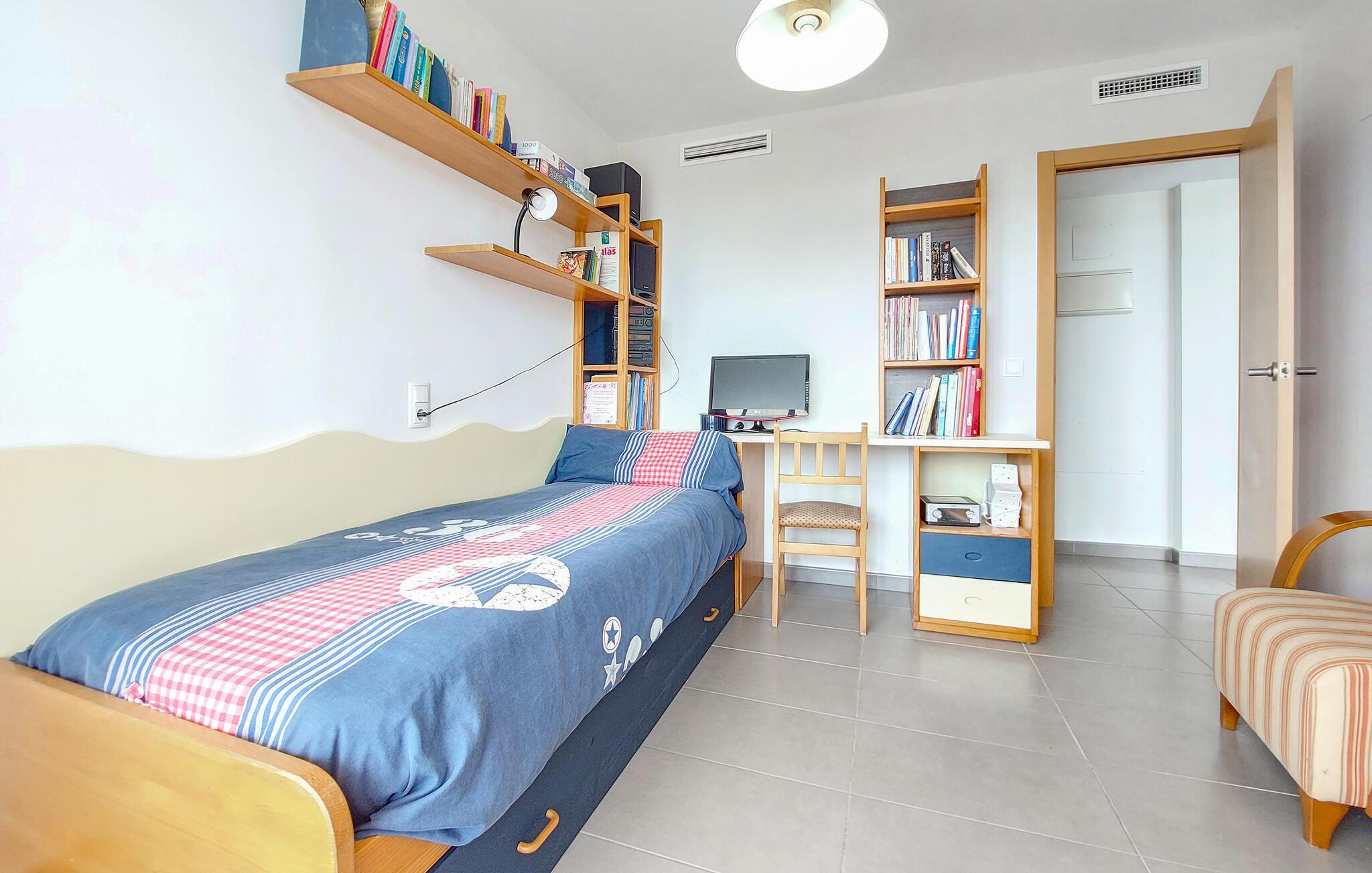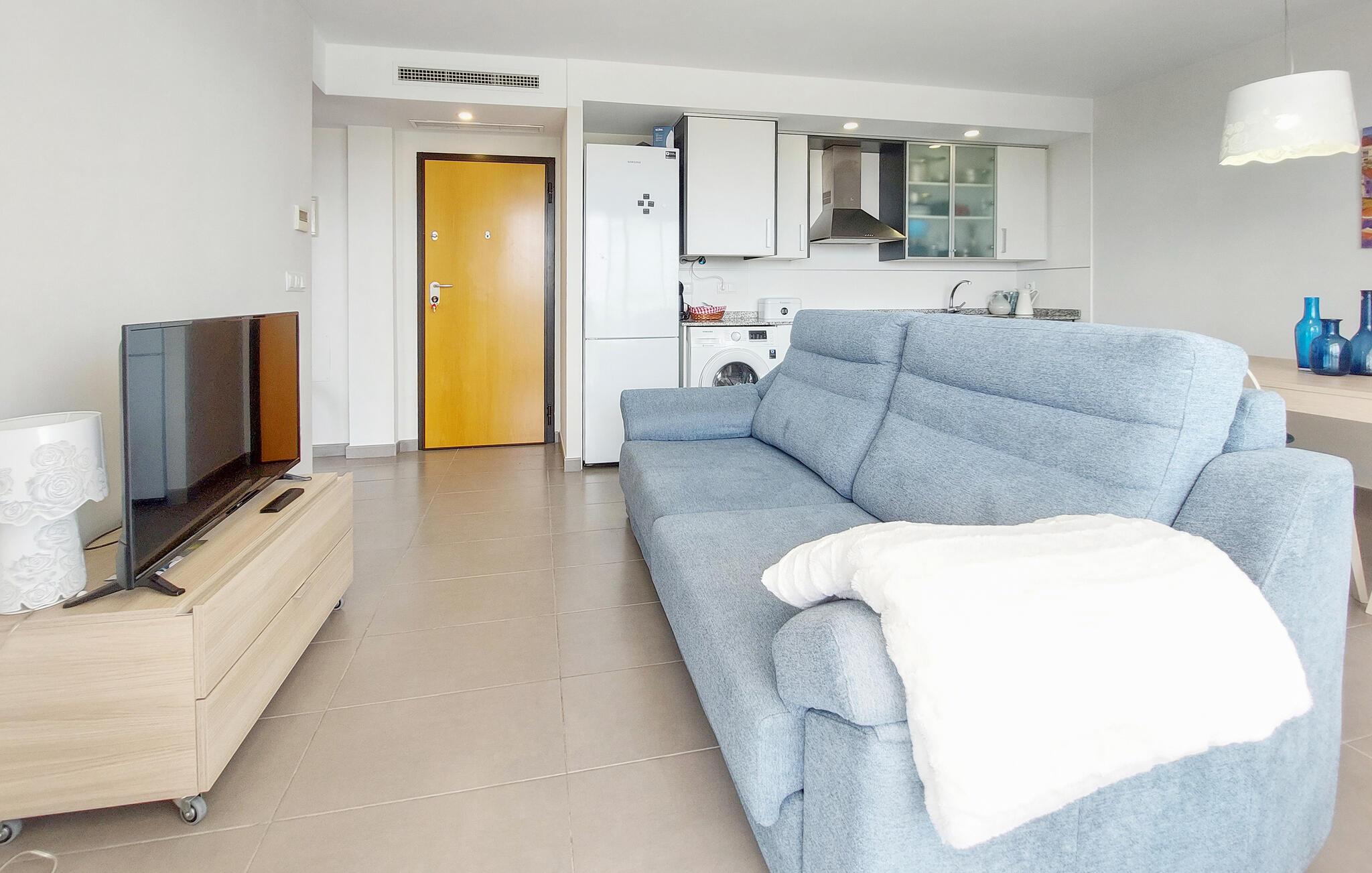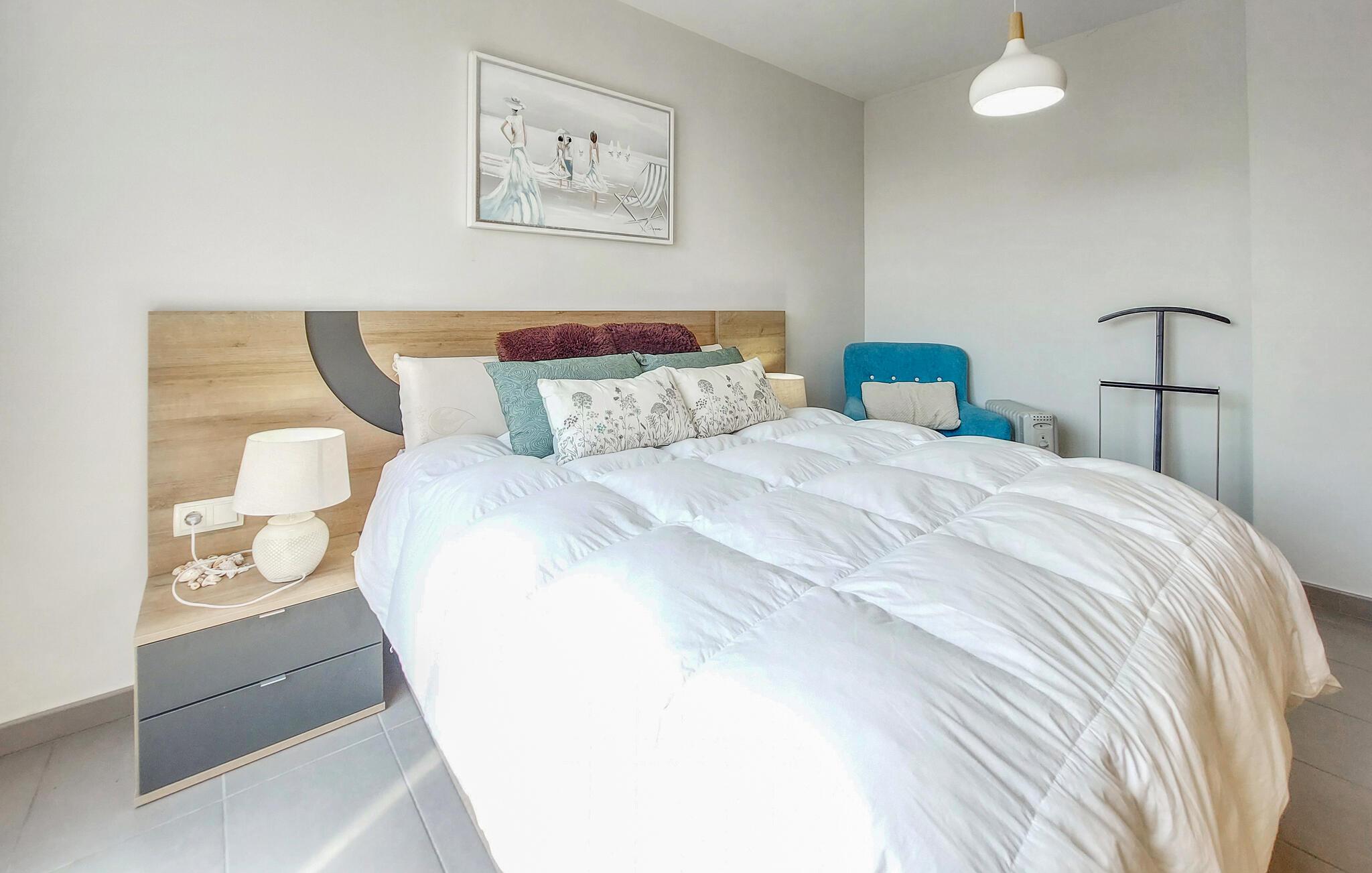 Denne skønne ferielejlighed med panoramaudsigt ligger på øverste etage i et velholdt feriehuskompleks med fælles pool. De smukke værelser lægger op til at slappe af og blive hængende. Slap af i det smukt designede soveværelse eller nyd tiden sammen i den åbne stue med køkken, spisestue og opholdsstue, uanset om I laver mad, spiser, leger eller ser en film.