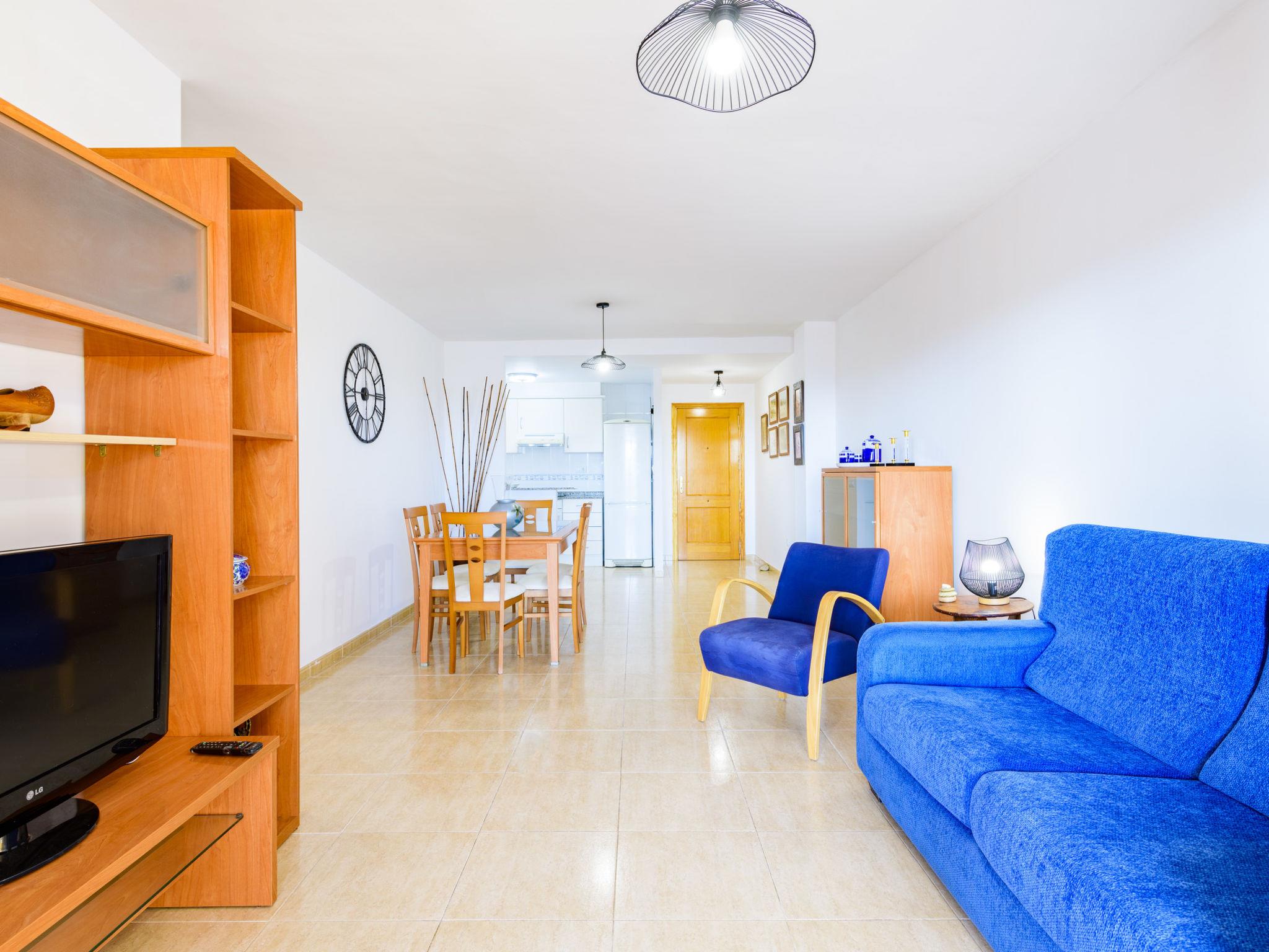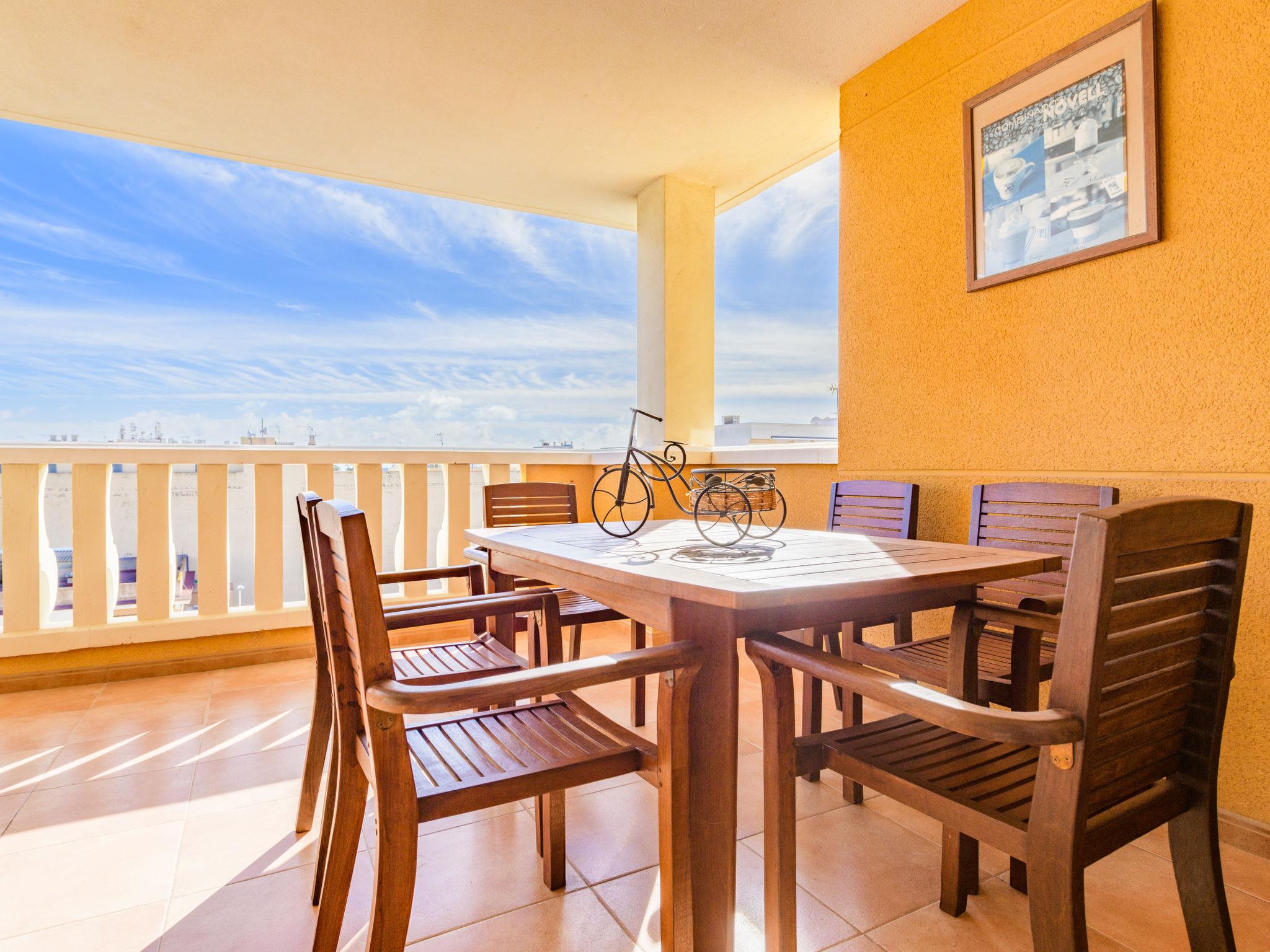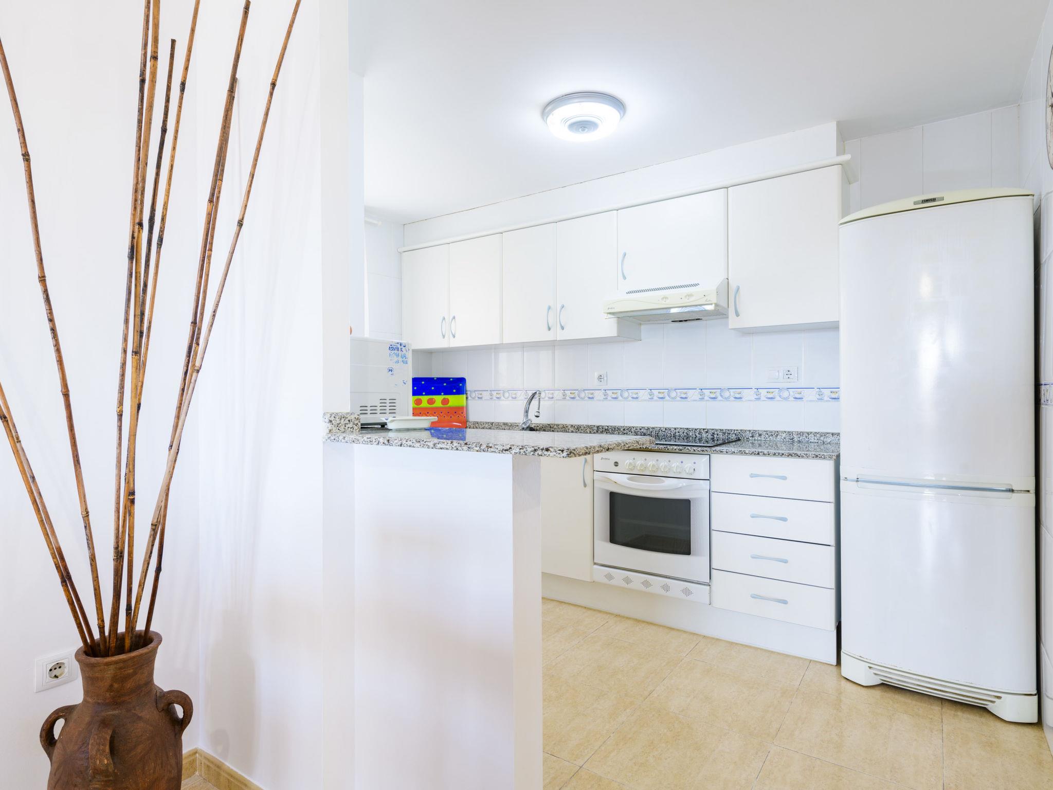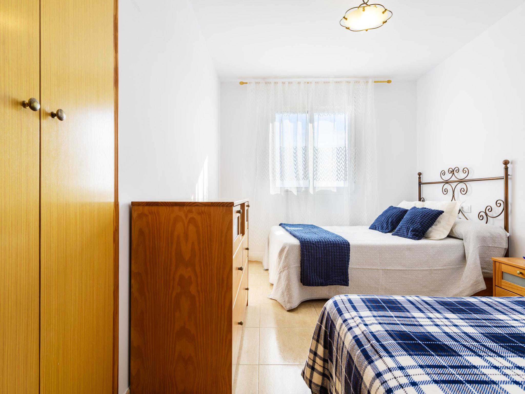 "Jardimar", 3-room apartment 80 m2 on 4th floor. Bright, practical and comfortable furnishings: living/dining room with dining table, digital TV, flat screen and fan. Exit to the terrace. 1 room with 1 bed (80 cm, length 190 cm), 1 french bed (135 cm, length 190 cm), fan. 1 room with 2 beds (90 cm, length 190 cm), fan. Open kitchen (oven, 4 ceramic glass hob hotplates, microwave, freezer). Shower/bidet/WC. Electric heating. Large terrace 25 m2. Terrace furniture. View of the resort. Facilities: washing machine, iron, hair dryer. Internet (WiFi, free). Parking (roofed) at the house. Please note: non-smokers only. Maximum 1 small pet/ dog allowed. VT-42769-CS // Reg. Nr.: ESFCTU00001201600048986300000000000000000VT-42769-CS6