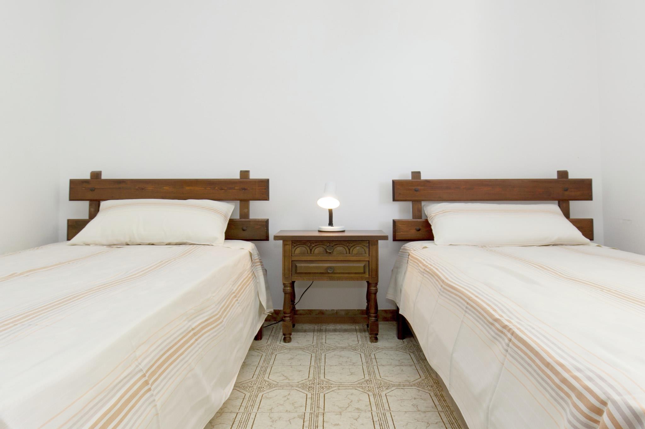 Denne 3-værelses lejlighed i Mont-roig Bahía, kun en kort gåtur fra stranden, kan rumme 6 personer. Ideel til en familie eller en lille gruppe, denne ejendom har en fælles have og en balkon til at nyde afslappede dage. Denne lejlighed byder på nærhed til havet på 200 m, hvilket giver den et heads up på vegne af strandrejsende. Butikkerne, restauranter osv. ligger også inden for 200 m, hvilket gør det til et perfekt sted at bo for foodies. Den nærmeste bymidte er en kort køretur væk og kan besøges for at nyde nattelivet. I det åbne køkken, som er veludstyret til dine kulinariske eksperimenter, kan du tilberede valgfrie måltider. Der er en balkon til at læne sig tilbage og nyde havudsigten. Der er en møbleret have, hvor du kan nyde måltider udenfor eller tage en doven lur. Grill og parkering er andre tilgængelige faciliteter. Barneseng og høj stol kan rekvireres for de små. 1 kæledyr er tilladt her mod et mindre gebyr. Du kan nemt komme til offentlig transport, kun 100 m væk. Bemærk venligst, at restauranten ikke længere er åben, så paella- og grillaftenerne er ikke længere tilgængelige. Du er dog velkommen til at bruge den eksisterende grill i haven (men giv besked på forhånd, så ejeren aftaler det). Ejerne, som bor i huset er glade for at hjælpe med eventuelle spørgsmål, taler tysk og spansk.