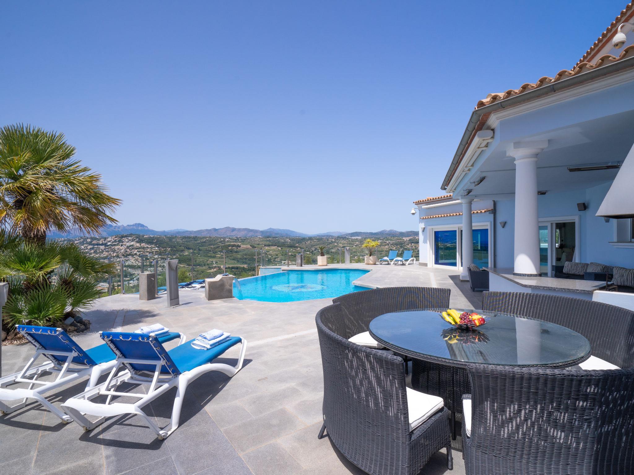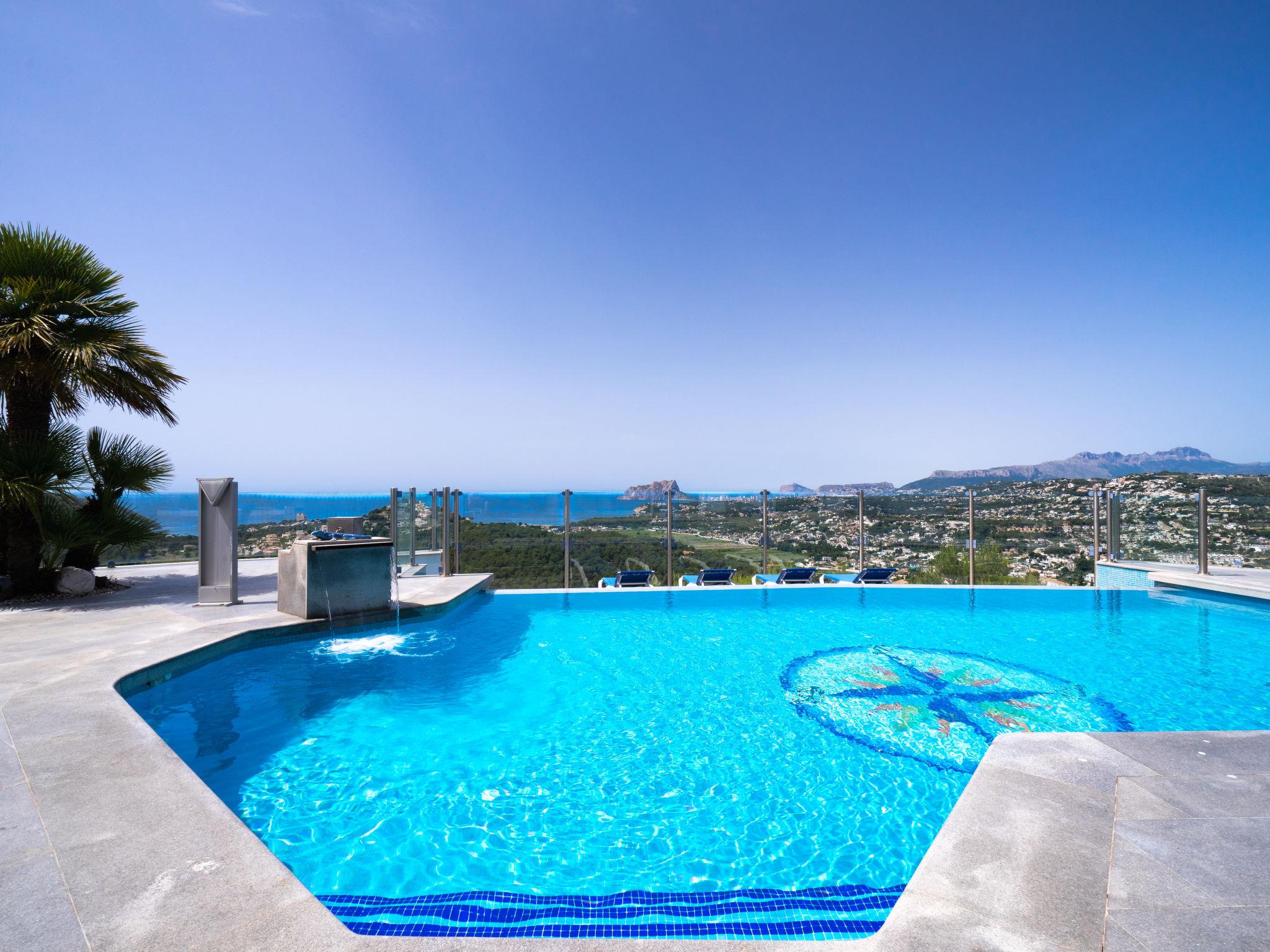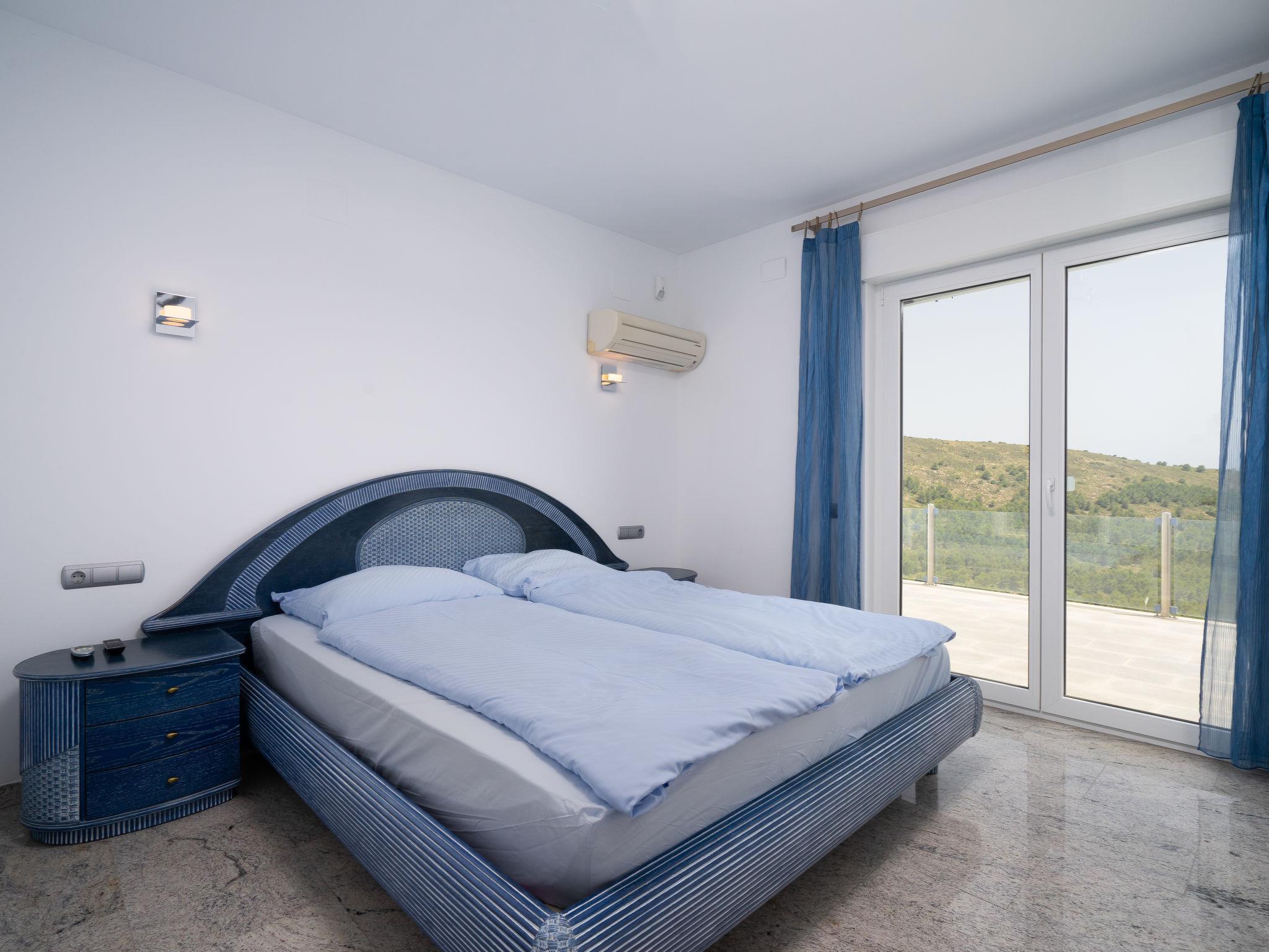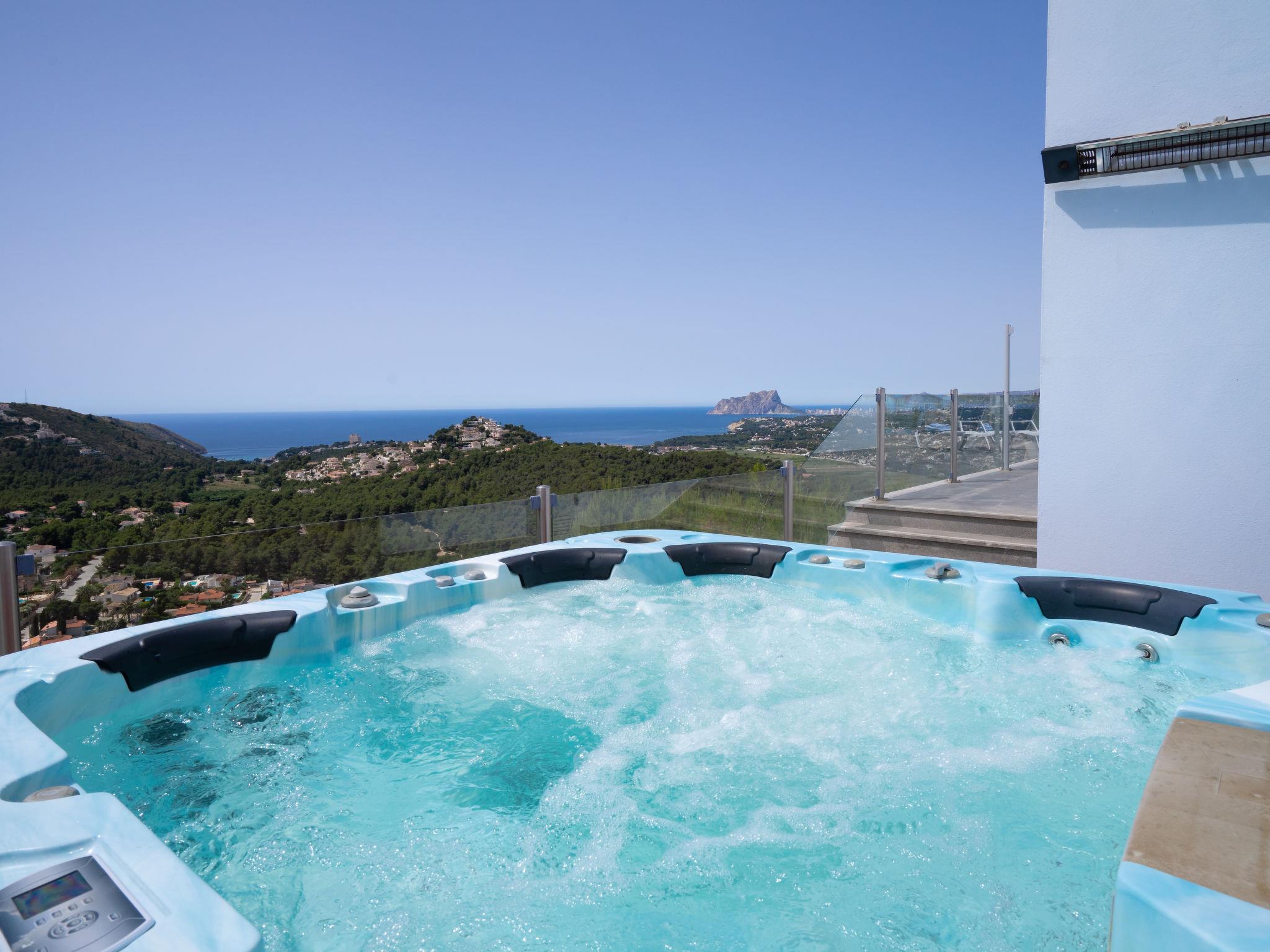 Golden Valley: Very modern, luxurious farm estate "Finca Edel", 2 storeys. 4.5 km from the centre of Moraira, in a quiet, sunny, elevated position, 4.5 km from the sea, in a cul-de-sac. Private: property 1'200 m2 (fenced), swimming pool with privacy (50 m2, seasonal availability: 01.Jan. - 31.Dec.) with internal staircase. Terrace, garden furniture, barbecue house. In the house: sauna, hot tub (all included), central heating system, air conditioning, washing machine, tumble dryer. Supermarket 1.3 km, restaurant 1.3 km, bar 1.3 km, bus stop "Moraira" 4.9 km, railway station "Teulada" 7.1 km, ferry "Denia" 22.7 km, sandy beach "Playa L'Ampolla" 5.4 km. Golf course (18 hole) 9 km. The owner does not accept any youth groups.