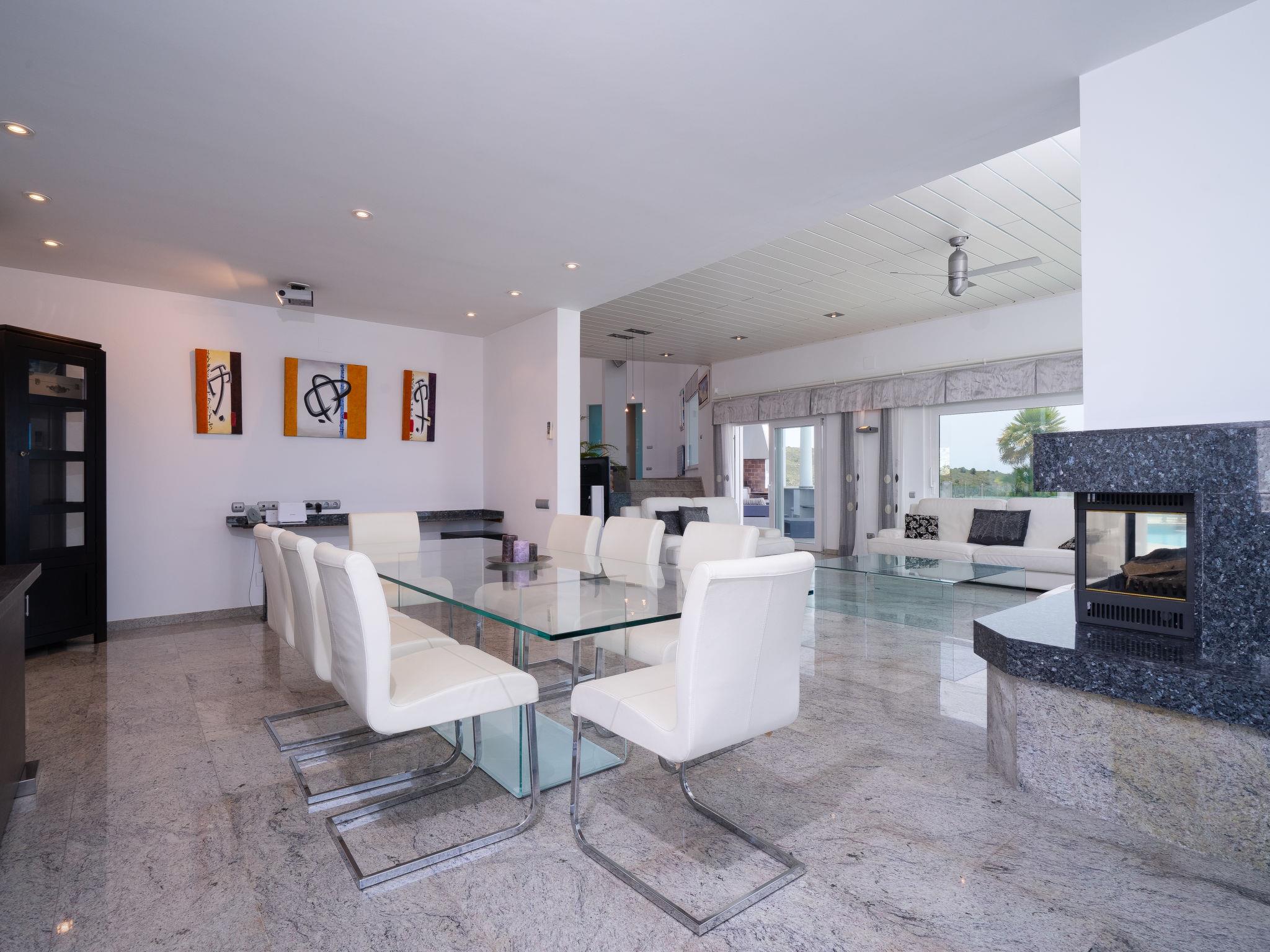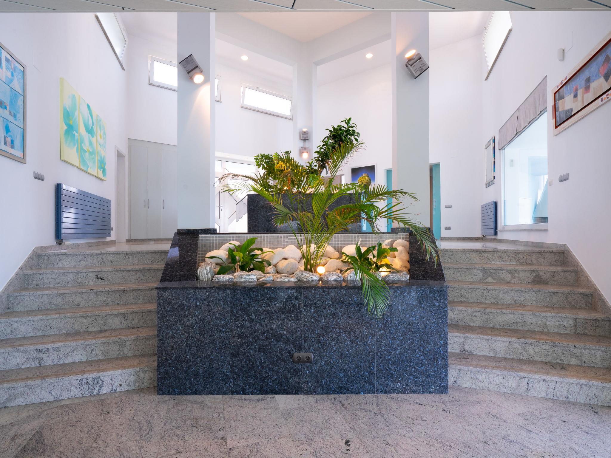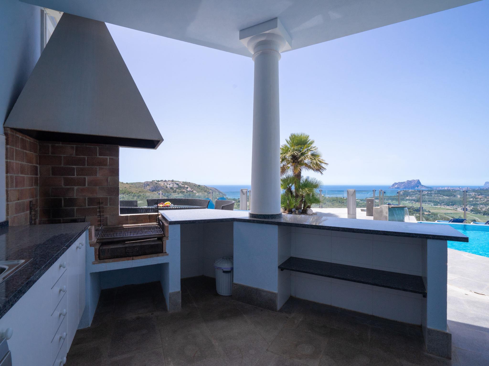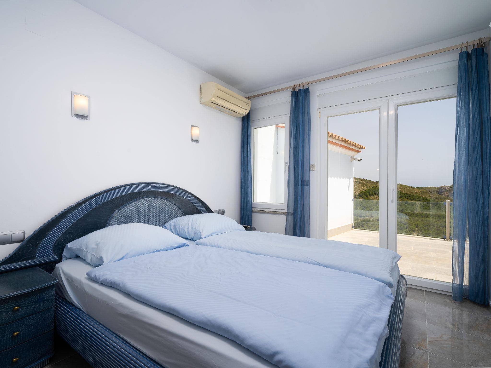 Golden Valley: Very modern, luxurious farm estate "Finca Edel", 2 storeys. 4.5 km from the centre of Moraira, in a quiet, sunny, elevated position, 4.5 km from the sea, in a cul-de-sac. Private: property 1'200 m2 (fenced), swimming pool with privacy (50 m2, seasonal availability: 01.Jan. - 31.Dec.) with internal staircase. Terrace, garden furniture, barbecue house. In the house: sauna, hot tub (all included), central heating system, air conditioning, washing machine, tumble dryer. Supermarket 1.3 km, restaurant 1.3 km, bar 1.3 km, bus stop "Moraira" 4.9 km, railway station "Teulada" 7.1 km, ferry "Denia" 22.7 km, sandy beach "Playa L'Ampolla" 5.4 km. Golf course (18 hole) 9 km. The owner does not accept any youth groups.