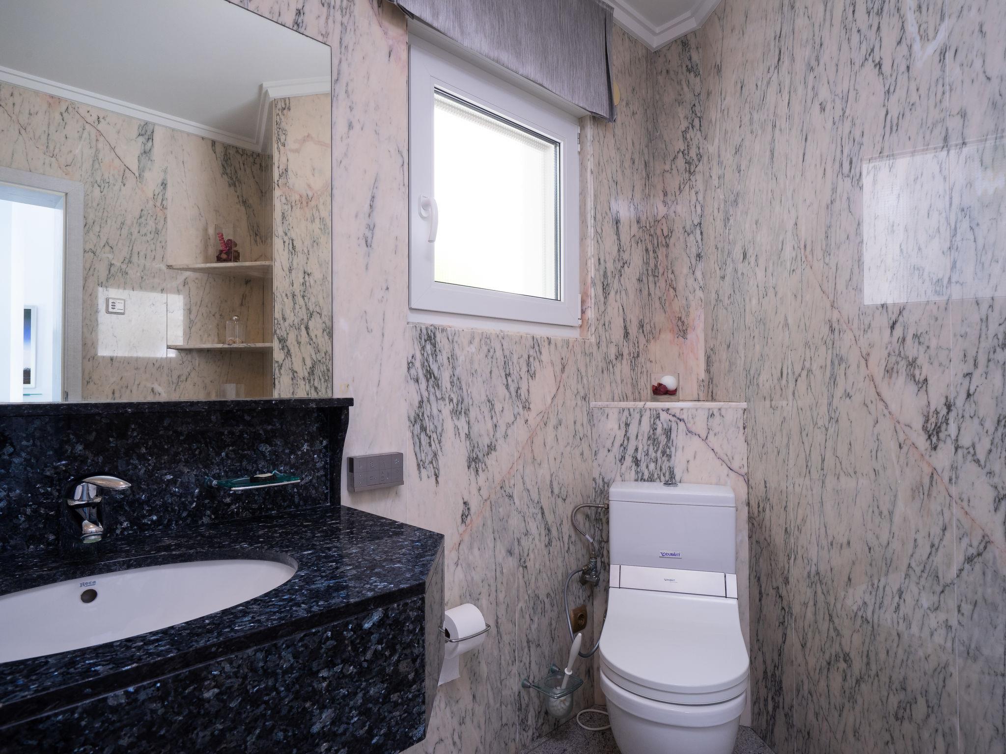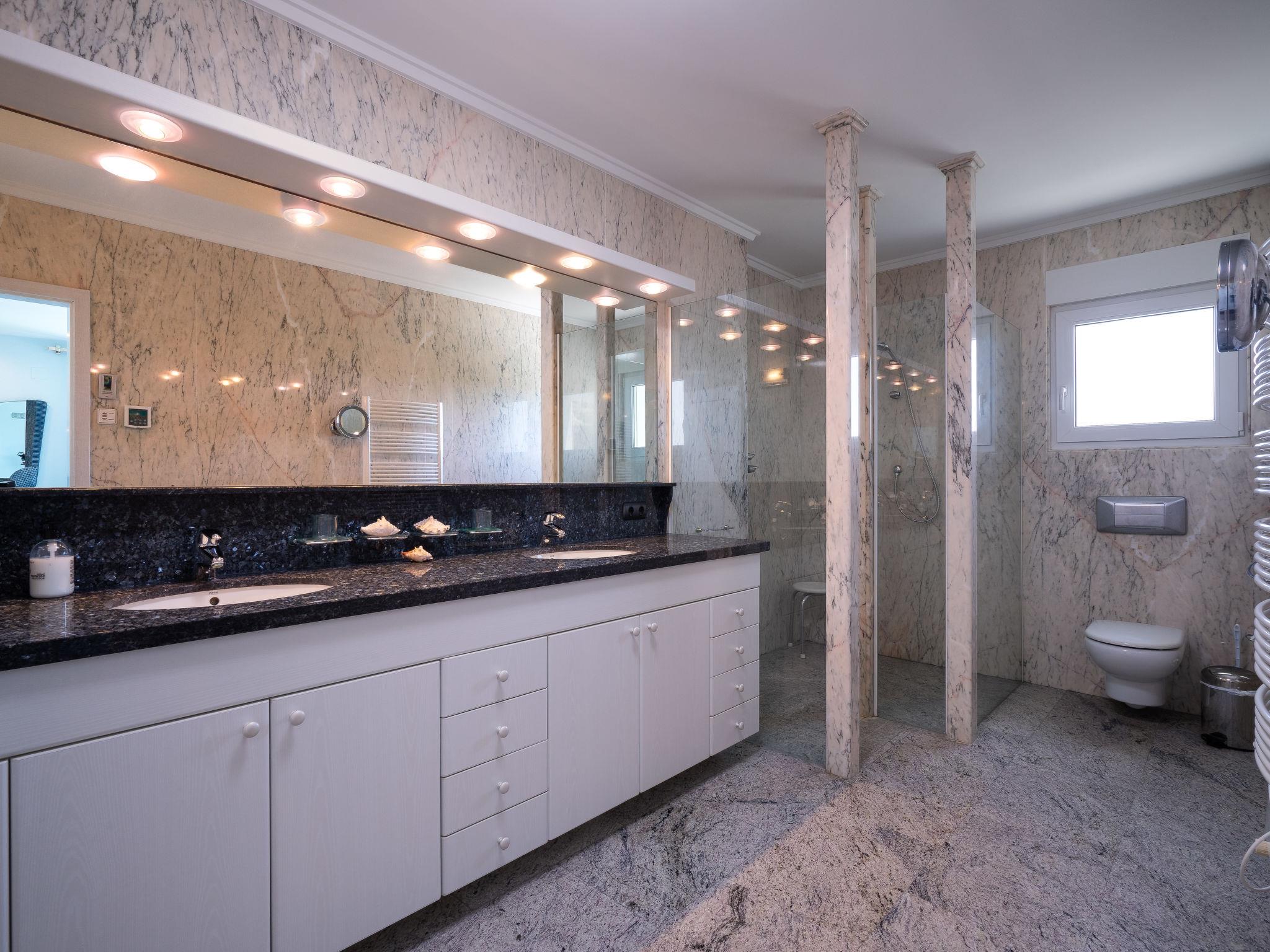 5-room villa 380 m2 on 2 levels. Very beautiful and luxurious furnishings: living/dining room 82 m2 with open-hearth fireplace, satellite TV, radio, hi-fi system and DVD. Exit to the terrace, to the swimming pool. 1 room with 1 french bed, shower/WC and satellite TV. Open kitchen (oven, dishwasher, microwave, freezer). Sep. WC. On the lower ground floor: 1 room with 1 french bed and satellite TV. 1 room with 1 french bed, shower/WC and satellite TV. Exit to the terrace. 1 room with 1 french bed and satellite TV. Exit to the terrace. Shower/WC, bath/shower/WC. Deck chairs, box-room. Beautiful view of the sea. Facilities: Internet (WiFi, free). Garage (2 cars). AT-441006-A // Reg. Nr.: ESFCTU00000303800085047600000000000000000AT-441006-A5