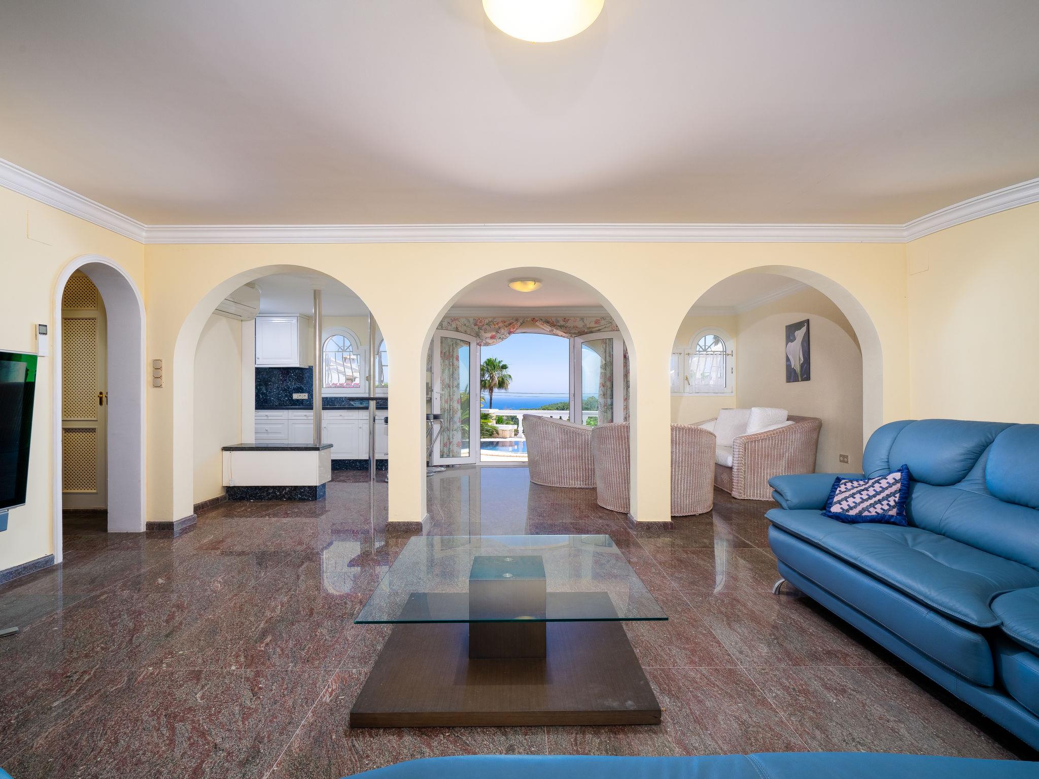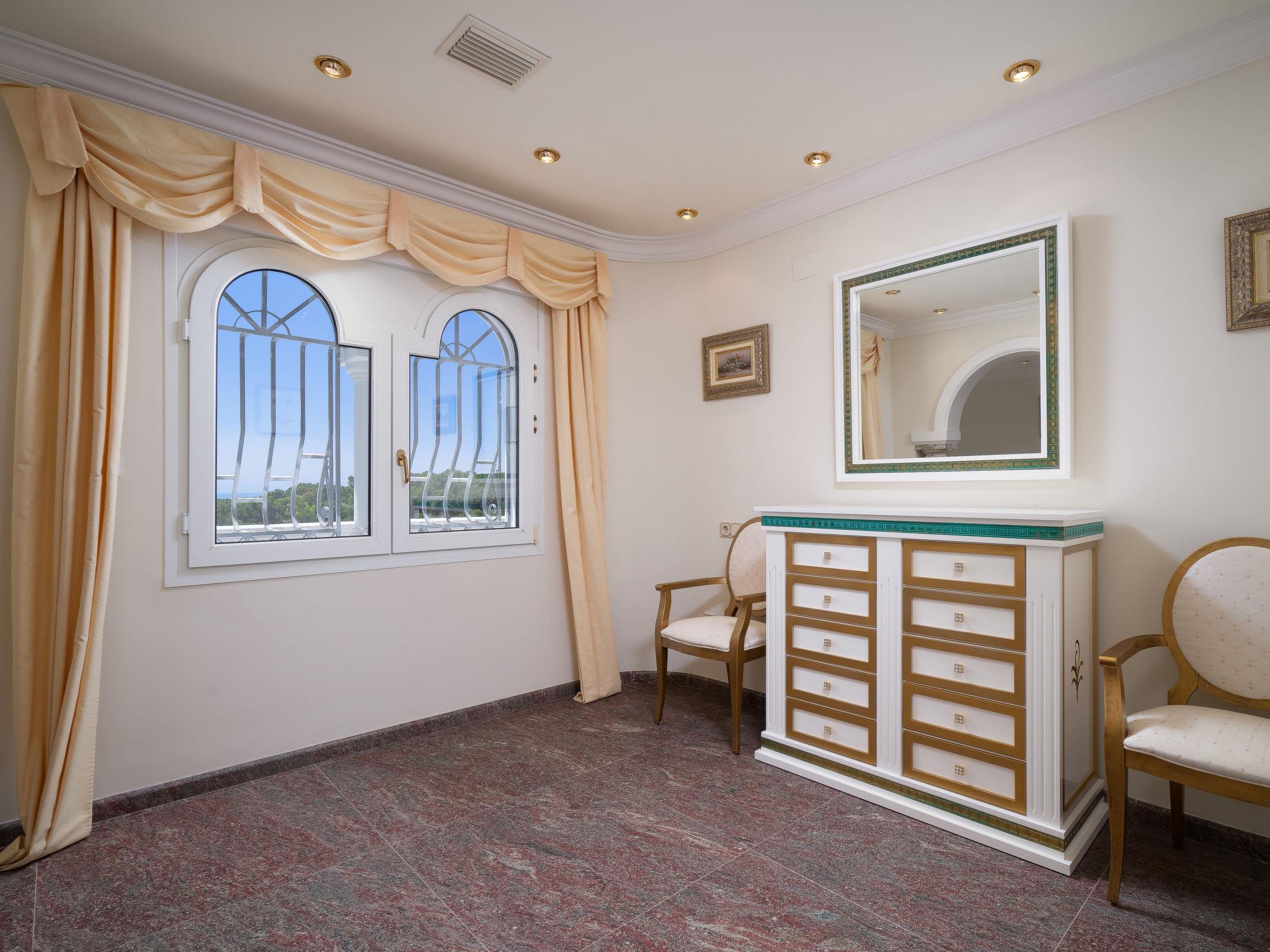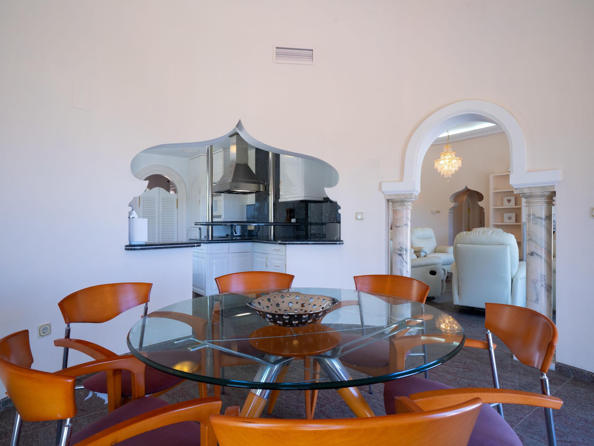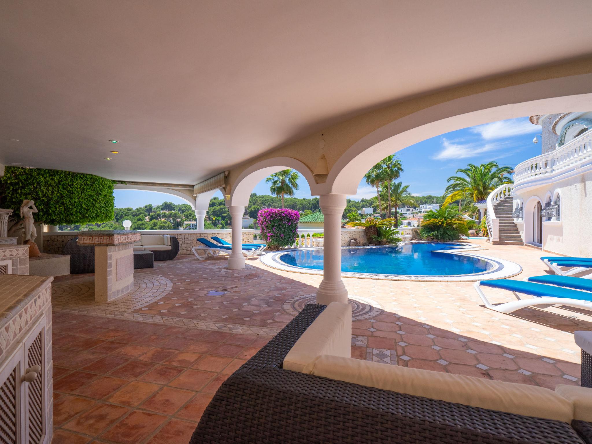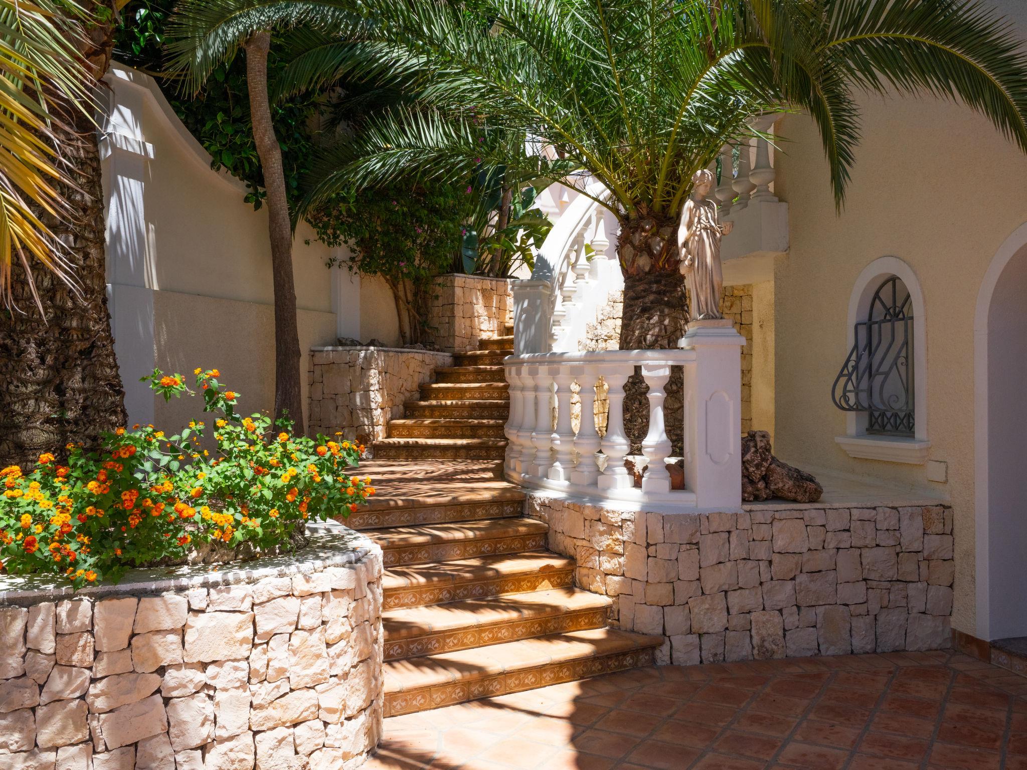 Large, luxurious villa "Luxemburg", 2 storeys. In the district of Montemar 4 km from the centre of Moraira, in a quiet, sunny position, in a cul-de-sac. Private: beautiful, well-kept garden 1'100 m2 (fenced), swimming pool (8 x 4 m, seasonal availability: 01.Jan. - 31.Dec.) with internal staircase. Shower/WC in the pool area, pool house, barbecue house. In the house: internet access, WiFi, sauna, hot tub (all included), central heating system, air conditioning. Bus stop "Benissa" 900 m, railway station "Teulada" 8.5 km, ferry "Denia" 34.6 km, sandy beach "Playa L'Ampolla" 5.1 km pebble beach "Cala Baladra" 1.7 km. Please note: baby equipment on request (included). The owner does not accept any youth groups.