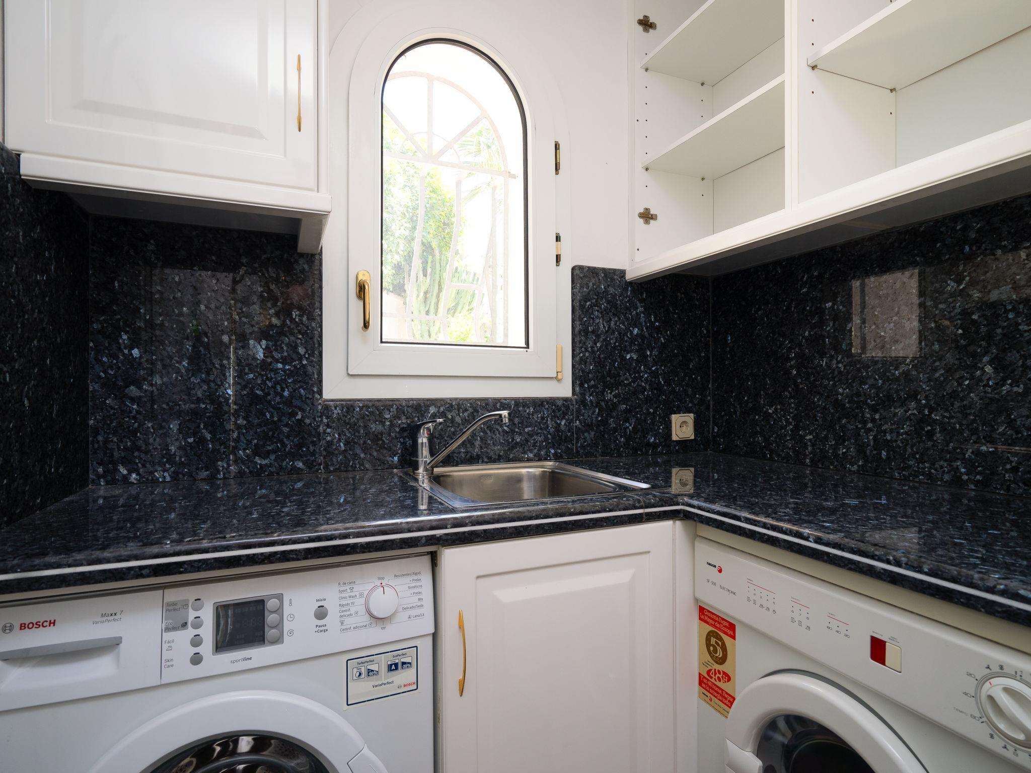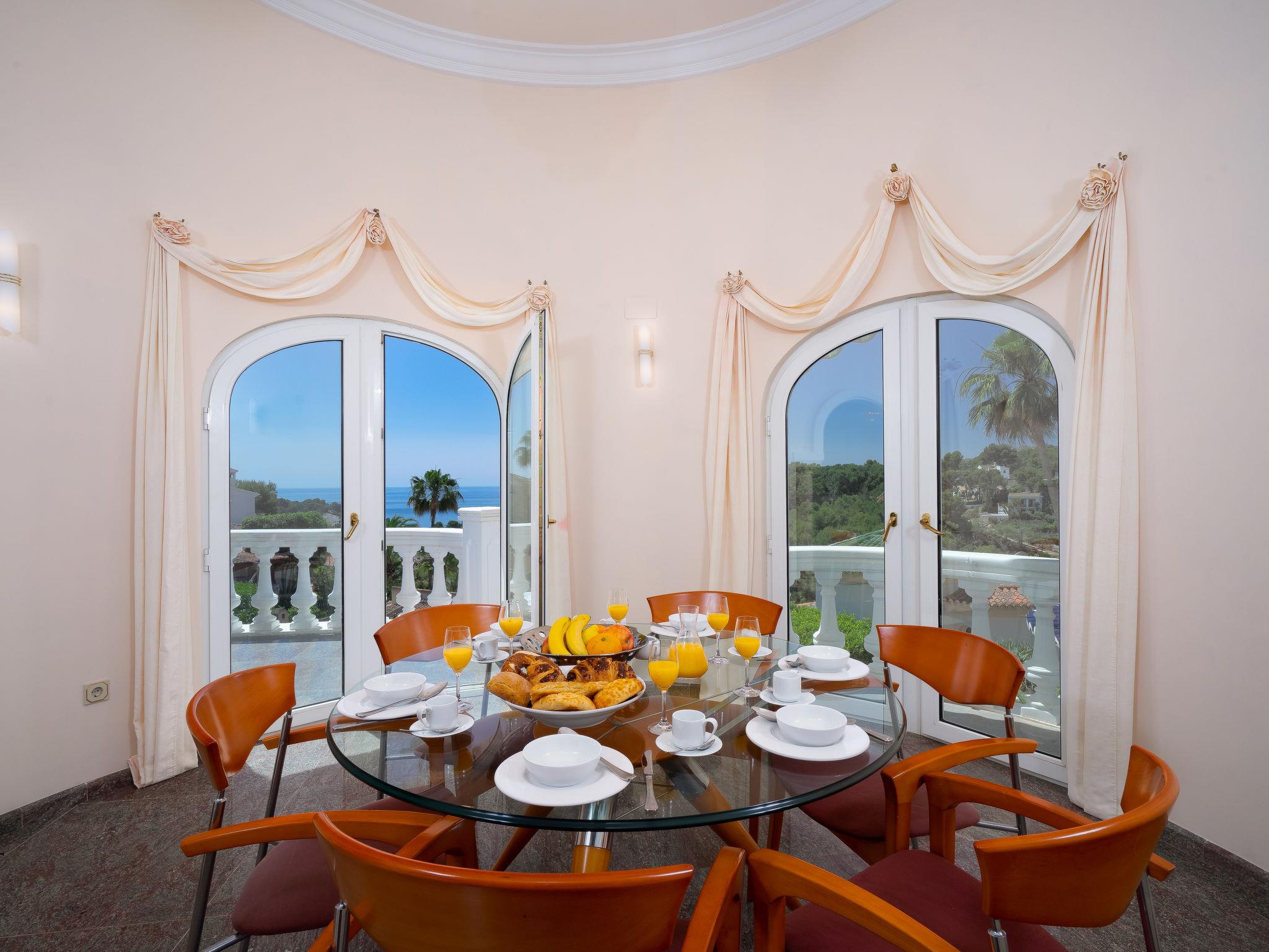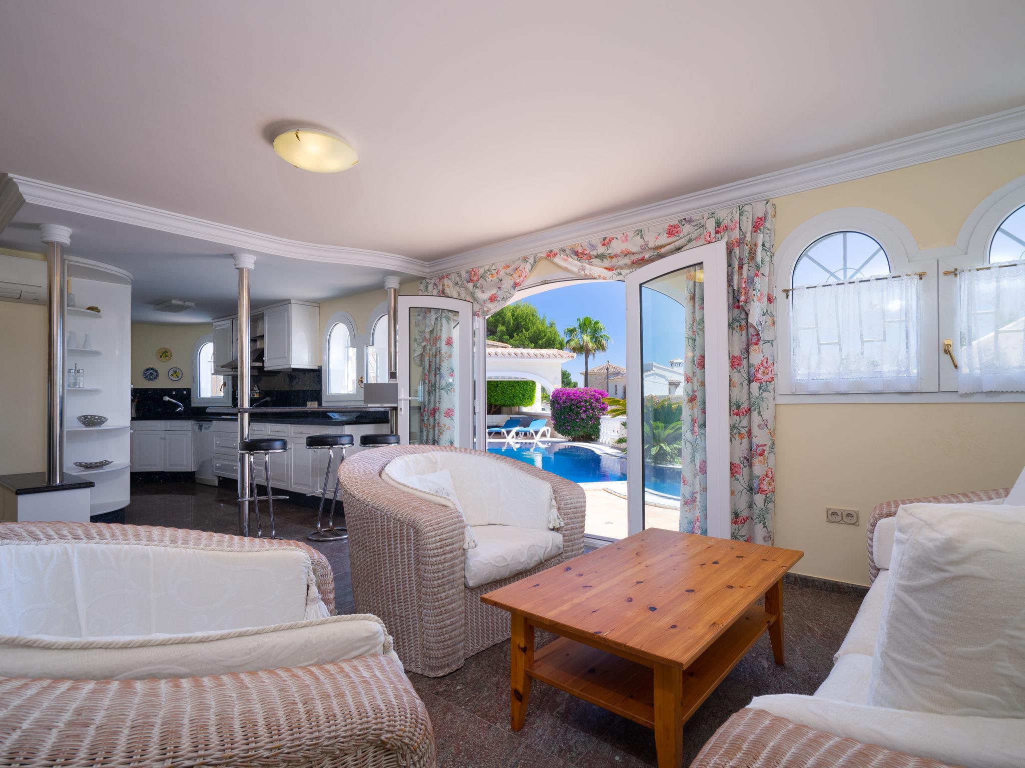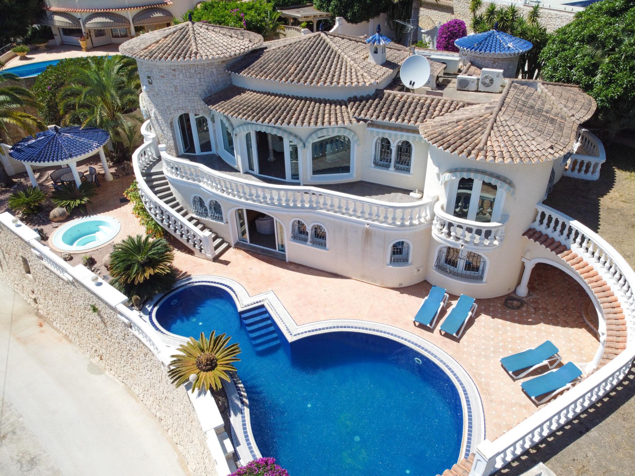 Large, luxurious villa "Luxemburg", 2 storeys. In the district of Montemar 4 km from the centre of Moraira, in a quiet, sunny position, in a cul-de-sac. Private: beautiful, well-kept garden 1'100 m2 (fenced), swimming pool (8 x 4 m, seasonal availability: 01.Jan. - 31.Dec.) with internal staircase. Shower/WC in the pool area, pool house, barbecue house. In the house: internet access, WiFi, sauna, hot tub (all included), central heating system, air conditioning. Bus stop "Benissa" 900 m, railway station "Teulada" 8.5 km, ferry "Denia" 34.6 km, sandy beach "Playa L'Ampolla" 5.1 km pebble beach "Cala Baladra" 1.7 km. Please note: baby equipment on request (included). The owner does not accept any youth groups.