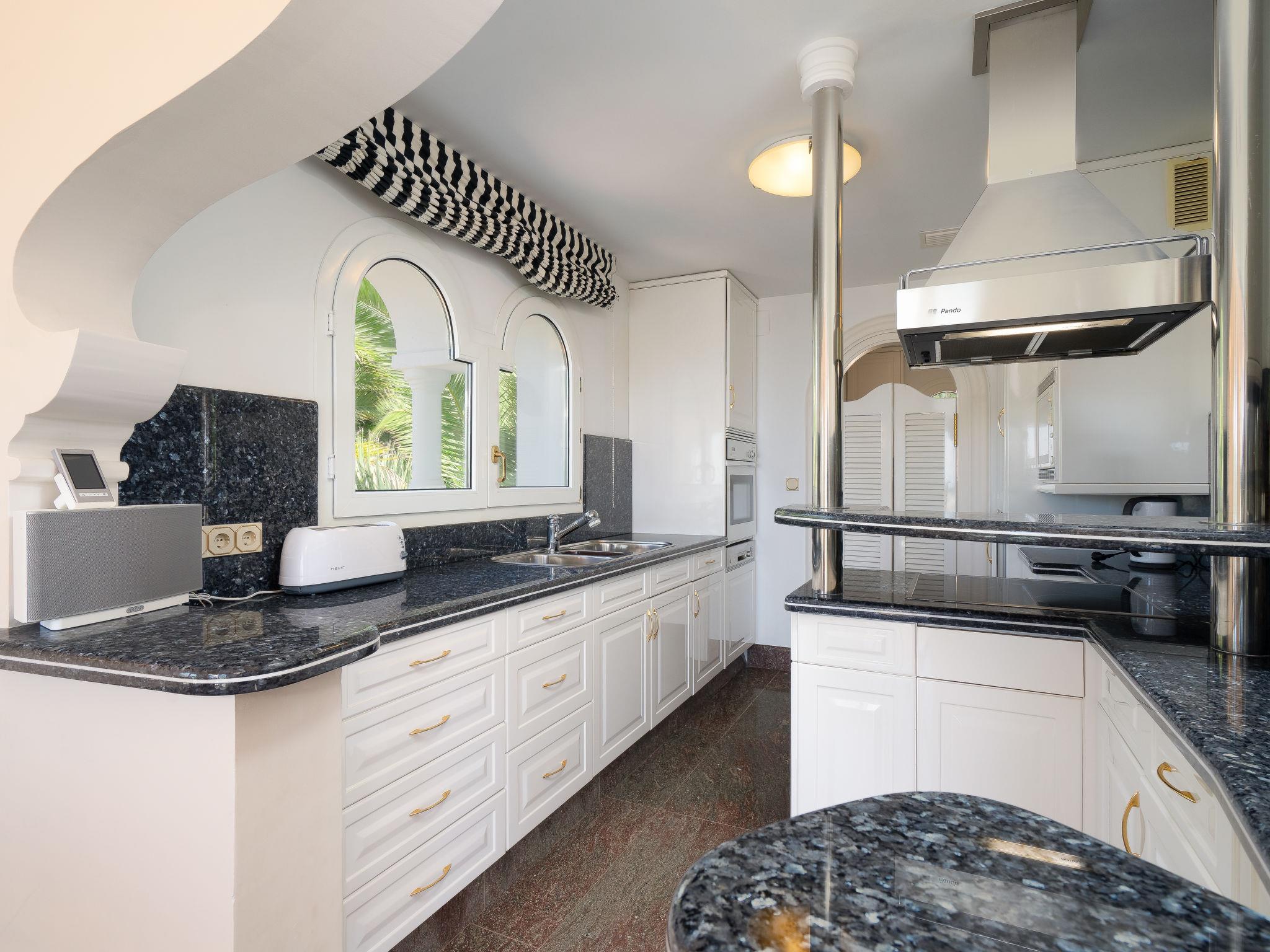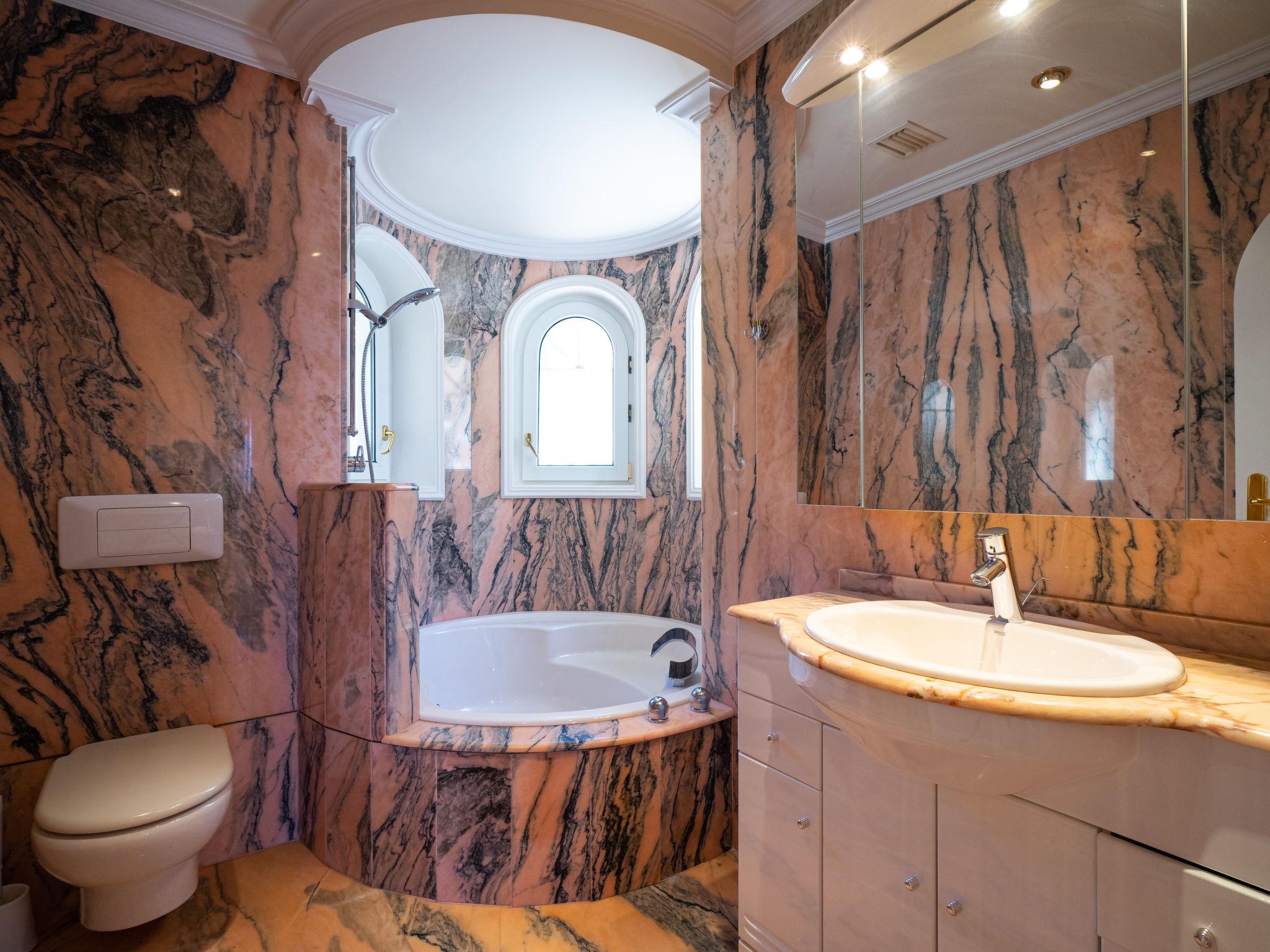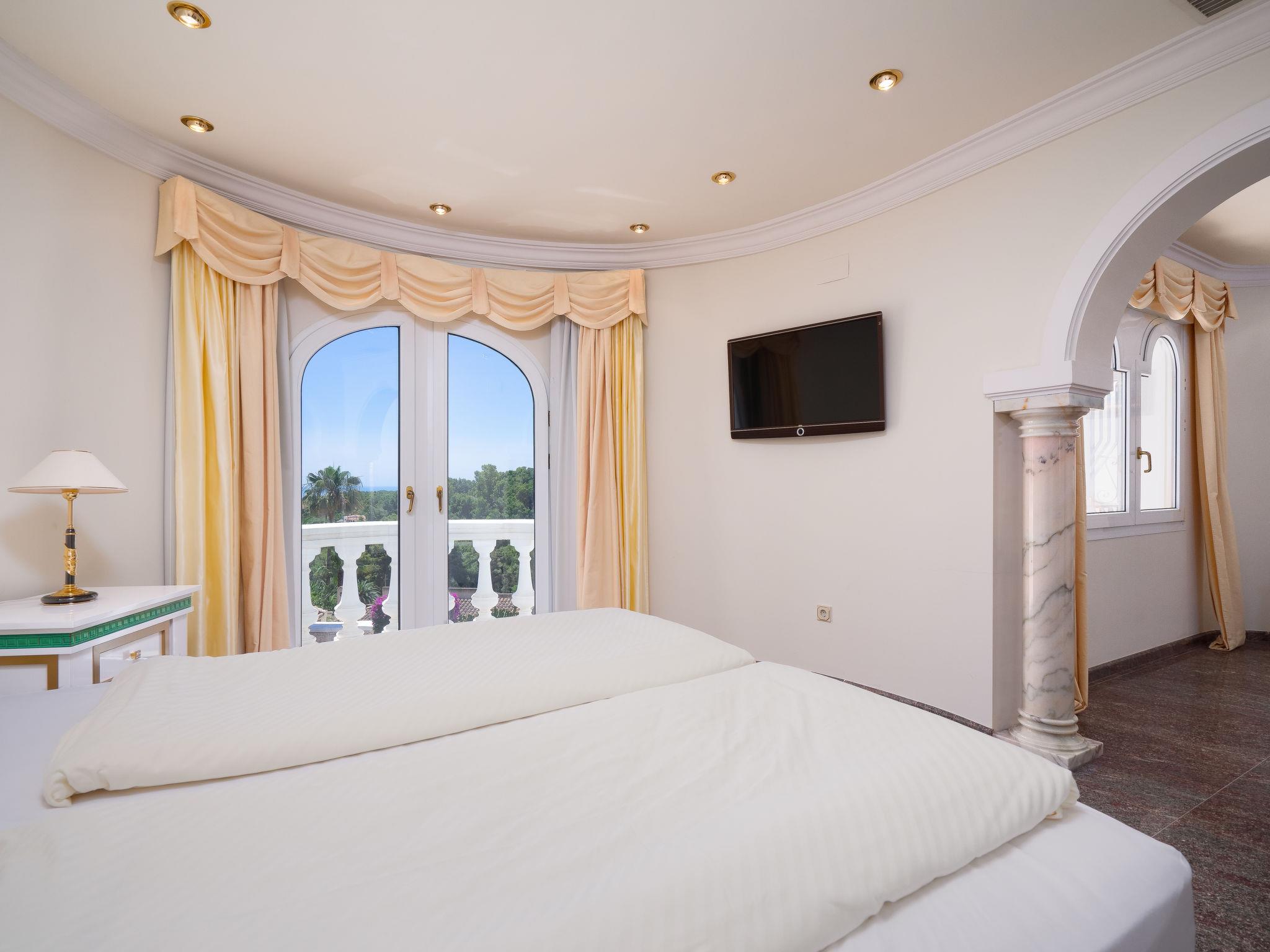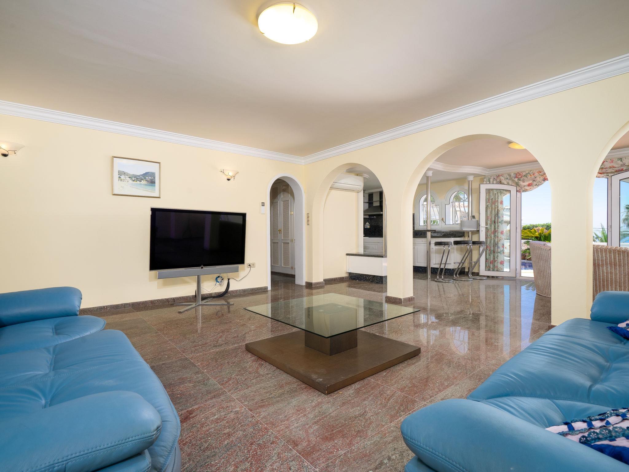 "Luxemburg", 6-room villa 460 m2 on 2 levels. Bright, very comfortable and luxurious furnishings: large living/dining room with open-hearth fireplace, satellite TV, flat screen, hi-fi system and DVD. Exit to the balcony. 2 double bedrooms, each room with shower/WC. Open kitchen (oven, dishwasher, X ceramic glass hob hotplates, microwave, freezer, electric coffee machine) with small bar. Exit to the balcony. On the lower ground floor: open large living/dining room with satellite TV and flat screen. Exit to the garden, to the terrace, to the swimming pool. 2 double bedrooms, each room with shower/WC. Large terrace partly roofed, patio. Terrace furniture, barbecue, deck chairs. Beautiful view of the sea. Facilities: washing machine, dryer. Internet (WiFi, free). Parking, garage. Suitable for families. CV-VUT0441183-A // Reg. Nr.: ESFCTU00000302900011962500000000000000000AT-441183-A7