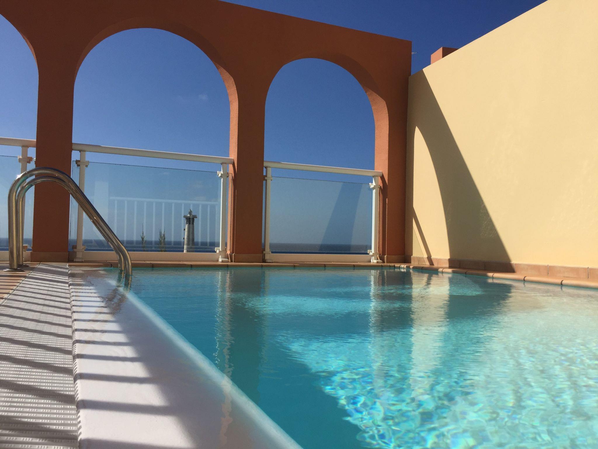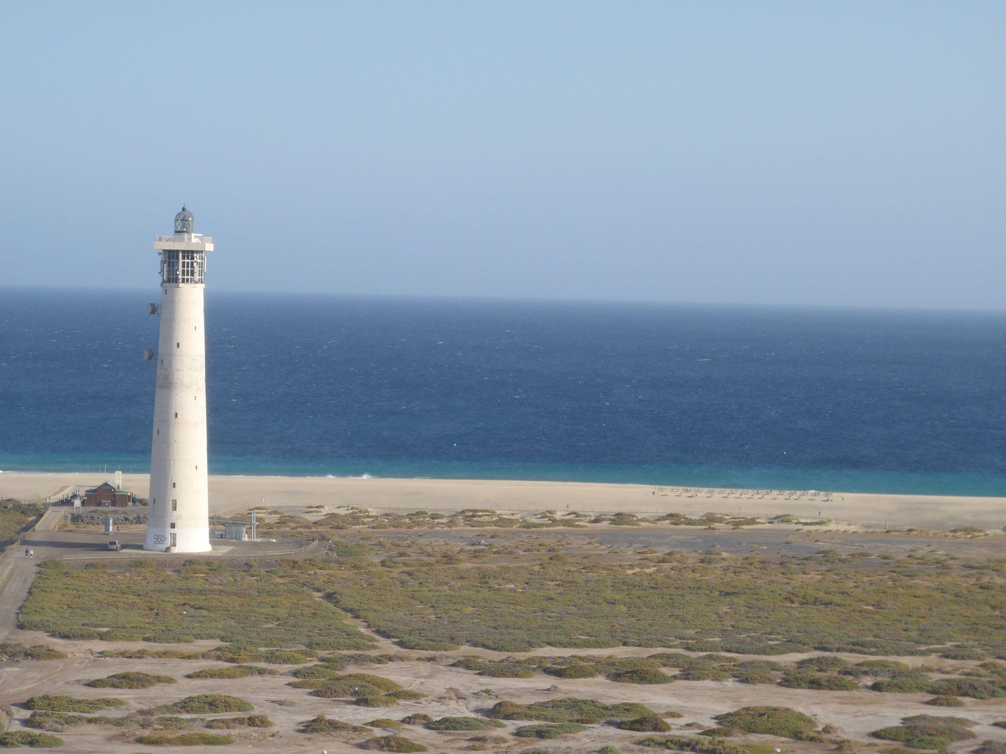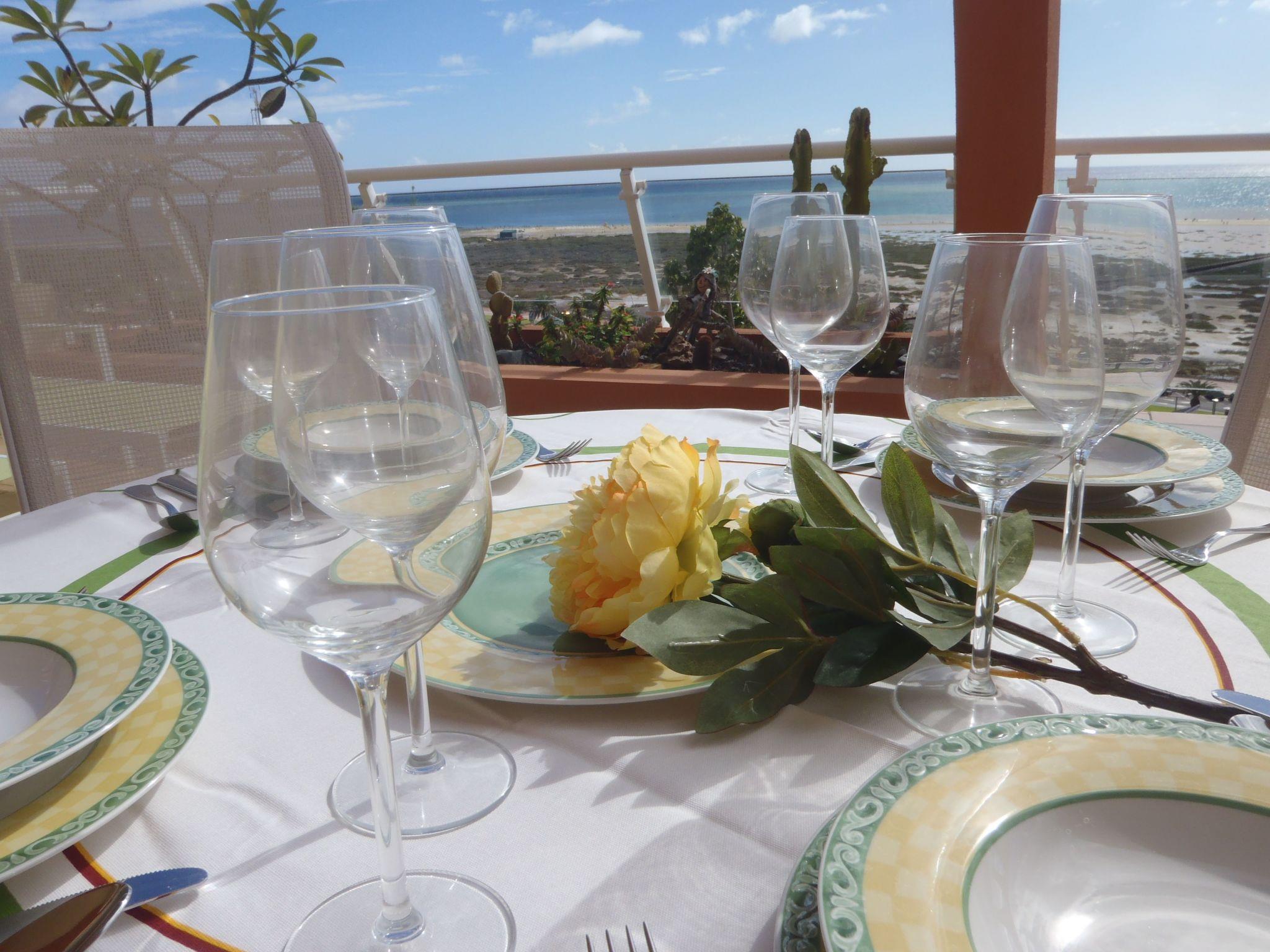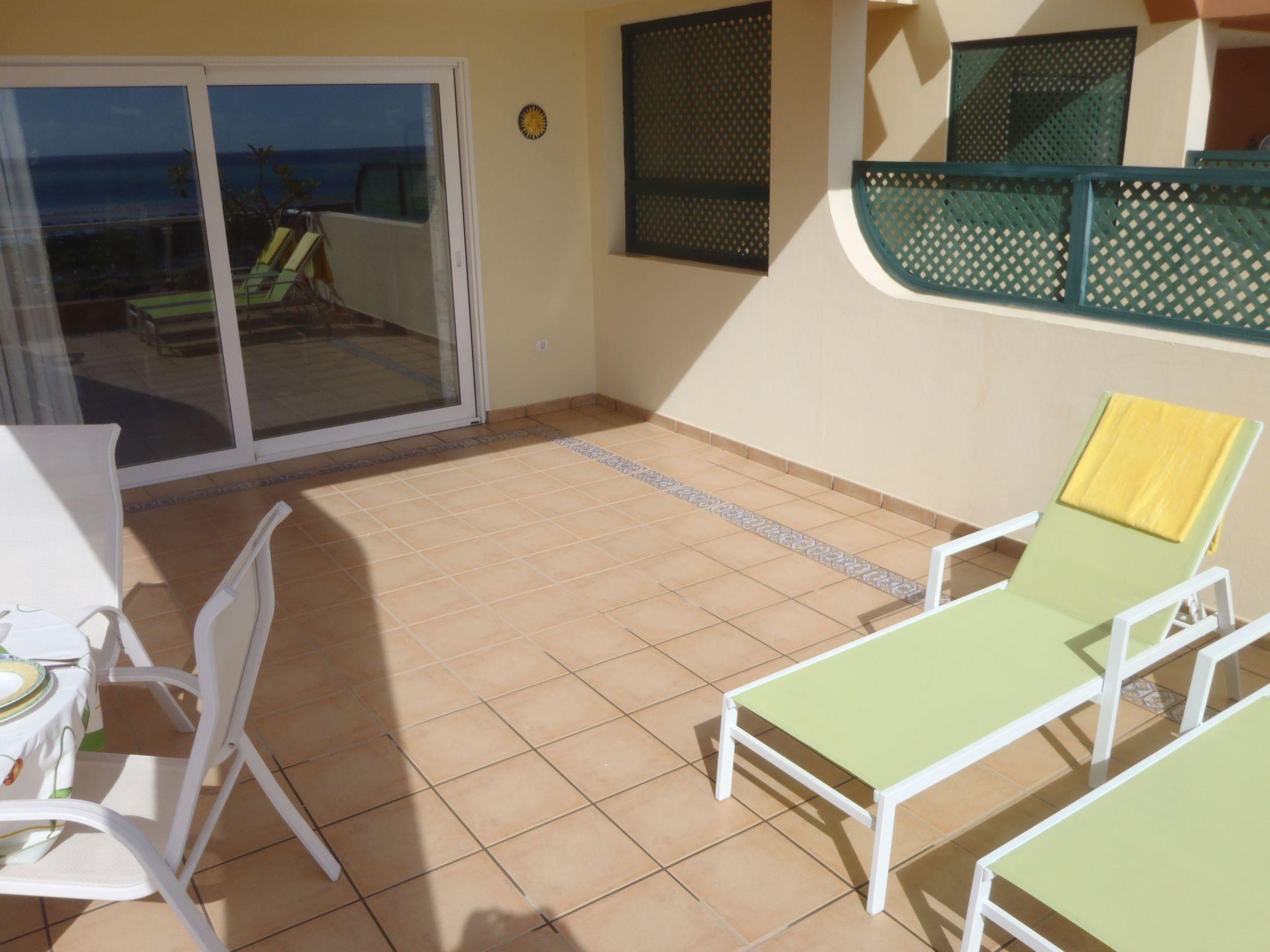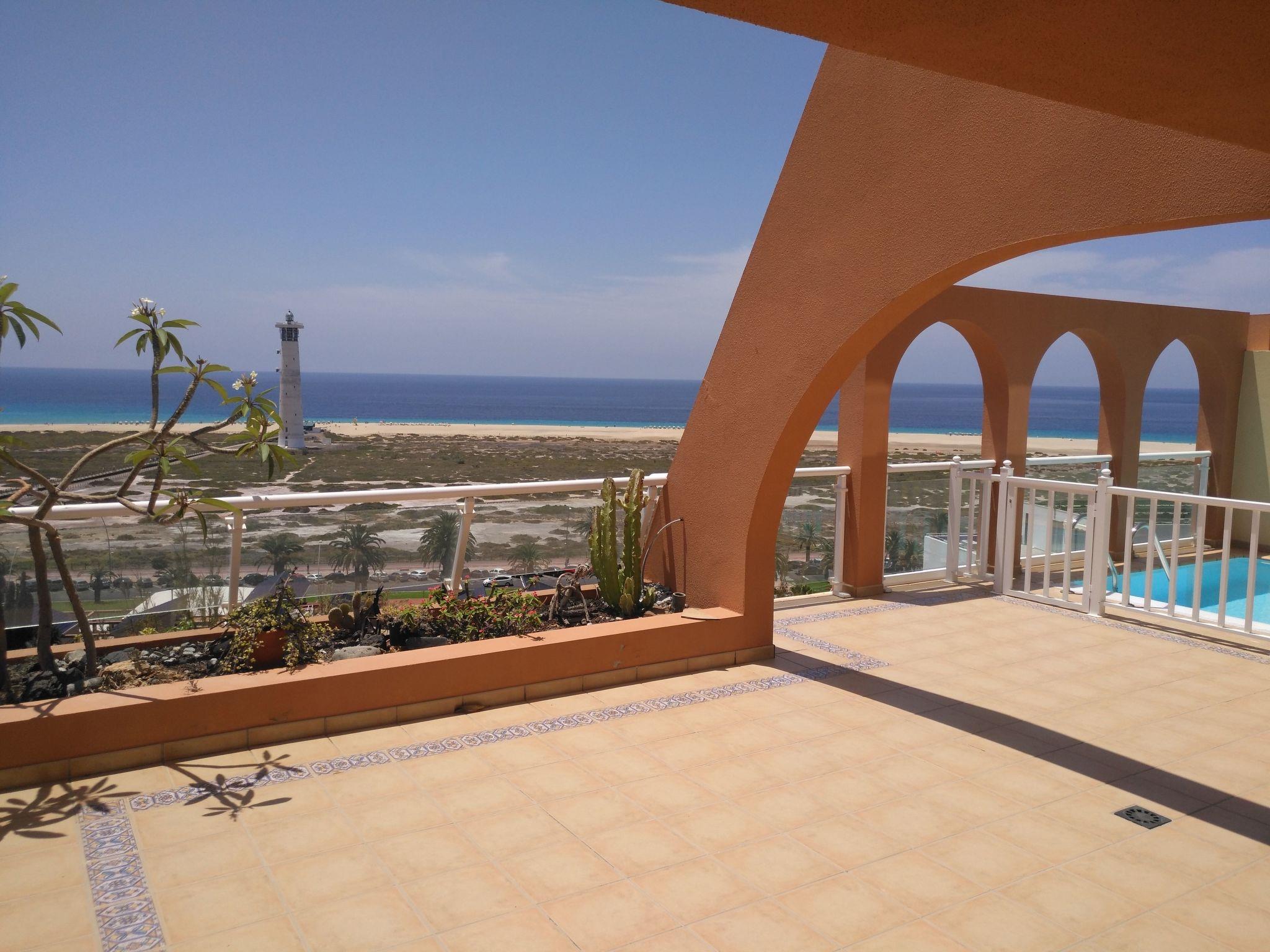 Spacious and sunny terrace of 52 m2, overlooking the sea, the beach, and the famous Jandia Lighthouse, where you have two comfortable sun loungers to enjoy the sun, a table to eat, dine or enjoy the terrace, and four chairs . There is also a shower on the terrace.
